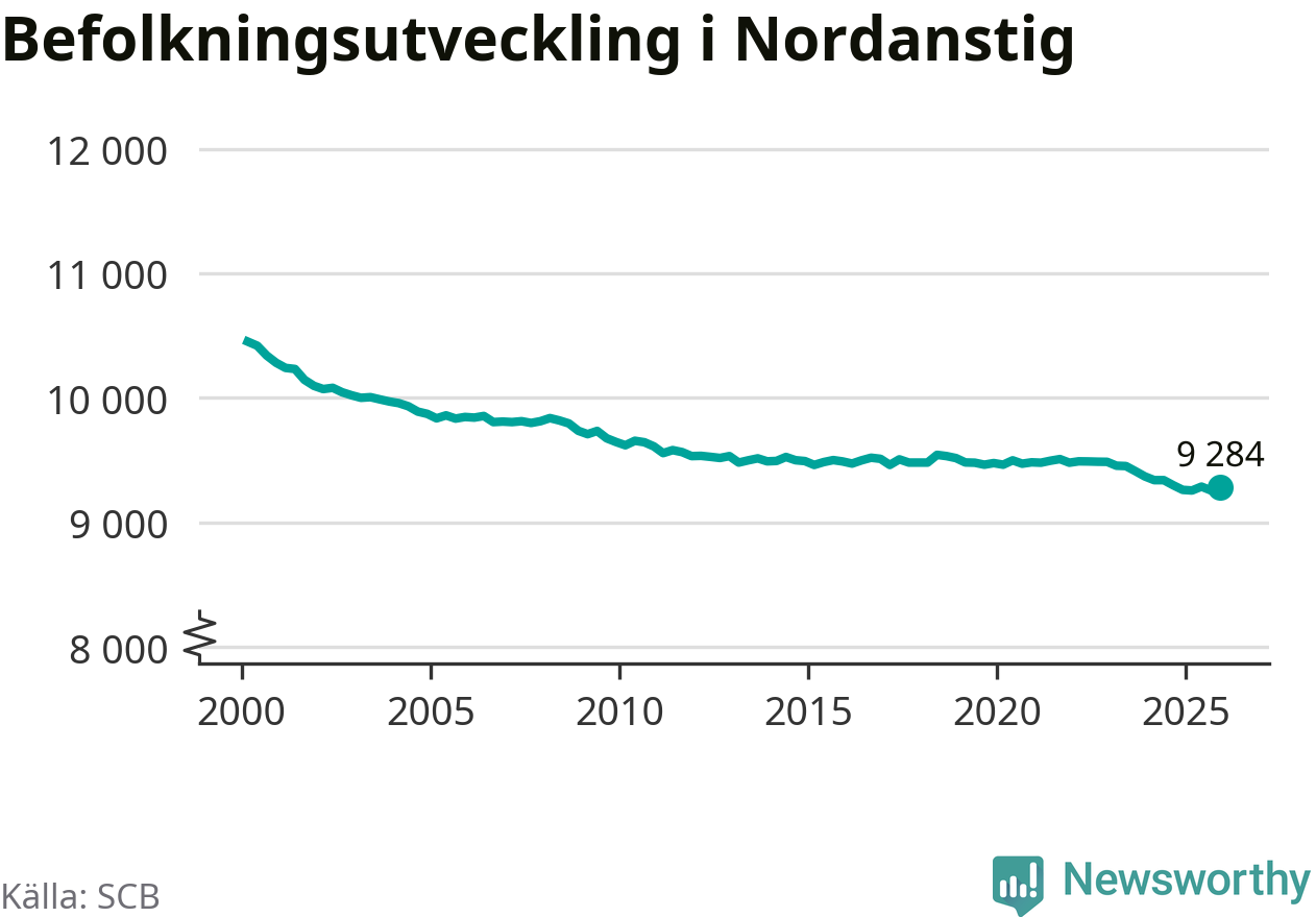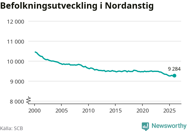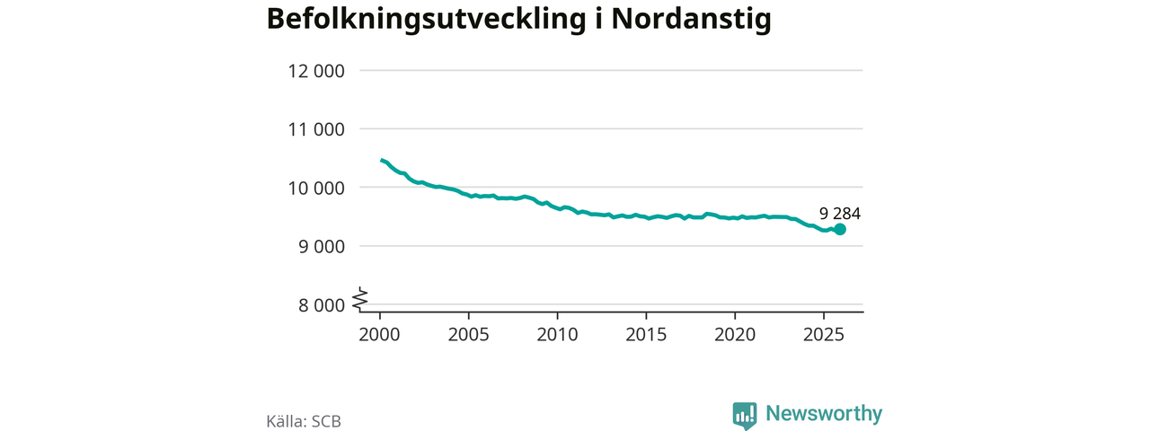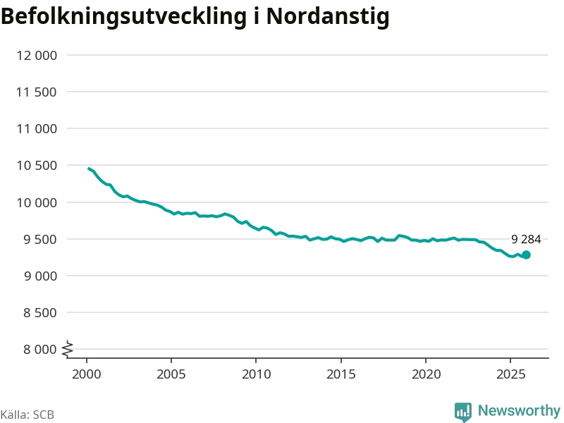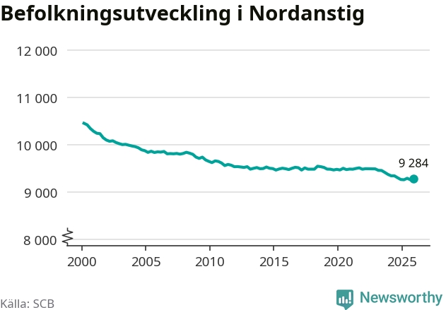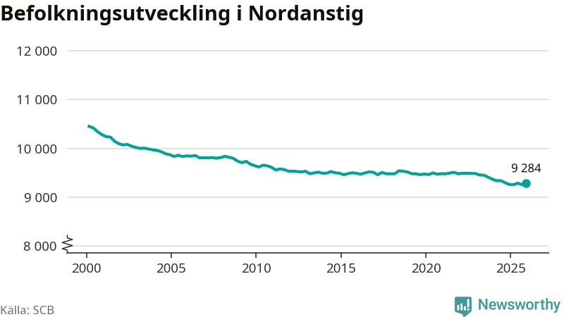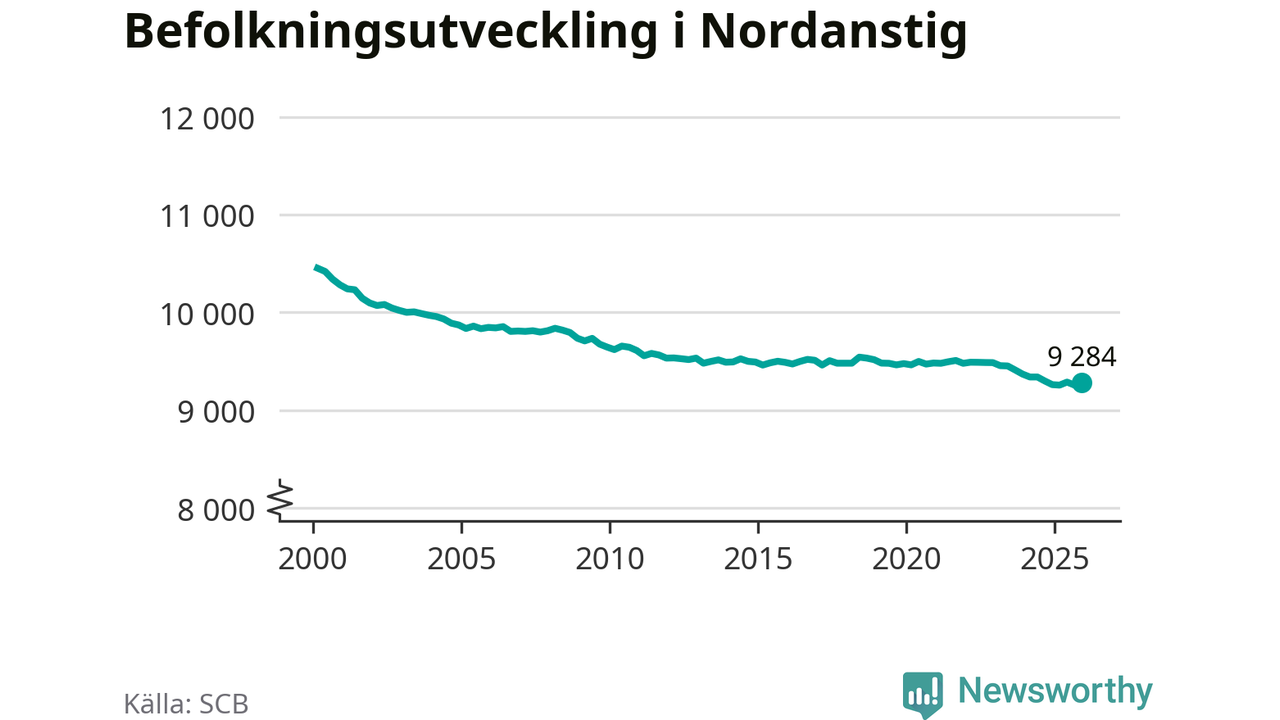 Jämfört med för ett år sedan har befolkningen i Nordanstig ökat med drygt 20 personer. Sedan millennieskiftet har folkmängden minskat med runt 1 170 personer, eller elva procent.