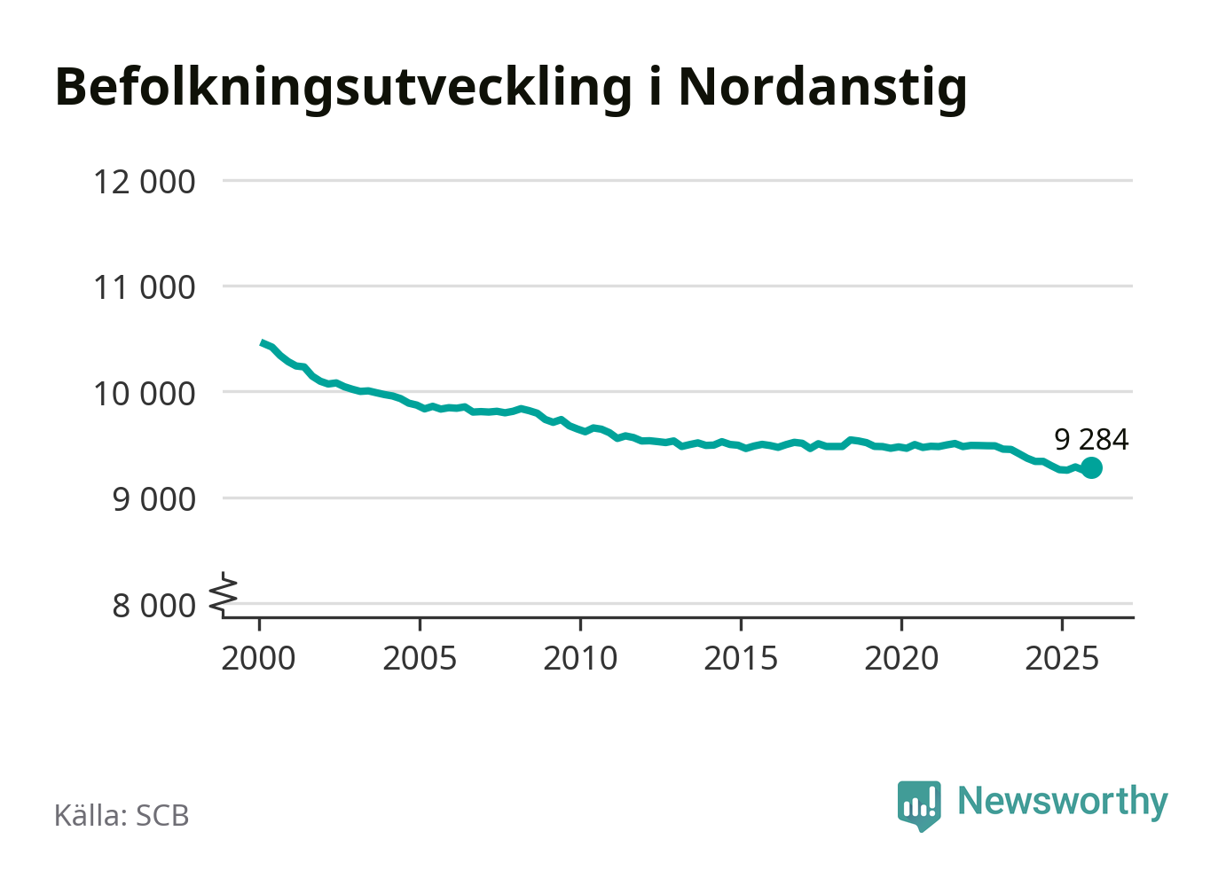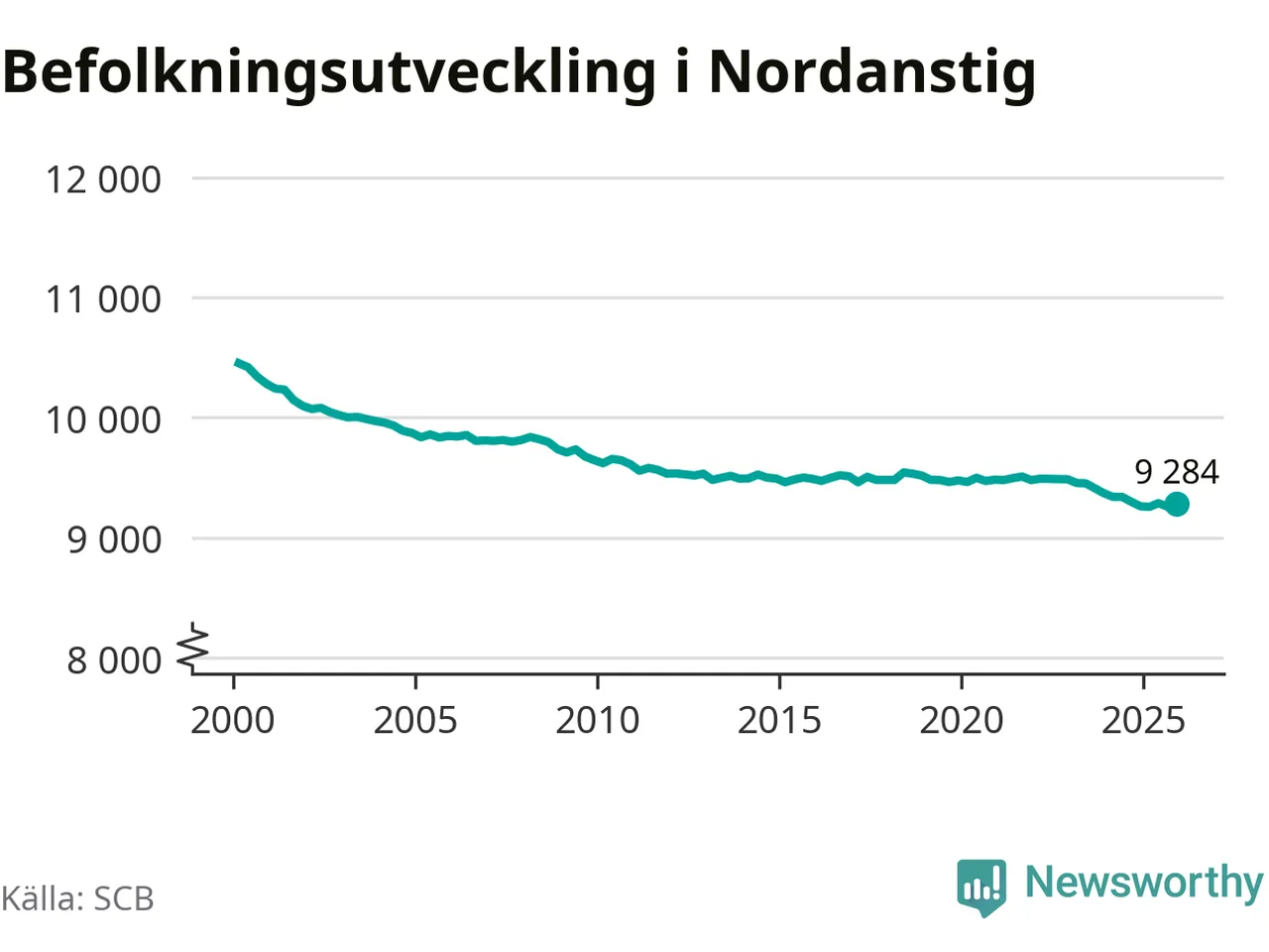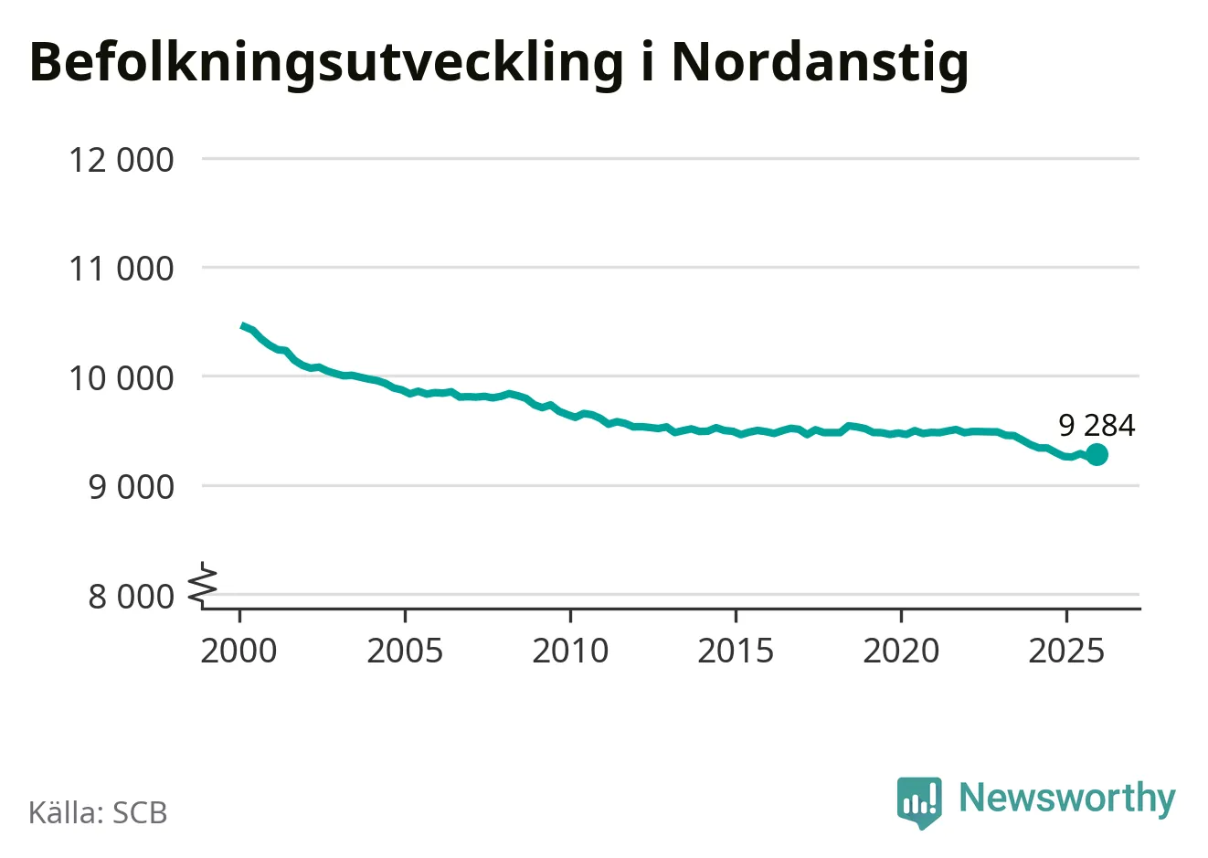 Jämfört med för ett år sedan har befolkningen i Nordanstig ökat med drygt 20 personer. Sedan millennieskiftet har folkmängden minskat med runt 1 170 personer, eller elva procent.