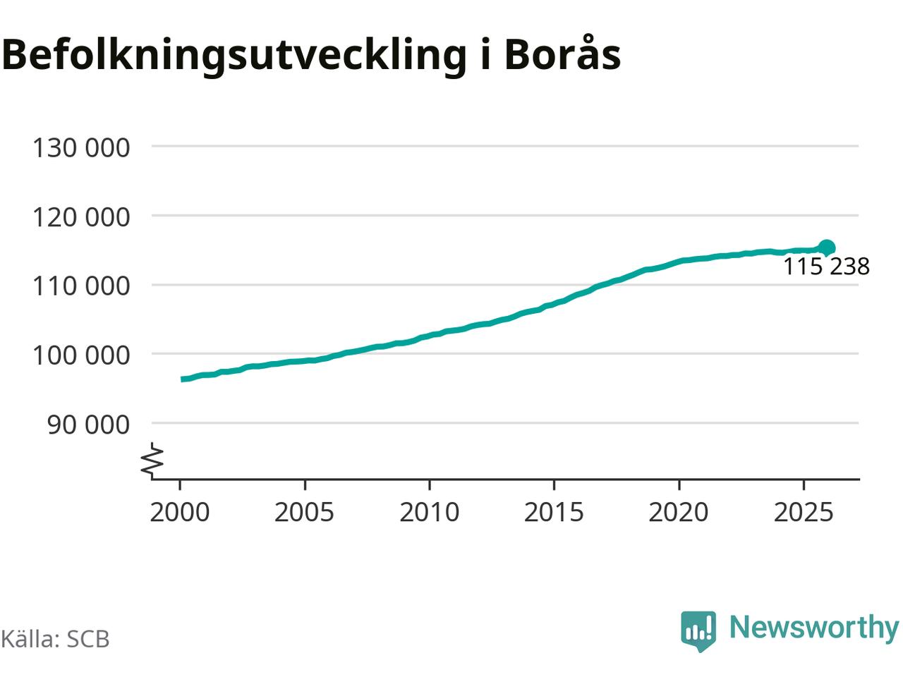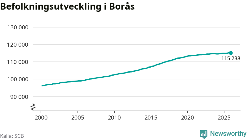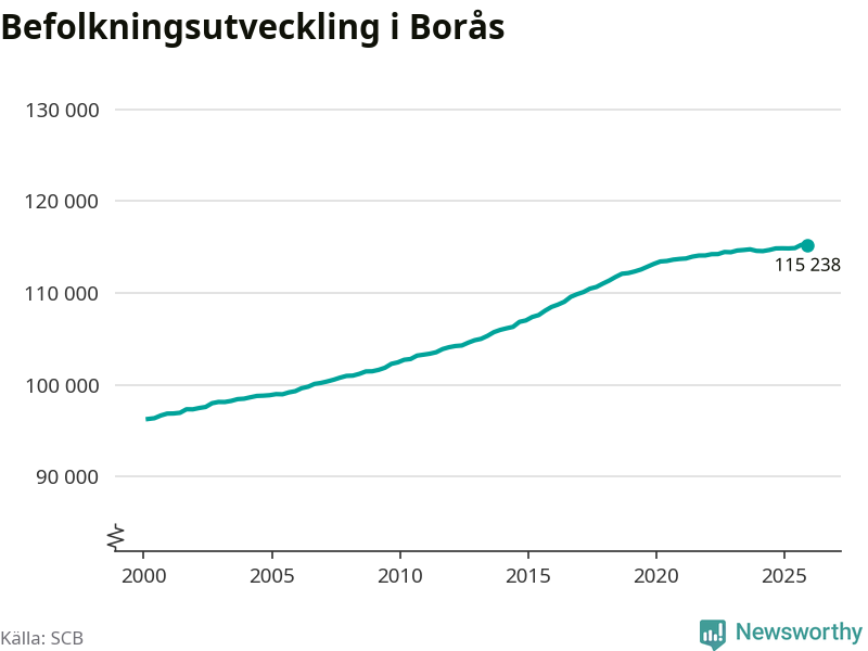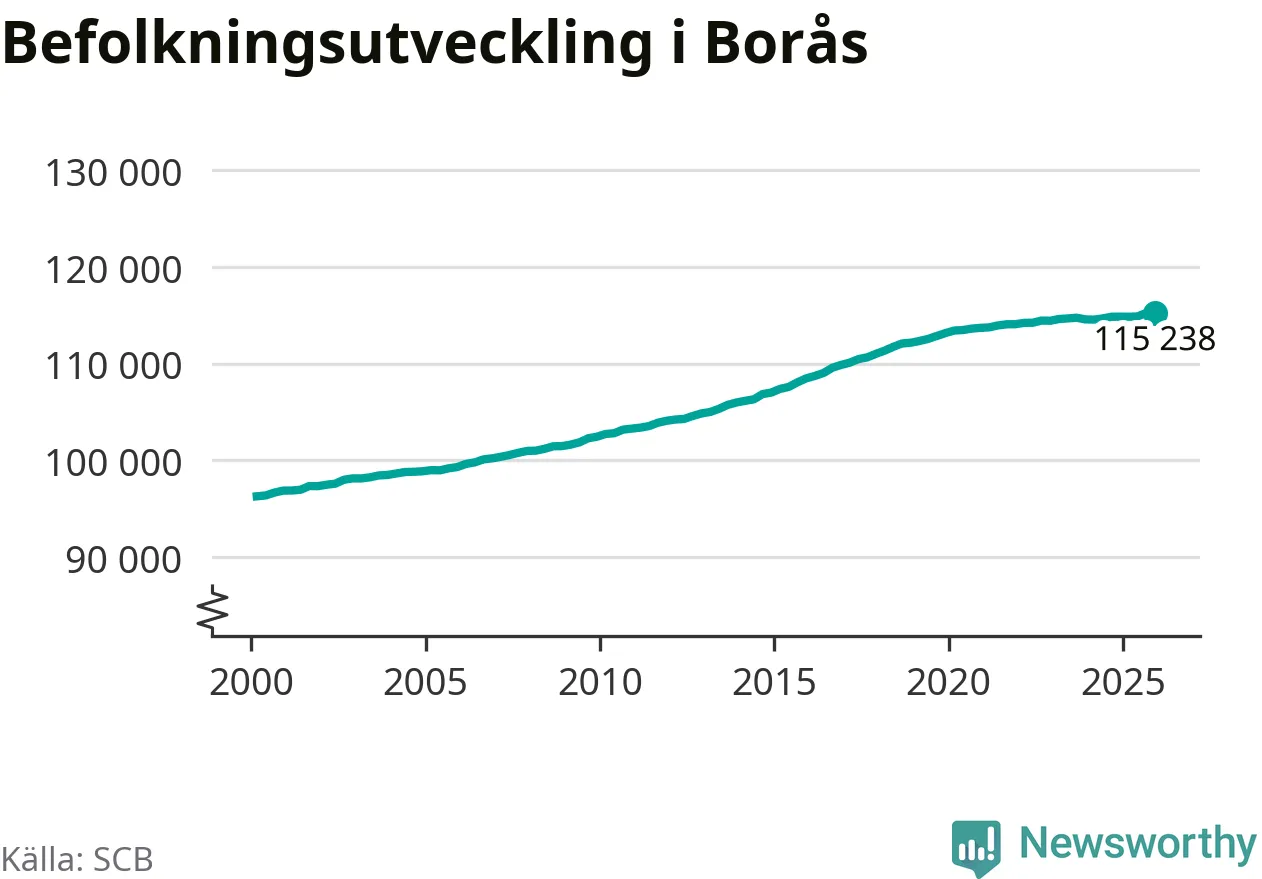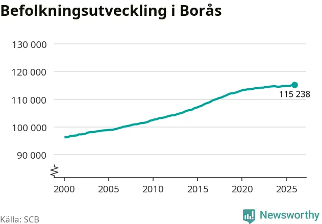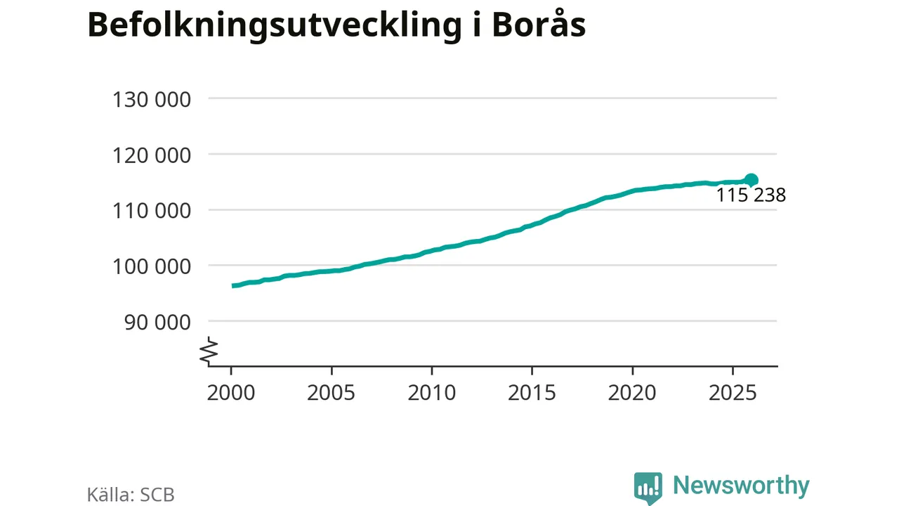 Befolkningen minskade i Borås kommun under det fjärde kvartalet 2025. Den 31 december bodde enligt SCB:s senaste siffror 115 238 personer i kommunen, vilket är 13 färre än i slutet av tredje kvartalet.