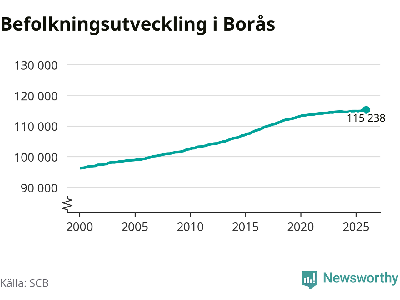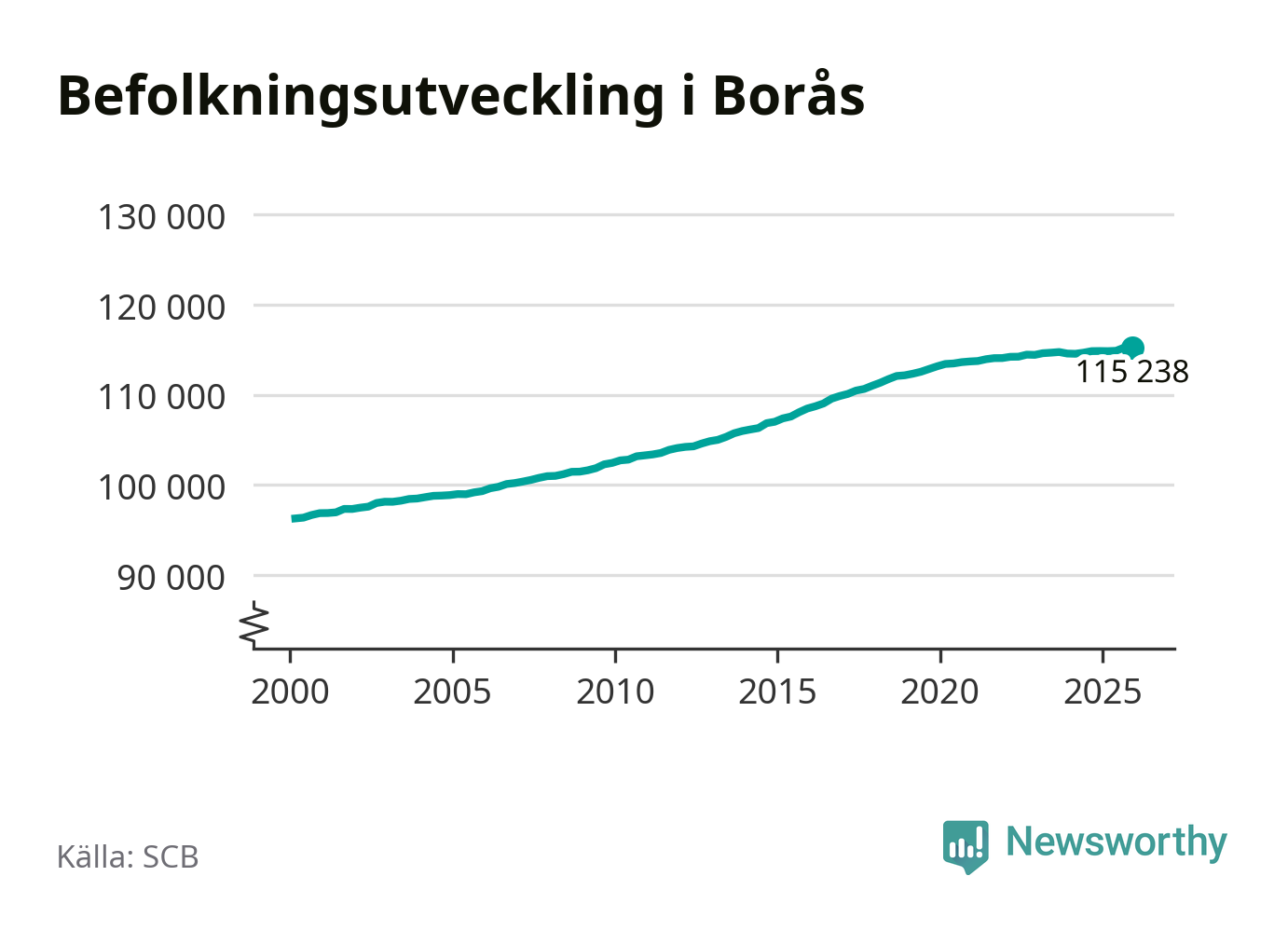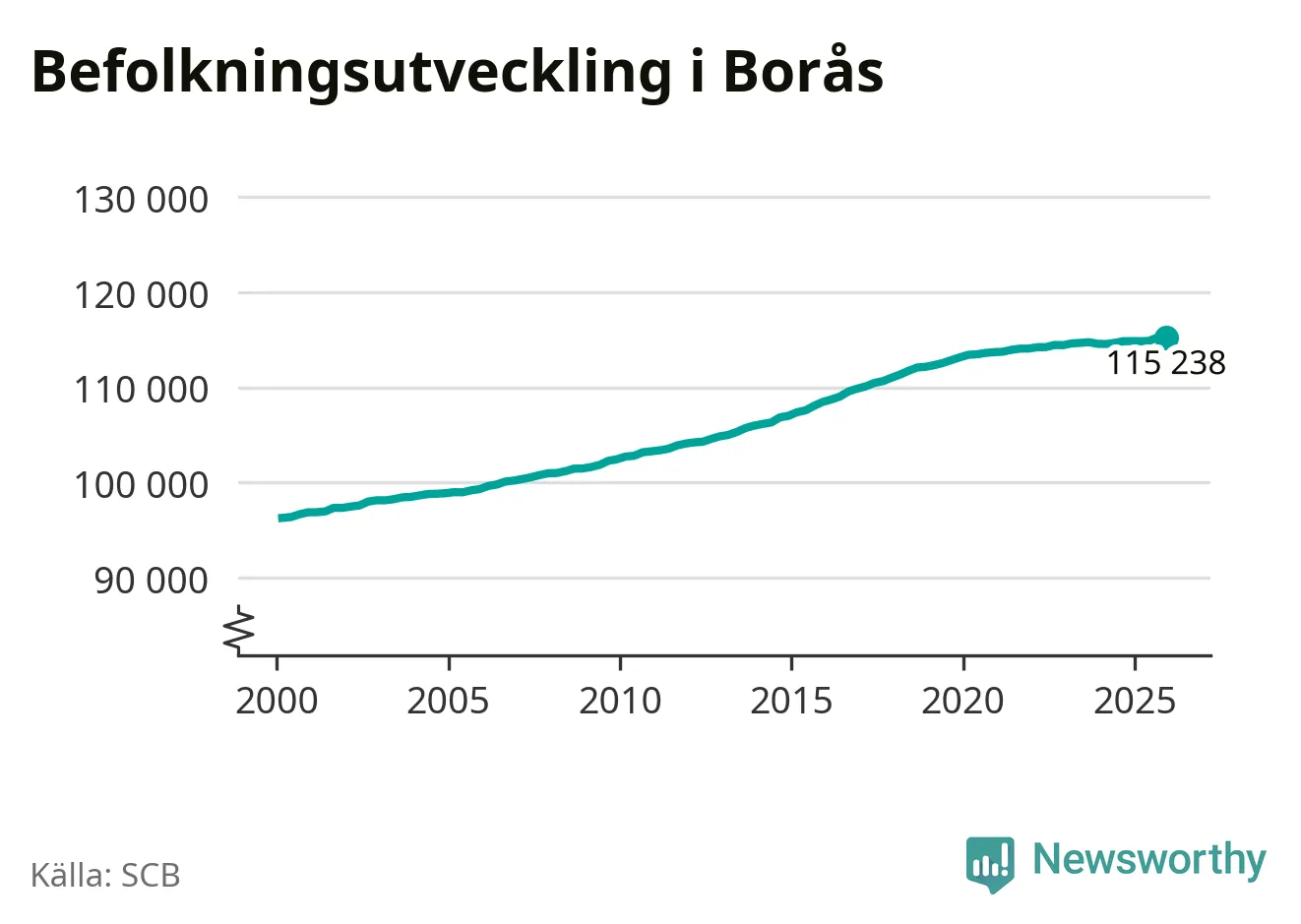 Befolkningen minskade i Borås kommun under det fjärde kvartalet 2025. Den 31 december bodde enligt SCB:s senaste siffror 115 238 personer i kommunen, vilket är 13 färre än i slutet av tredje kvartalet.