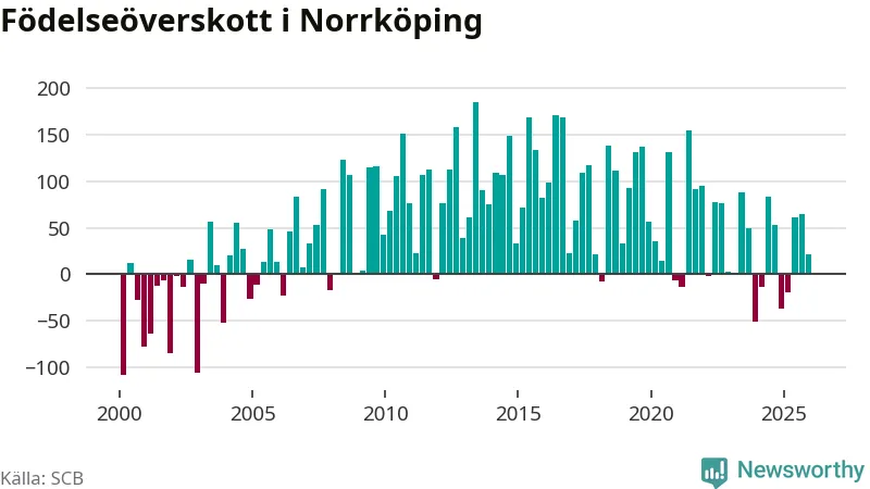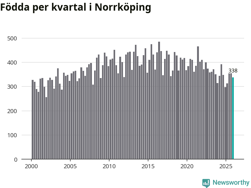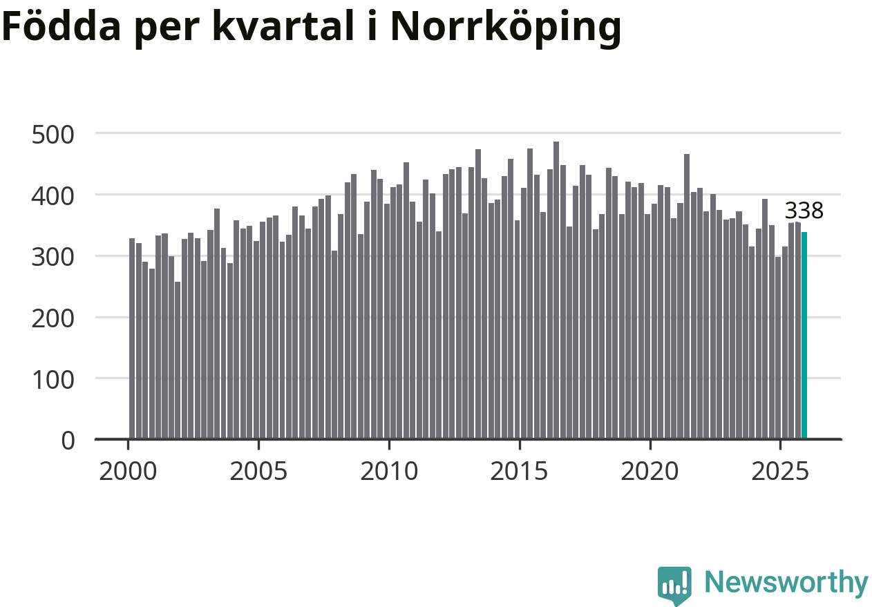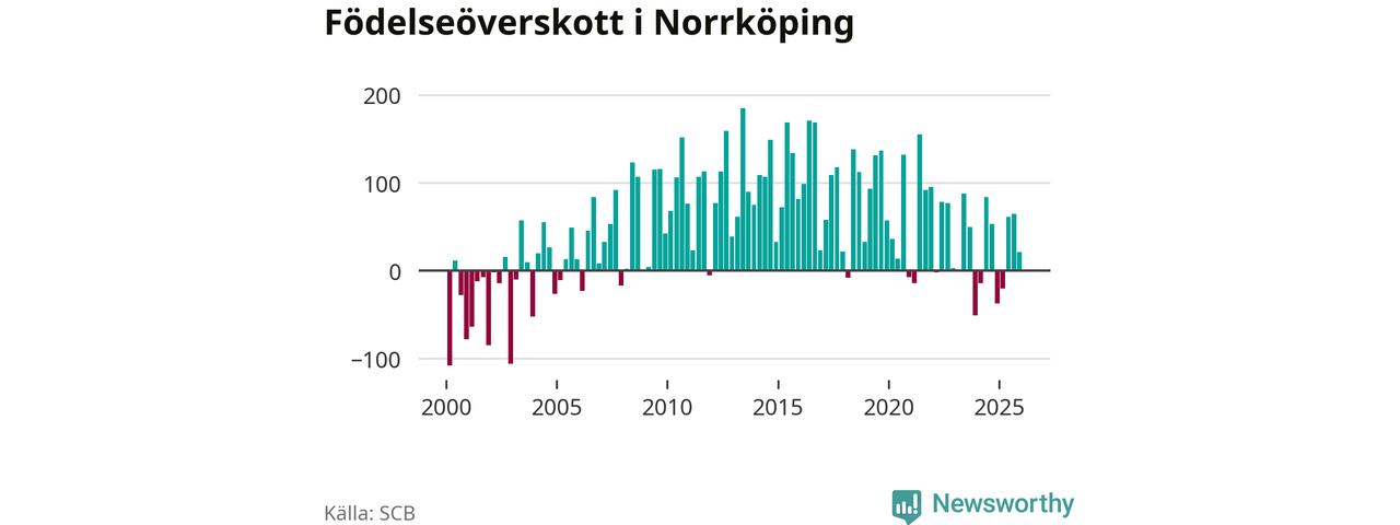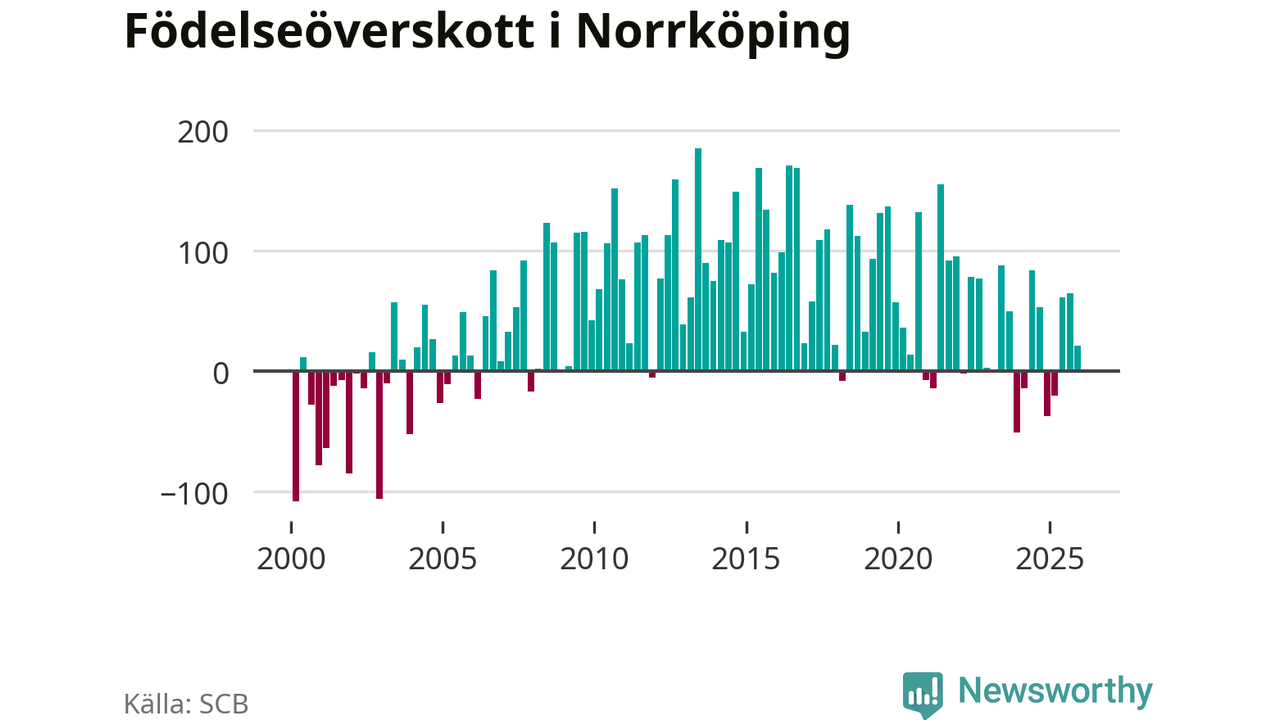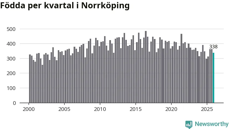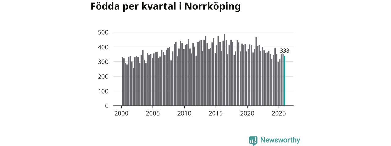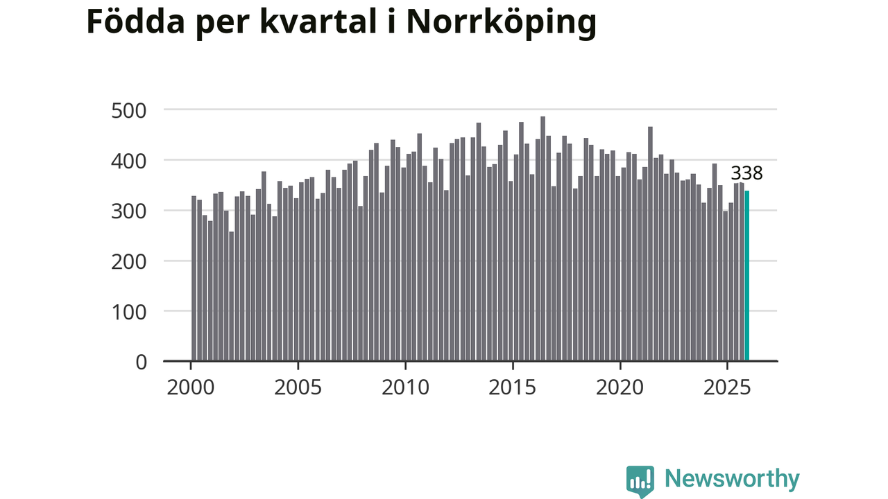 Enligt SCB:s siffror föddes 338 barn i Norrköping under det senaste kvartalet. Samtidigt avled 317 personer. Norrköping hade alltså ett positivt födelsenetto, vilket kommunen historiskt sett nästan alltid har haft.