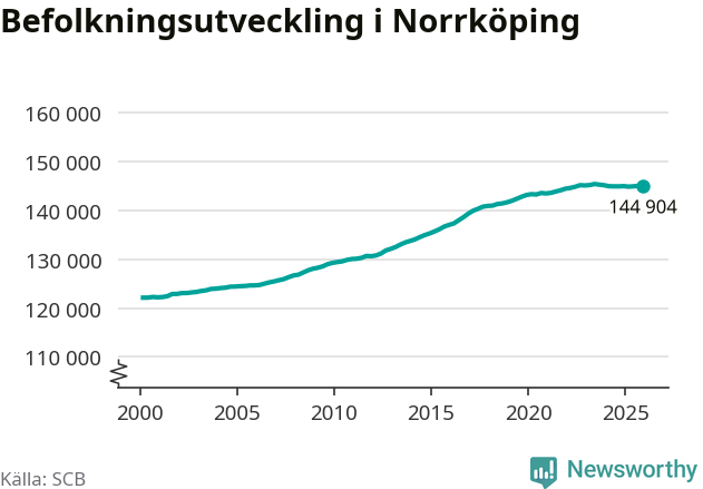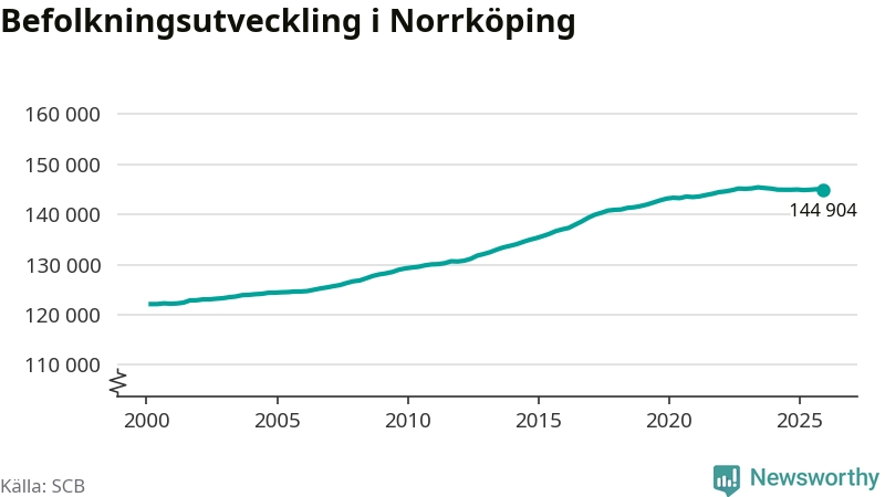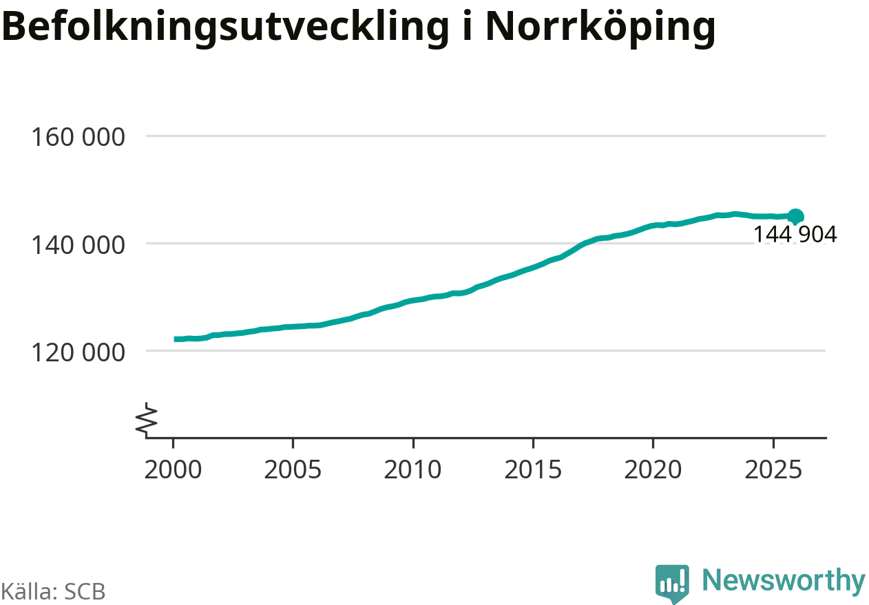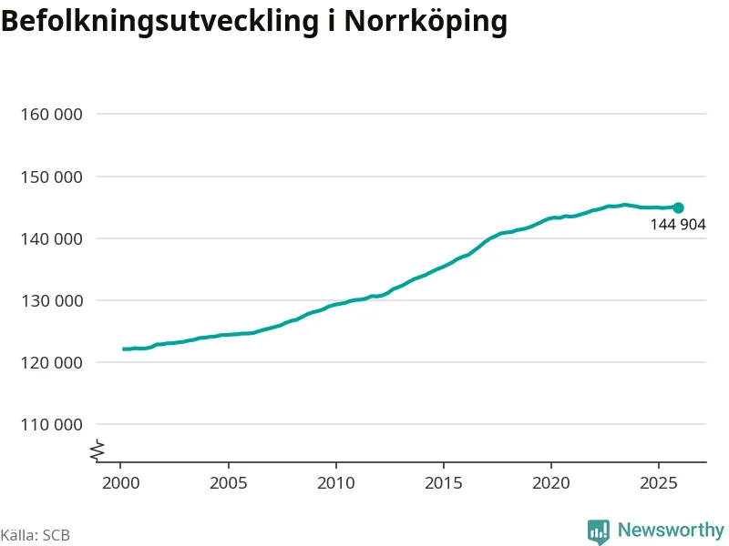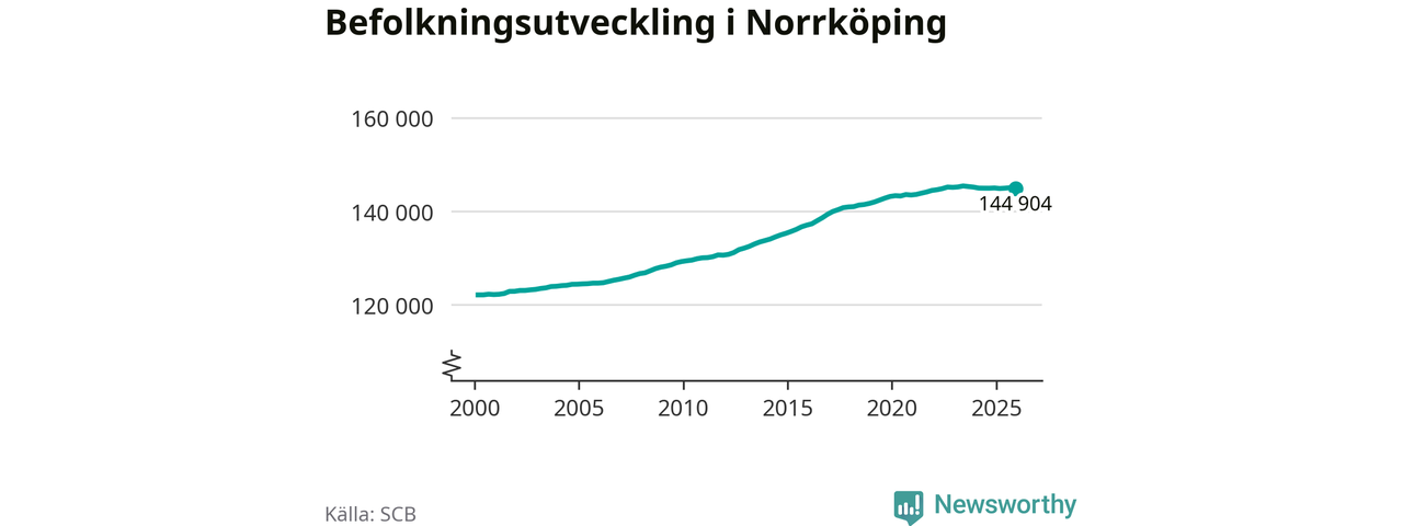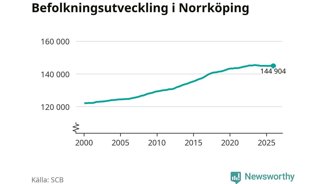 Befolkningen minskade i Norrköpings kommun under det fjärde kvartalet 2025. Den 31 december bodde enligt SCB:s senaste siffror 144 904 personer i kommunen, vilket är 138 färre än i slutet av tredje kvartalet.