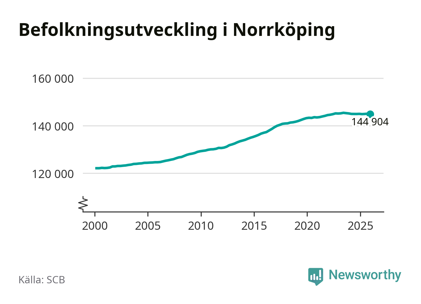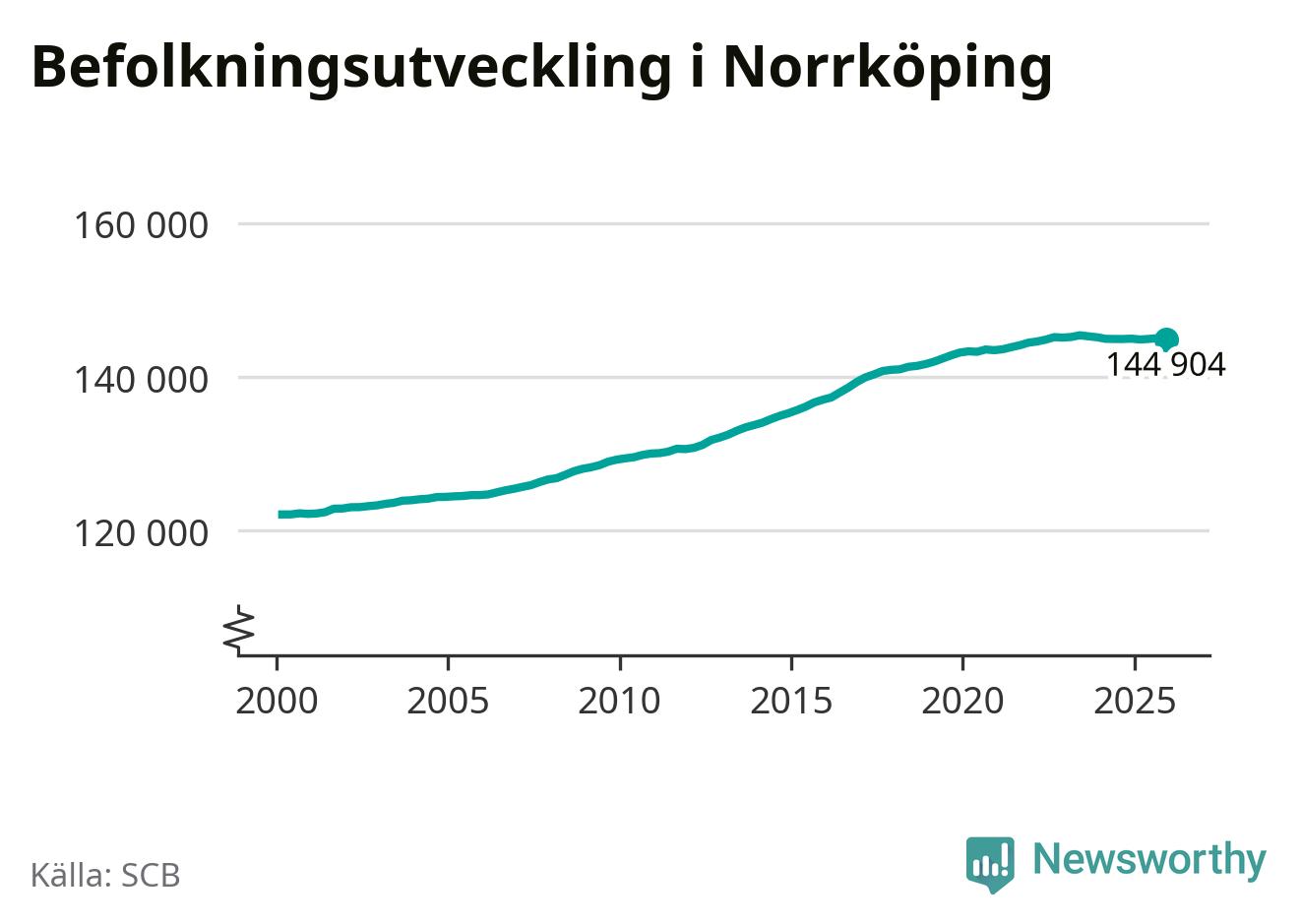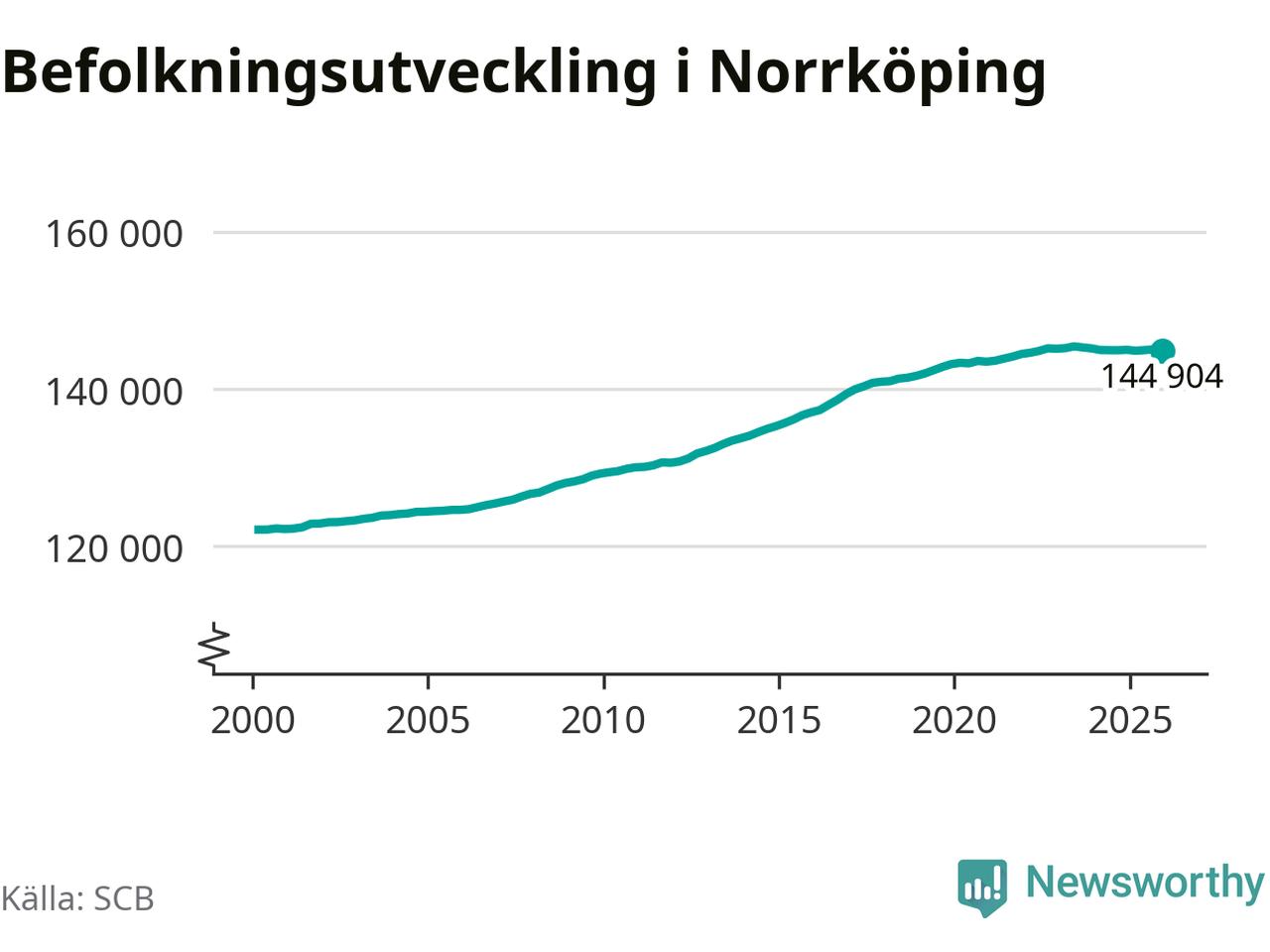 Befolkningen minskade i Norrköpings kommun under det fjärde kvartalet 2025. Den 31 december bodde enligt SCB:s senaste siffror 144 904 personer i kommunen, vilket är 138 färre än i slutet av tredje kvartalet.