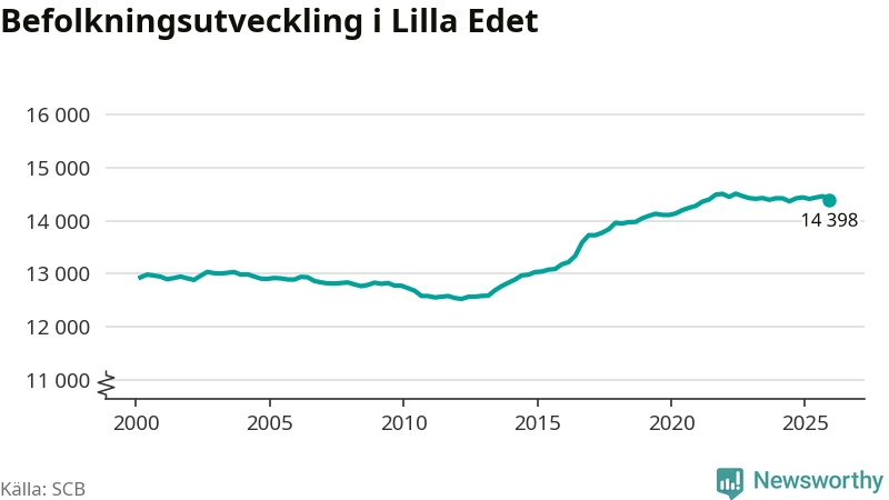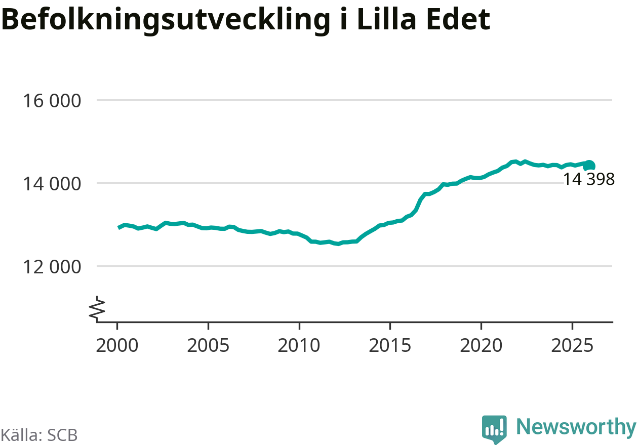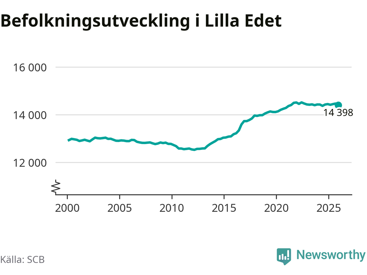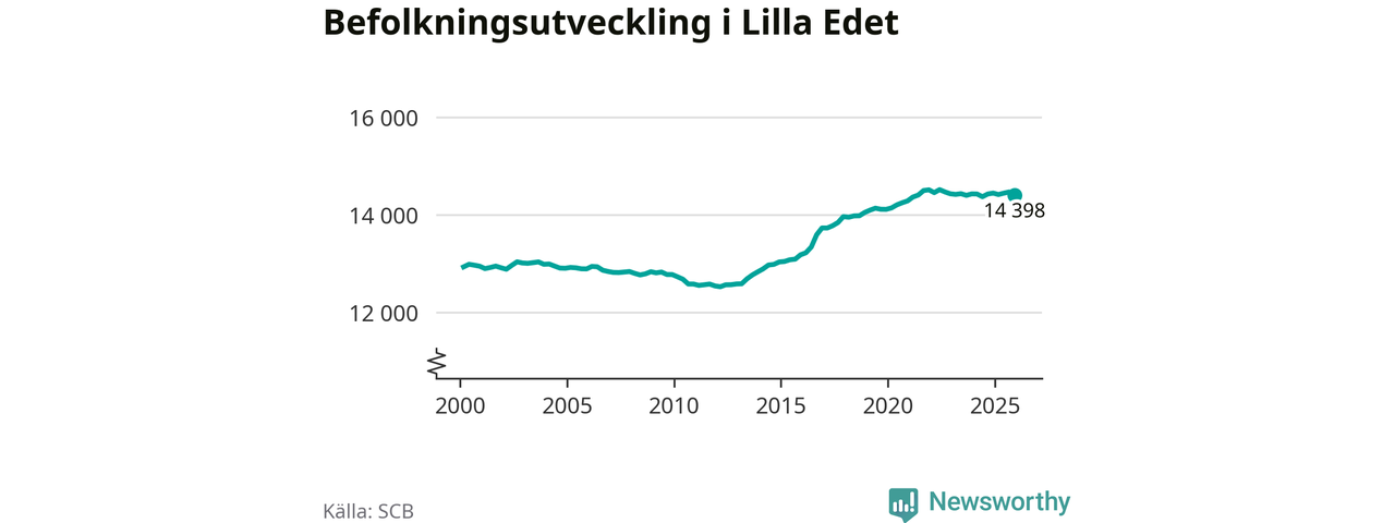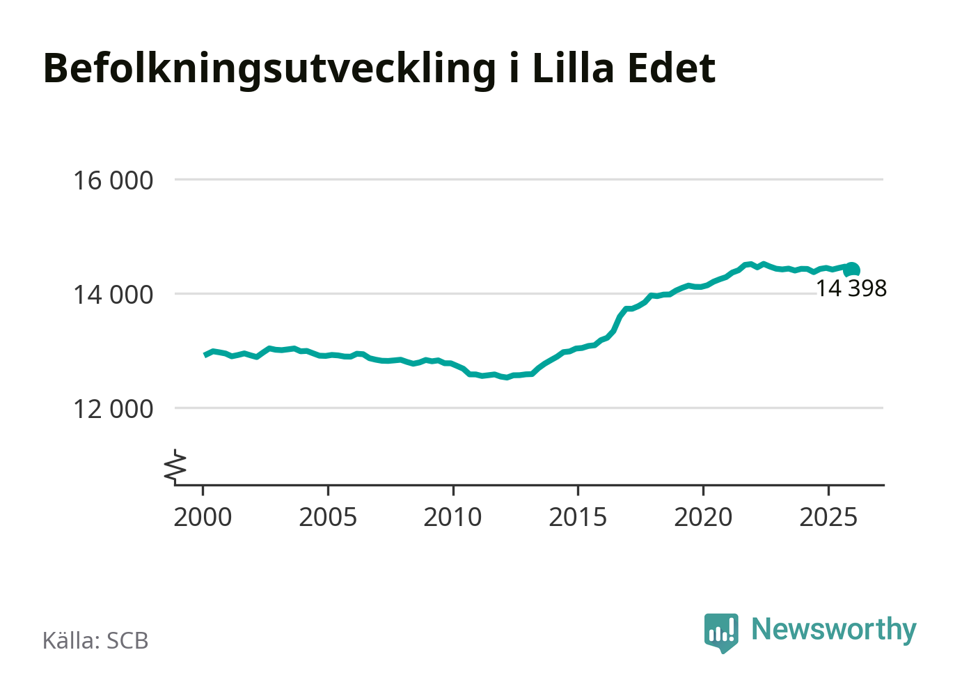 Befolkningen minskade i Lilla Edets kommun under det fjärde kvartalet 2025. Den 31 december bodde enligt SCB:s senaste siffror 14 398 personer i kommunen, vilket är 67 färre än i slutet av tredje kvartalet. Minskningen är procentuellt sett en av de största i Västra Götaland.