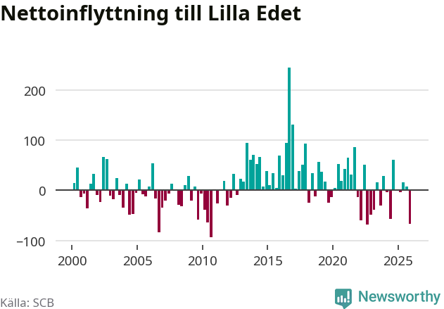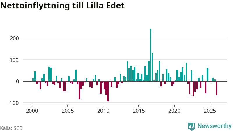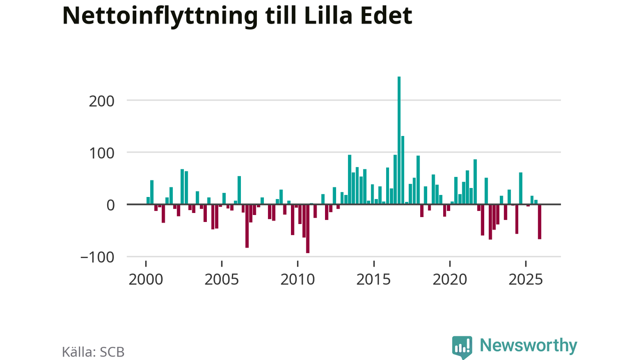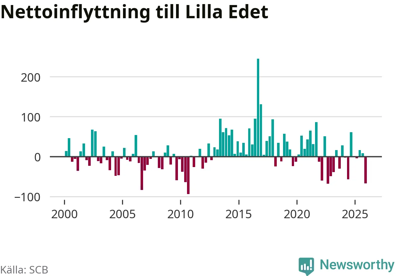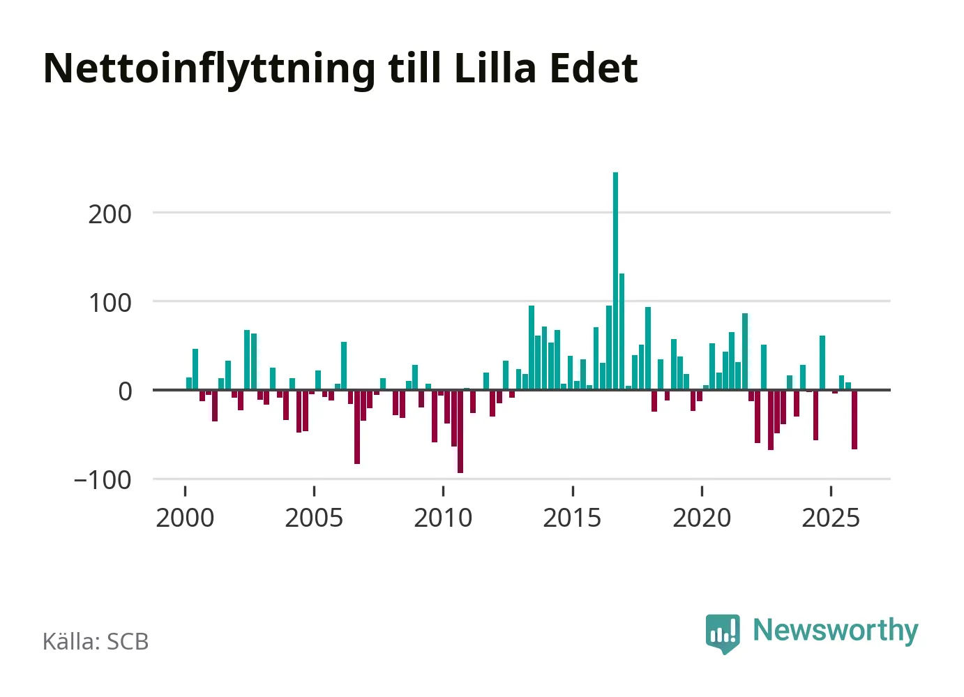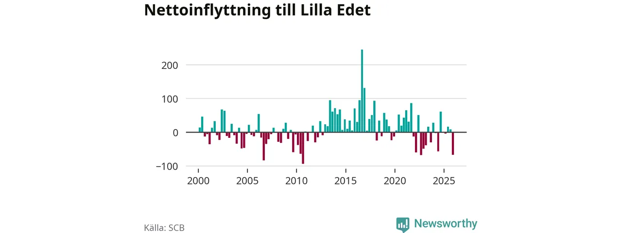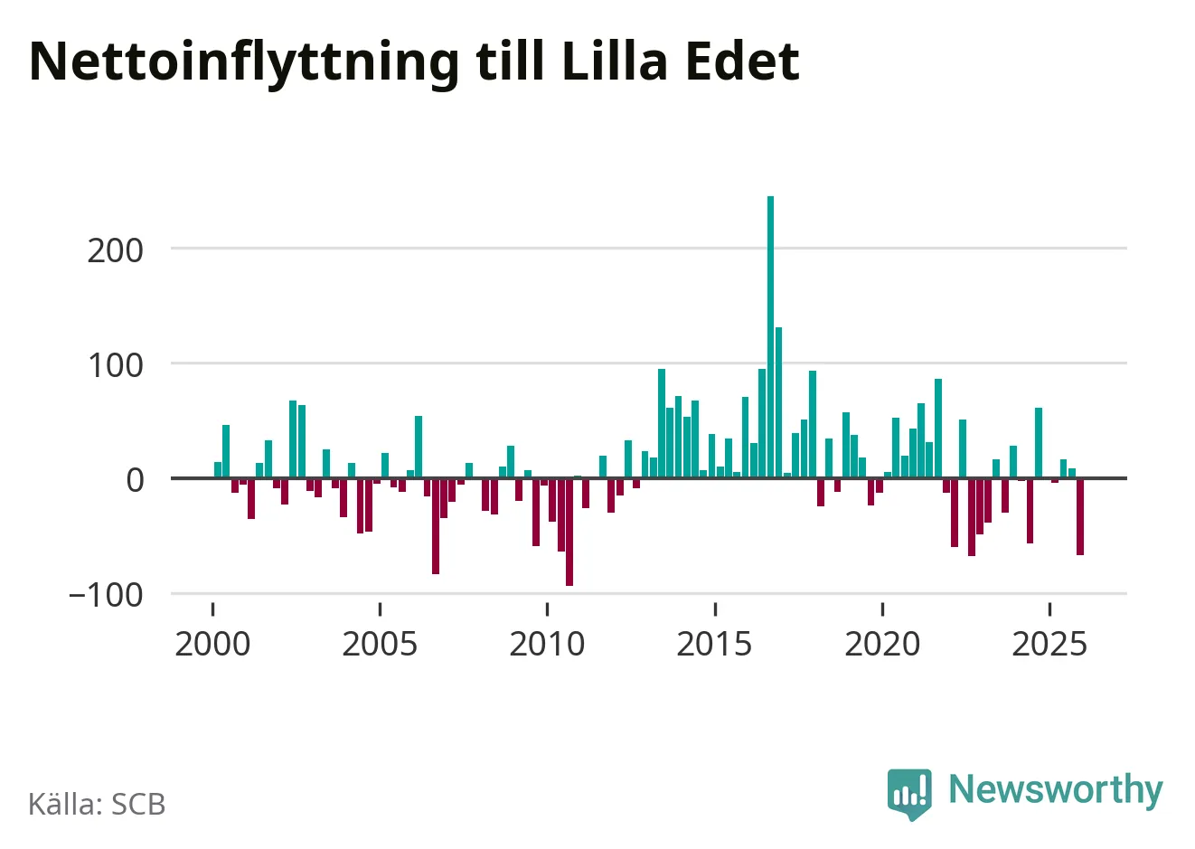 Fler flyttade från än till Lilla Edets kommun. Befolkningen minskade under det fjärde kvartalet 2025. Det visar nya siffror från SCB.
