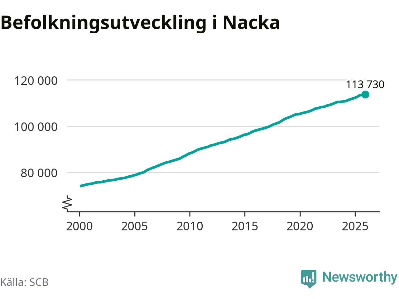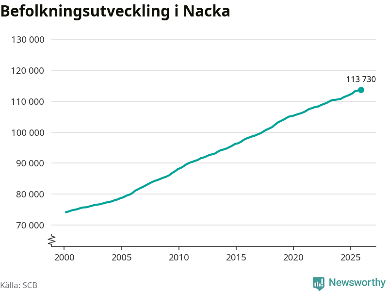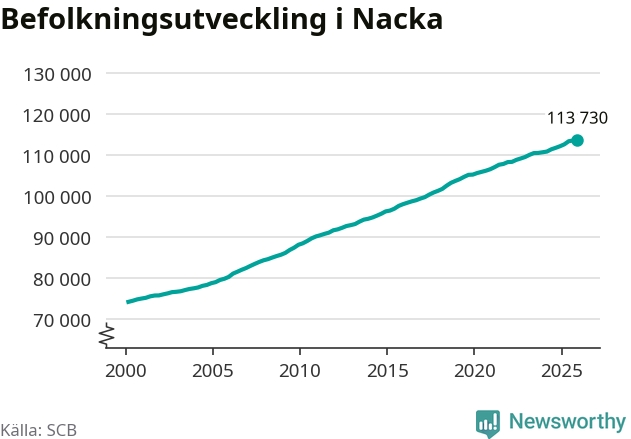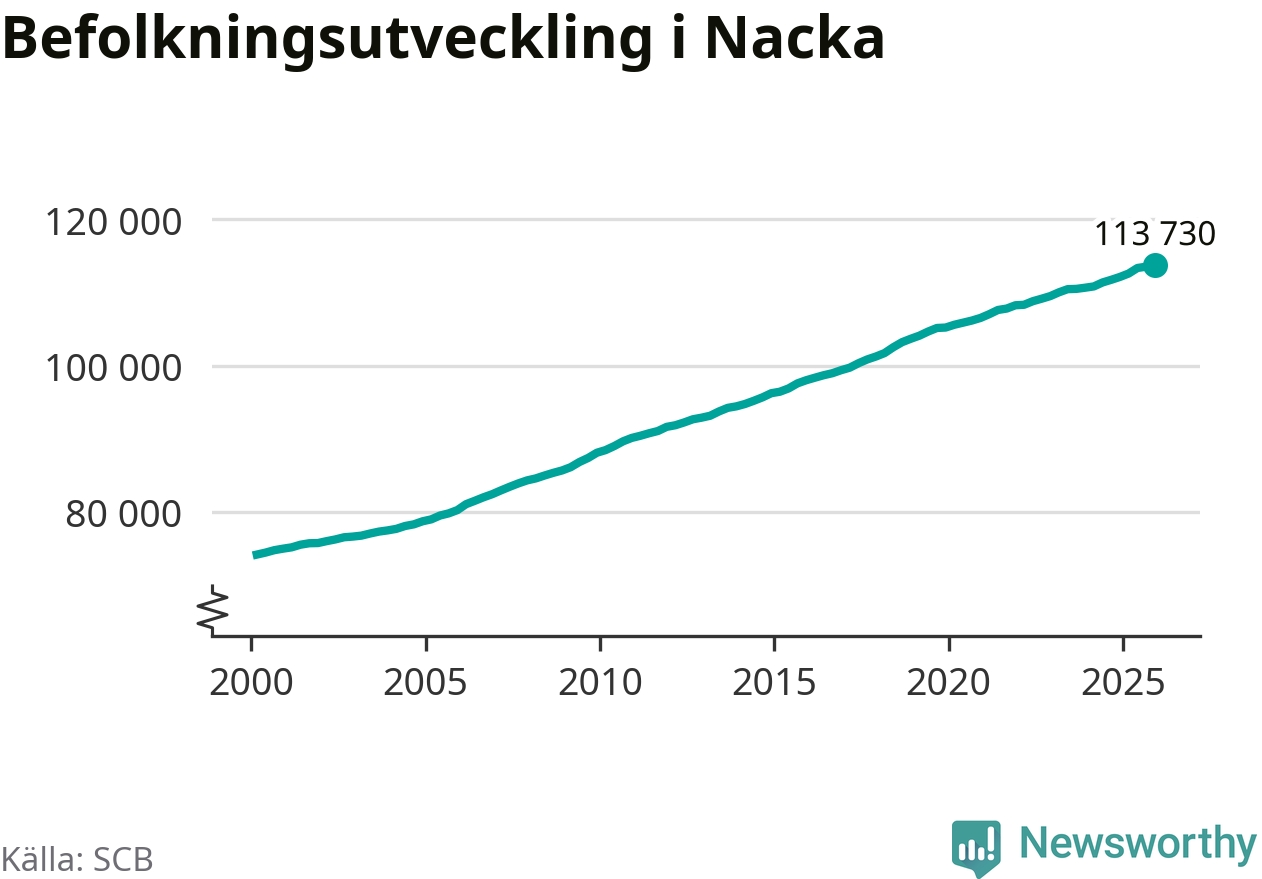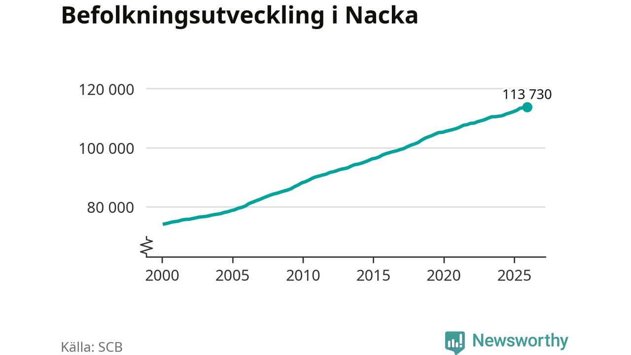Befolkningen ökade i Nacka kommun under det fjärde kvartalet 2025. Den 31 december bodde enligt SCB:s senaste siffror 113 730 personer i kommunen, vilket är 221 fler än i slutet av tredje kvartalet.