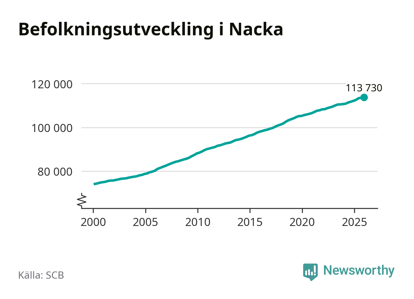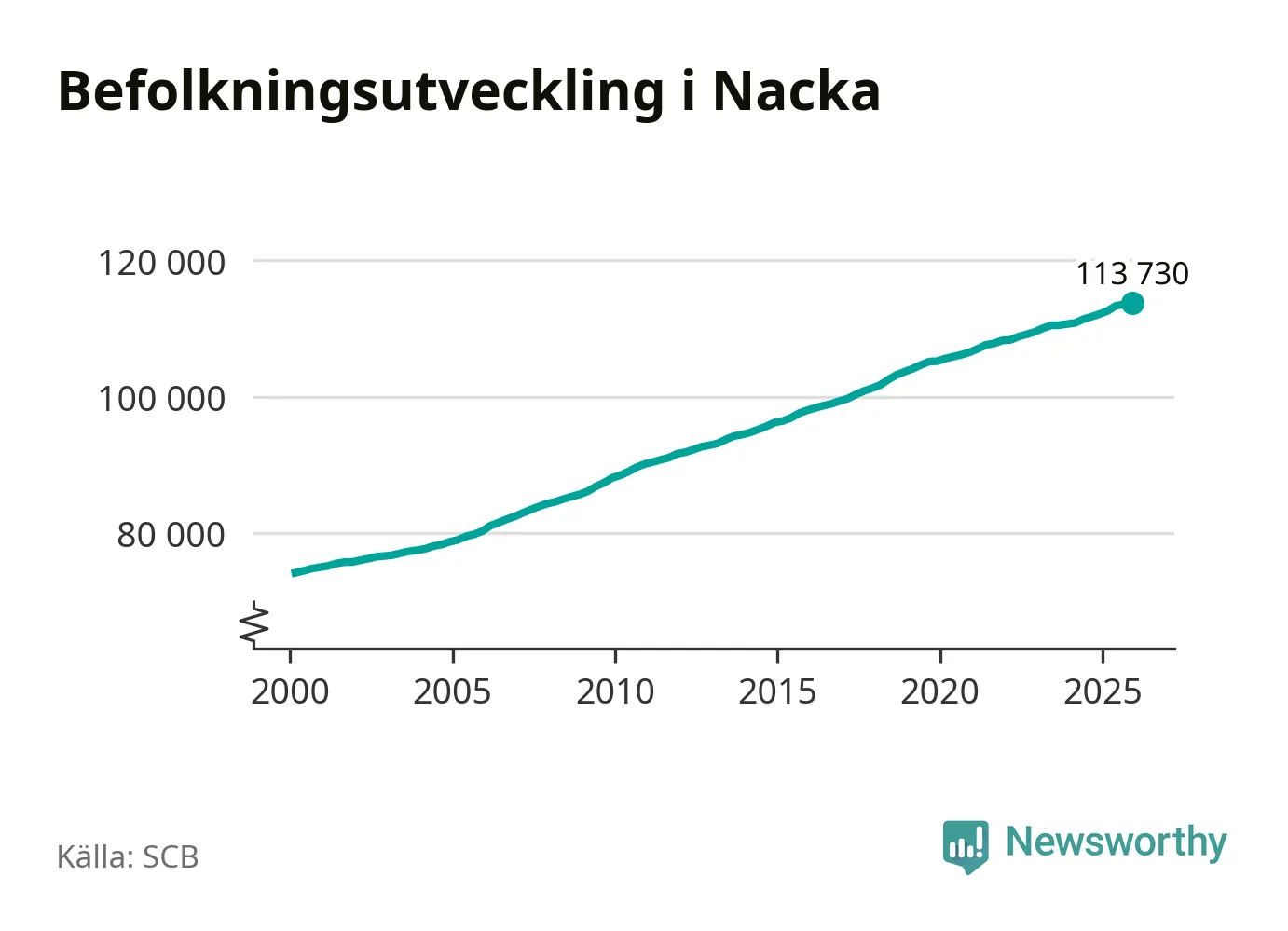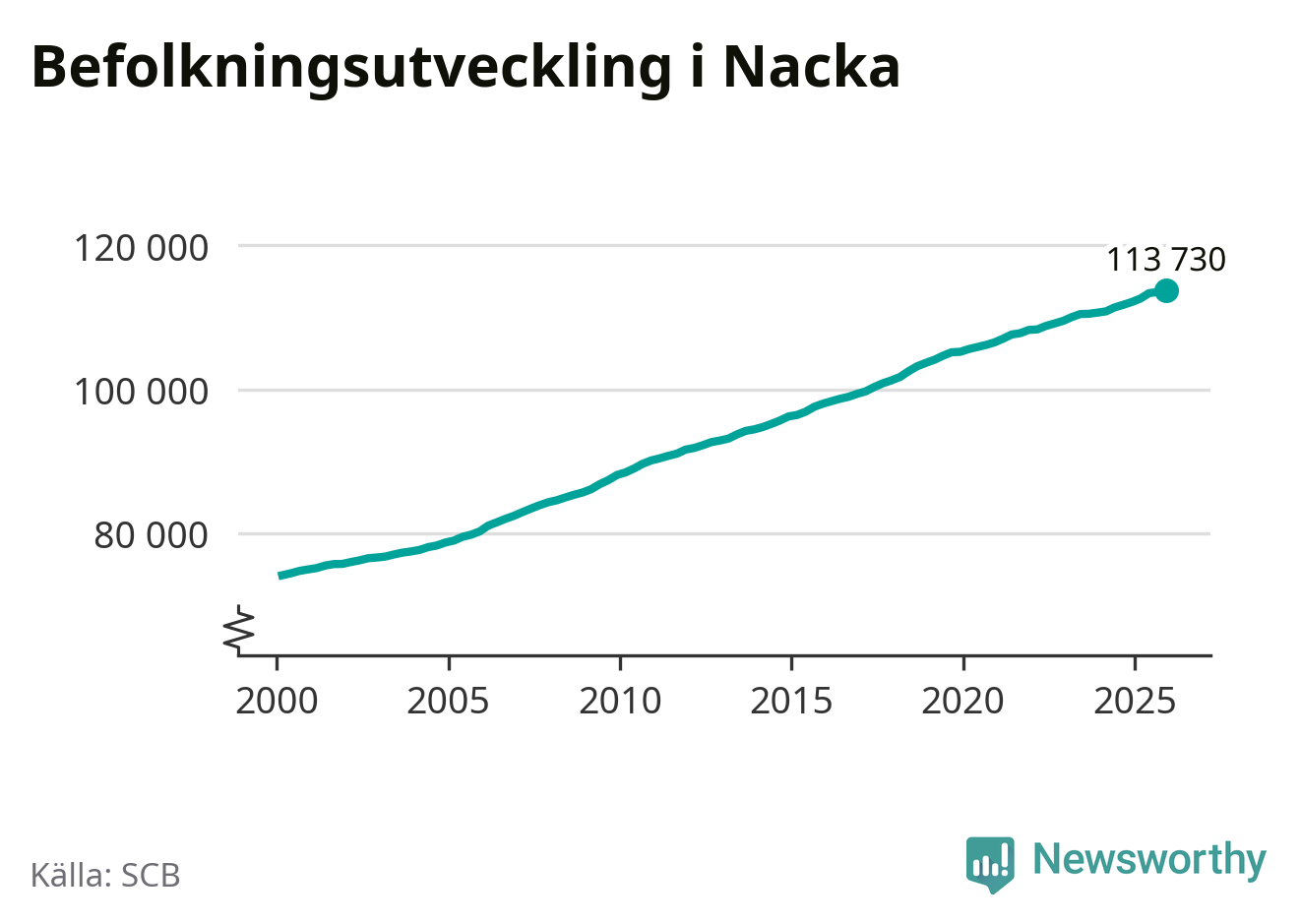 Befolkningen ökade i Nacka kommun under det fjärde kvartalet 2025. Den 31 december bodde enligt SCB:s senaste siffror 113 730 personer i kommunen, vilket är 221 fler än i slutet av tredje kvartalet.