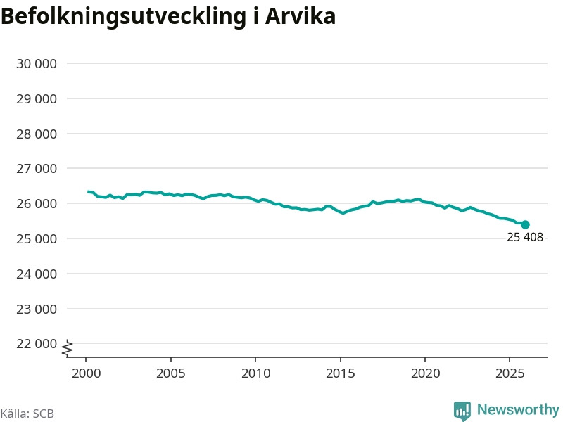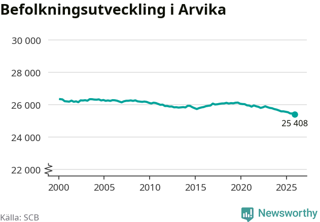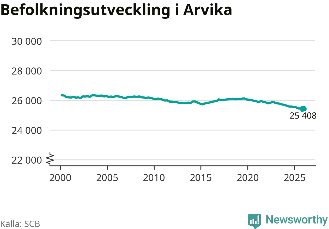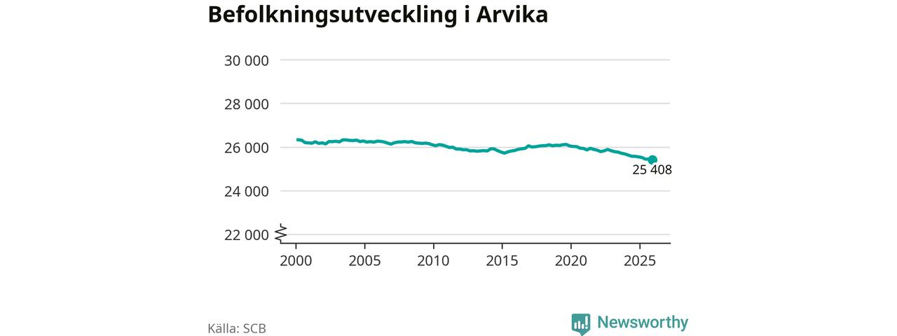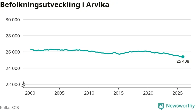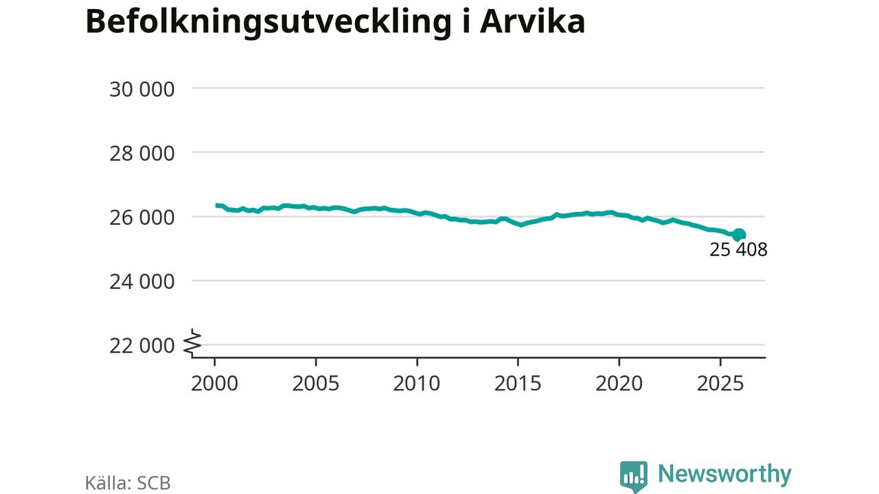 Befolkningen minskade i Arvika kommun under det fjärde kvartalet 2025. Den 31 december bodde enligt SCB:s senaste siffror 25 408 personer i kommunen, vilket är 36 färre än i slutet av tredje kvartalet.