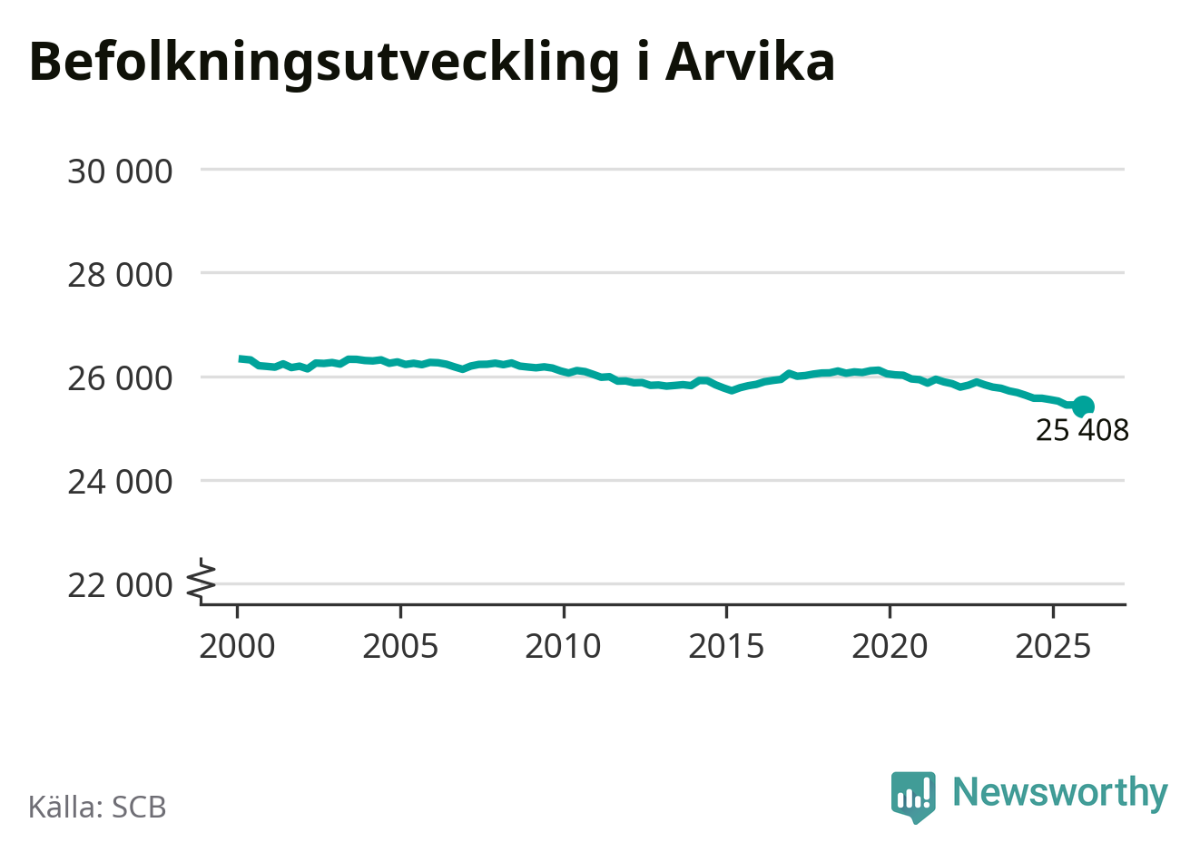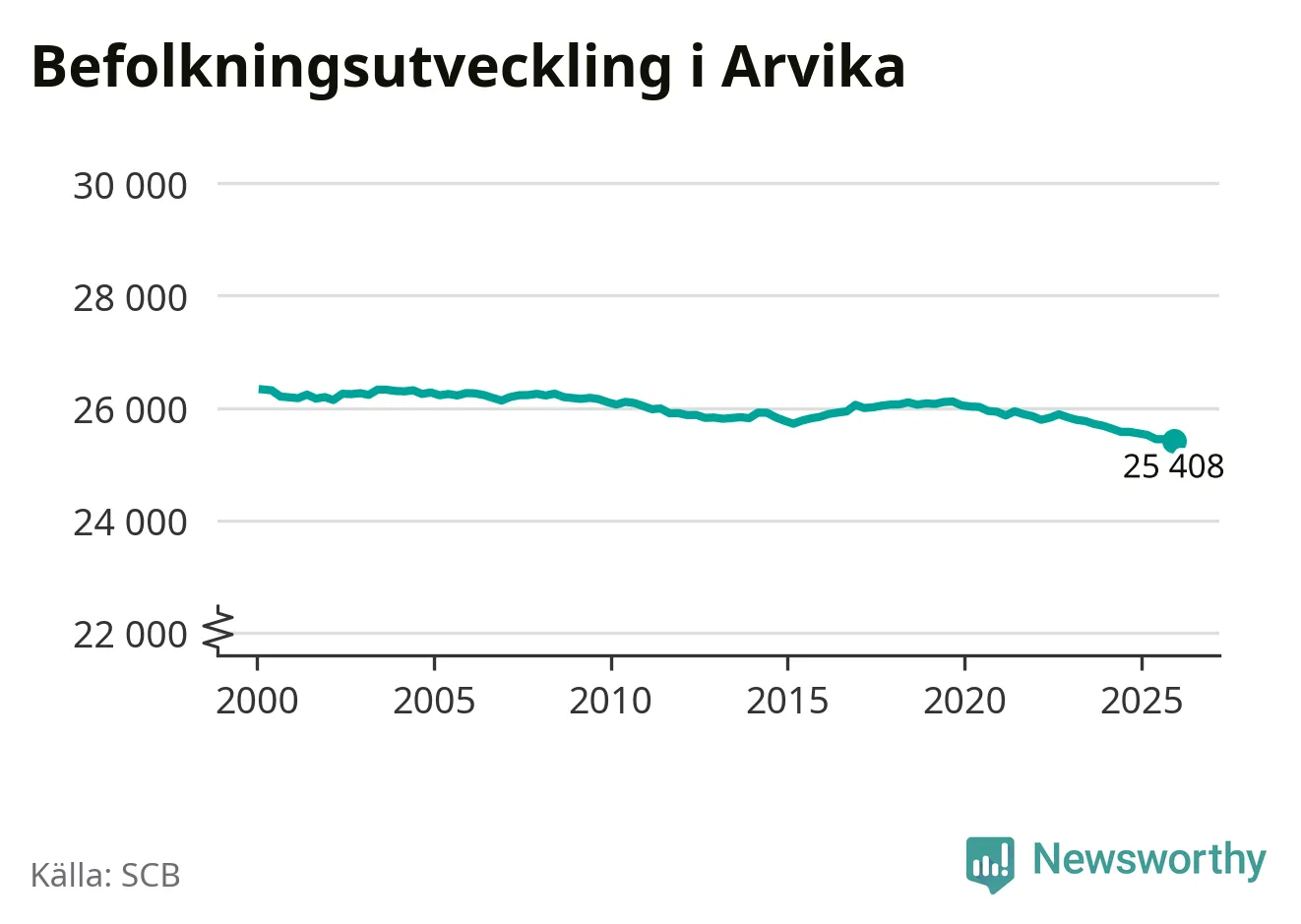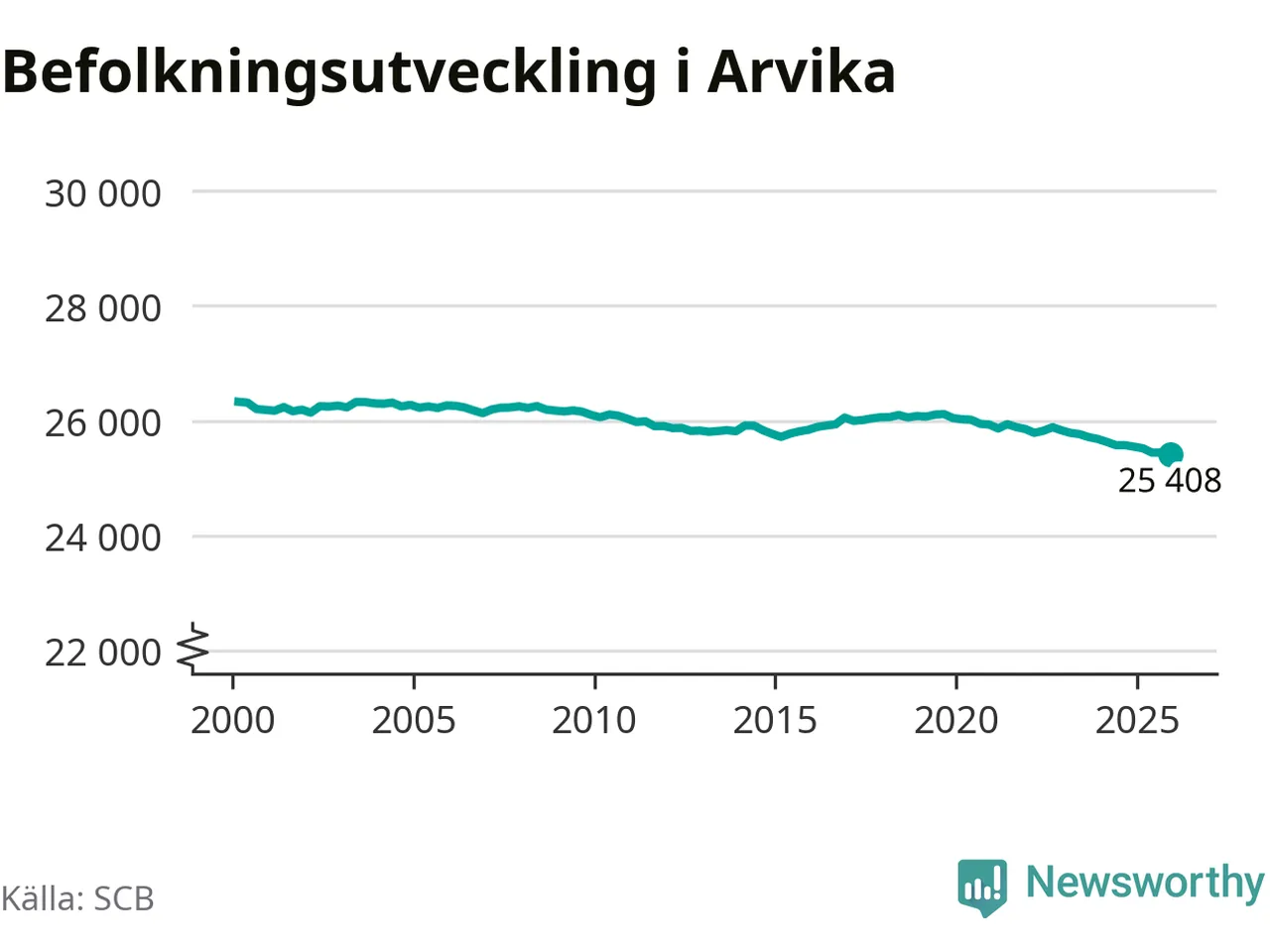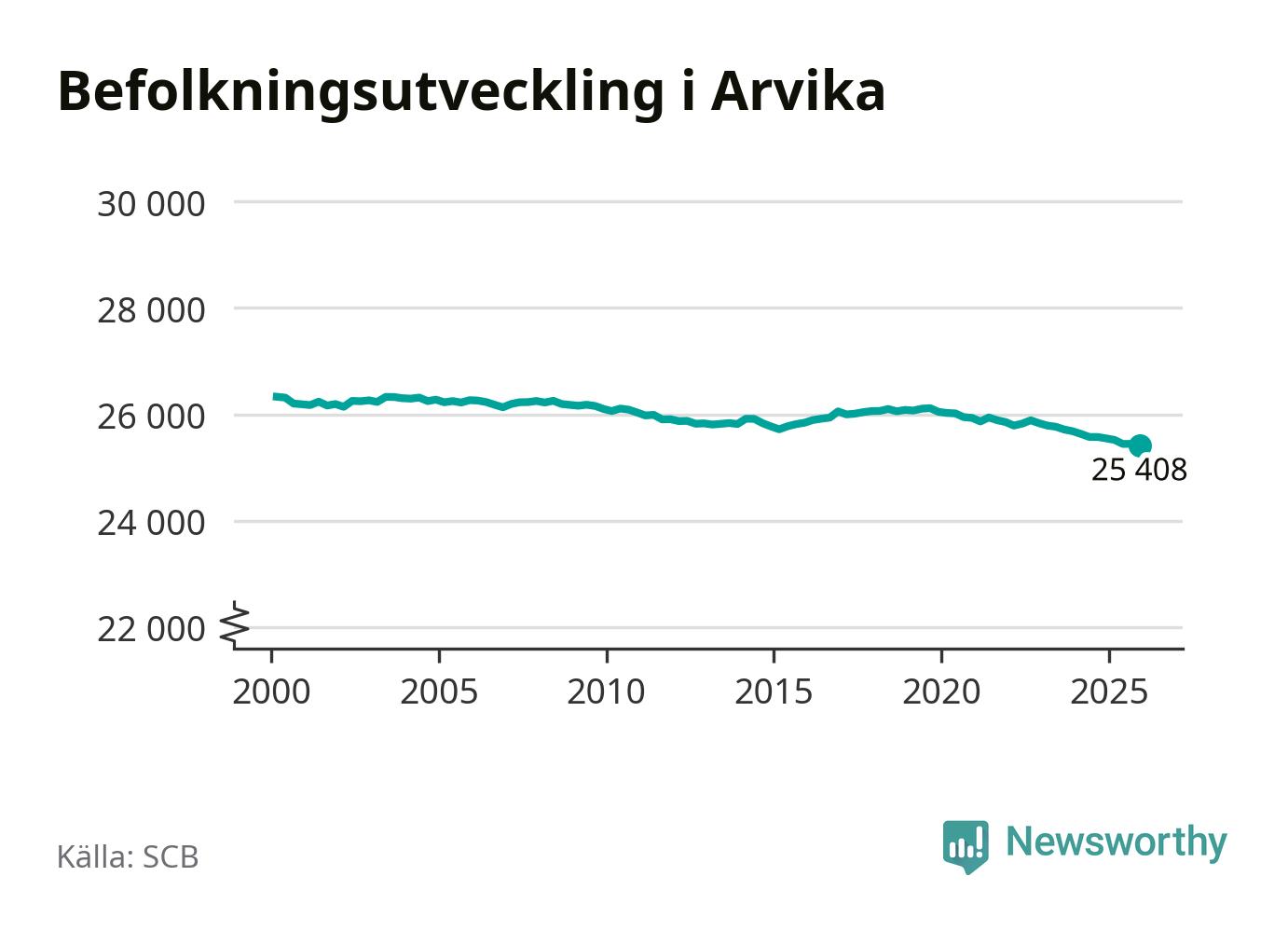 Befolkningen minskade i Arvika kommun under det fjärde kvartalet 2025. Den 31 december bodde enligt SCB:s senaste siffror 25 408 personer i kommunen, vilket är 36 färre än i slutet av tredje kvartalet.