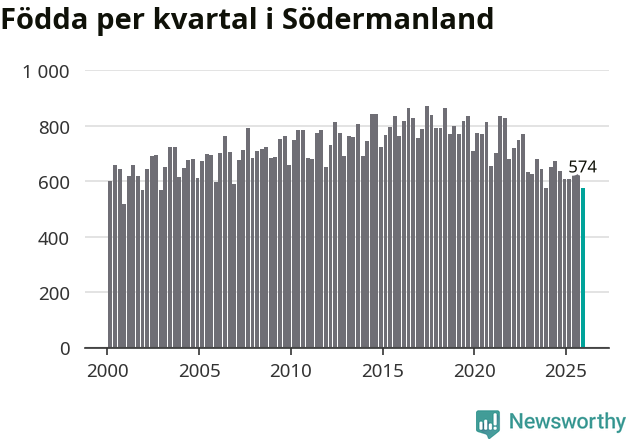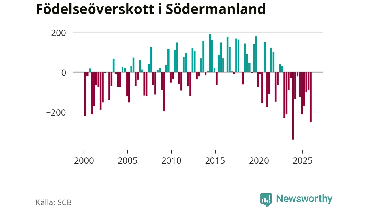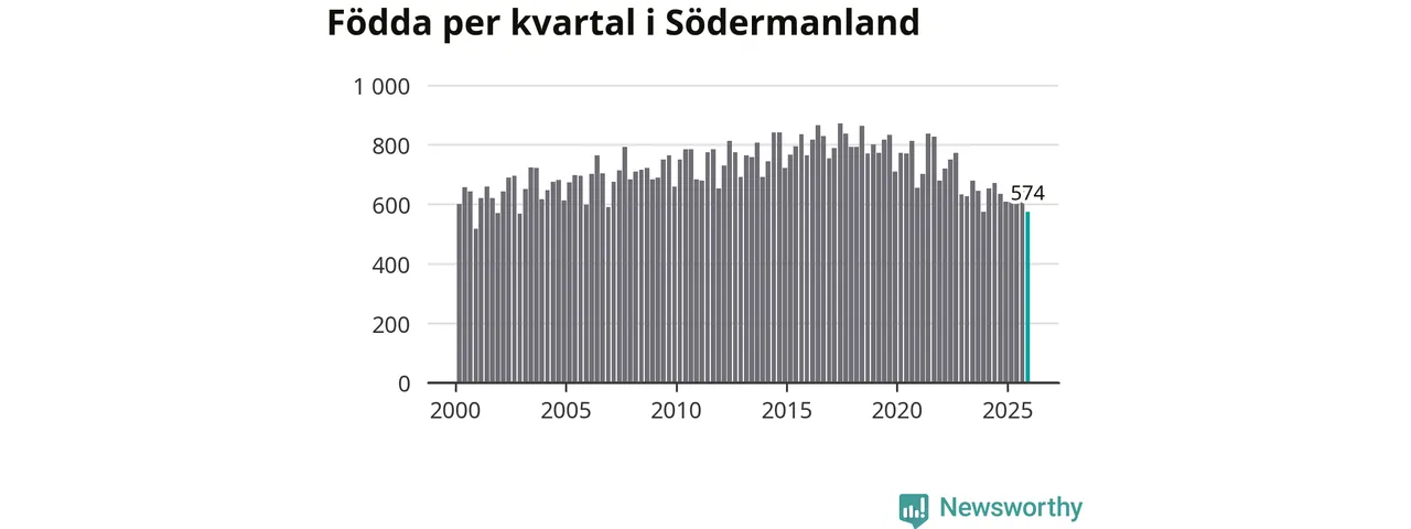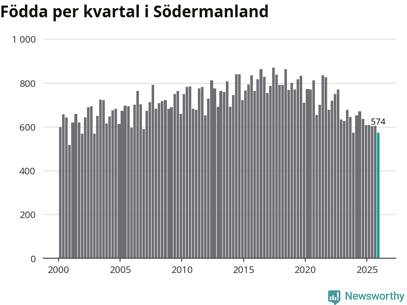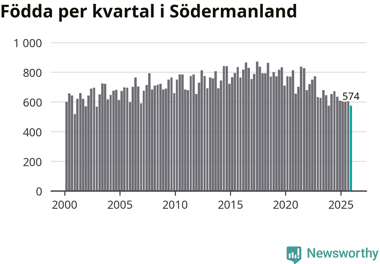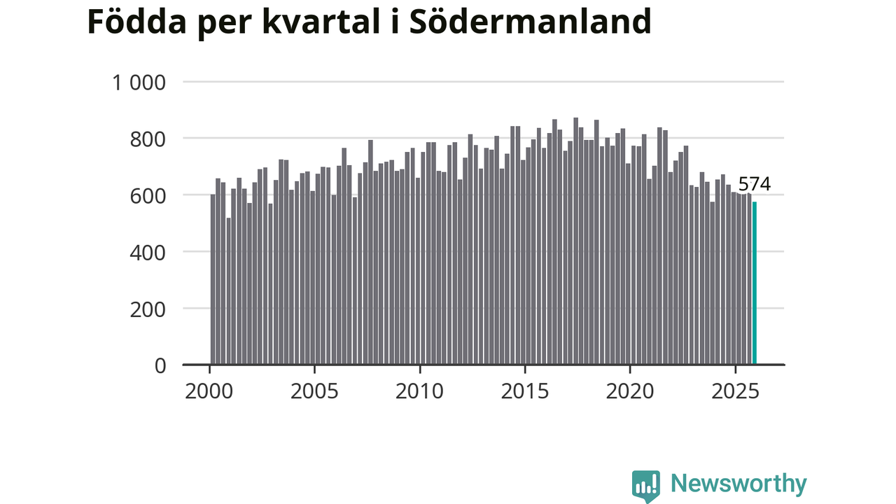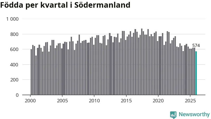 Enligt SCB:s siffror föddes 574 barn i Södermanland under det senaste kvartalet. Samtidigt avled 825 personer. Södermanland hade alltså ett negativt födelsenetto, vilket länet historiskt sett oftast har haft.