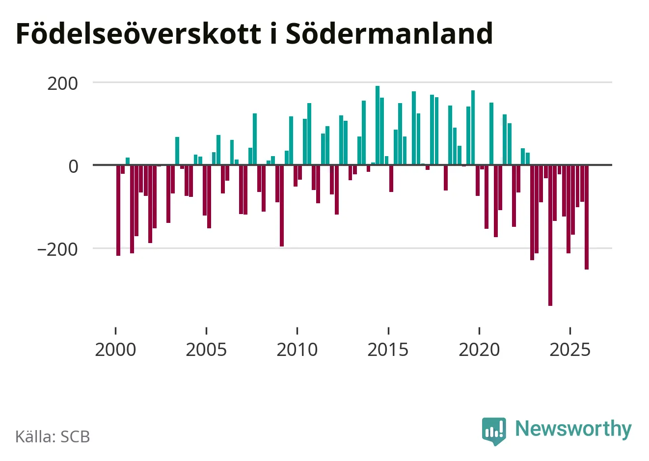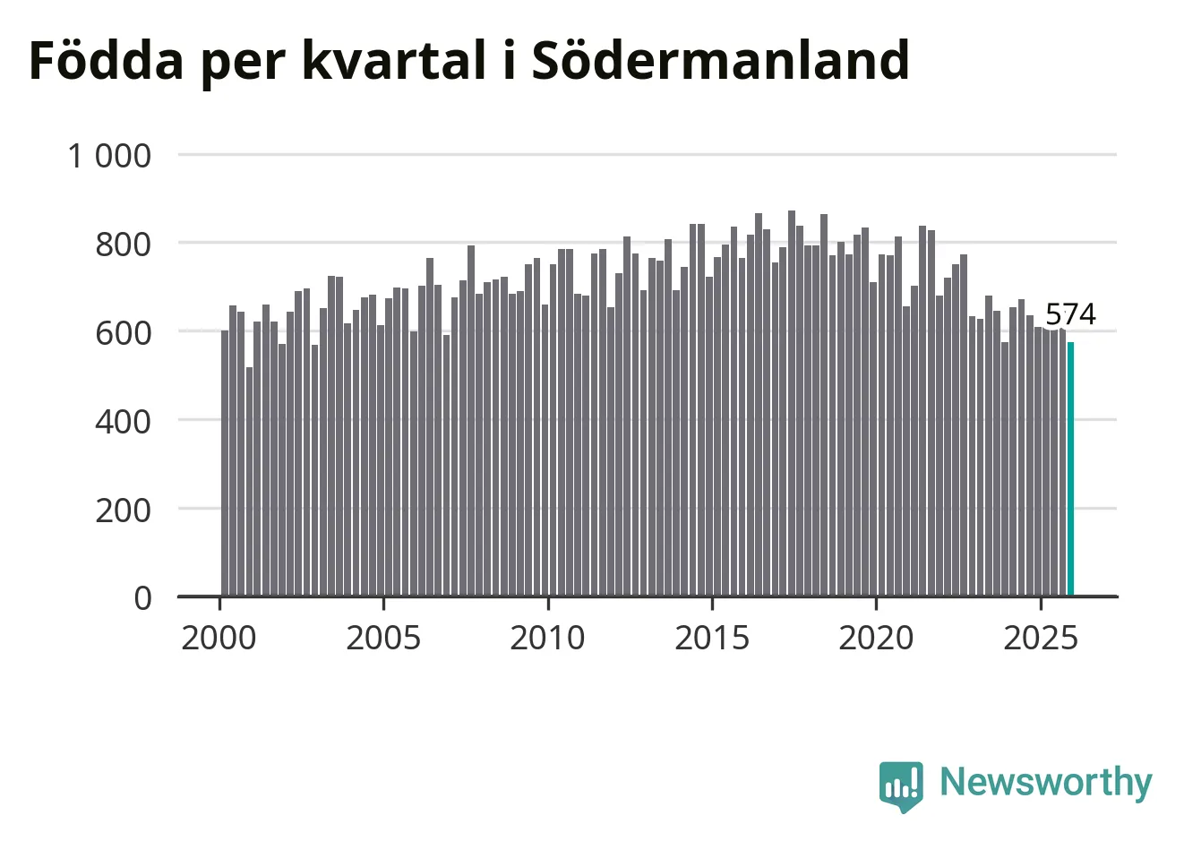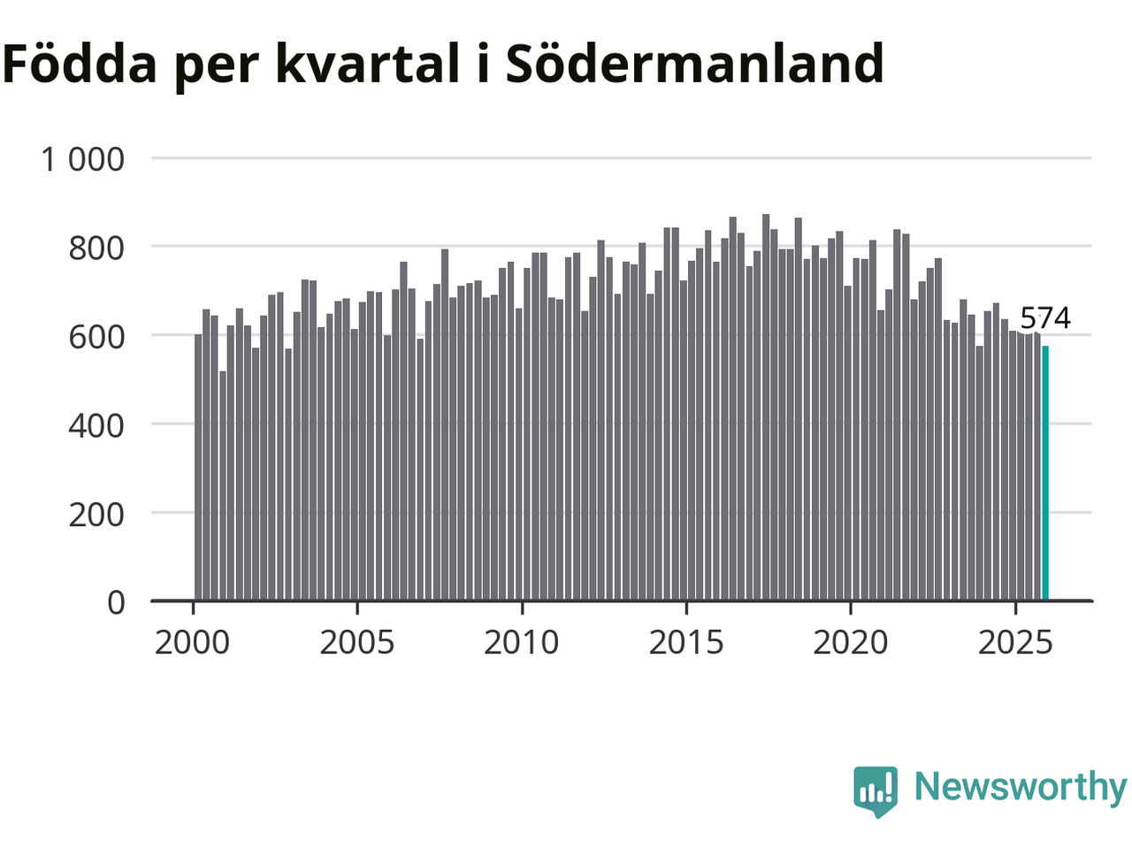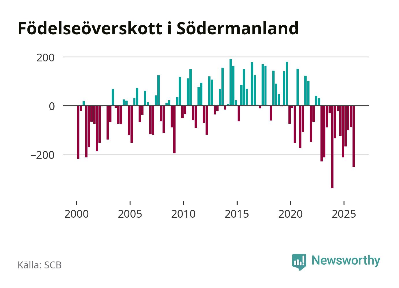 Enligt SCB:s siffror föddes 574 barn i Södermanland under det senaste kvartalet. Samtidigt avled 825 personer. Södermanland hade alltså ett negativt födelsenetto, vilket länet historiskt sett oftast har haft.