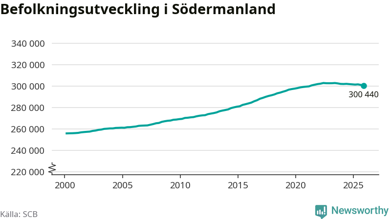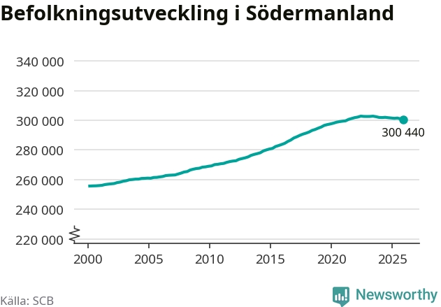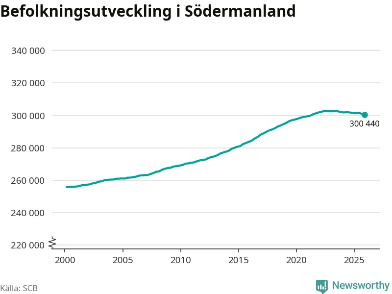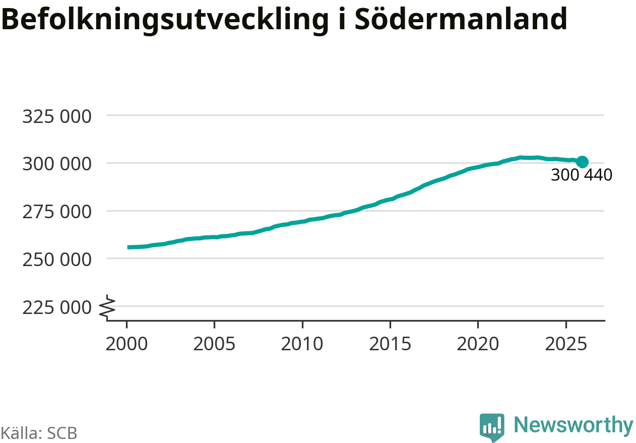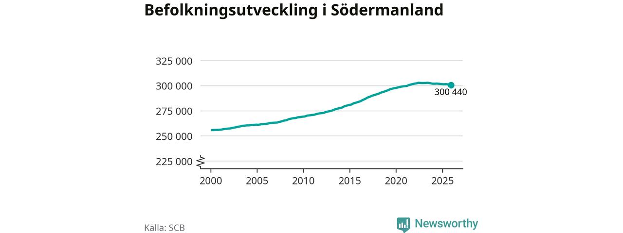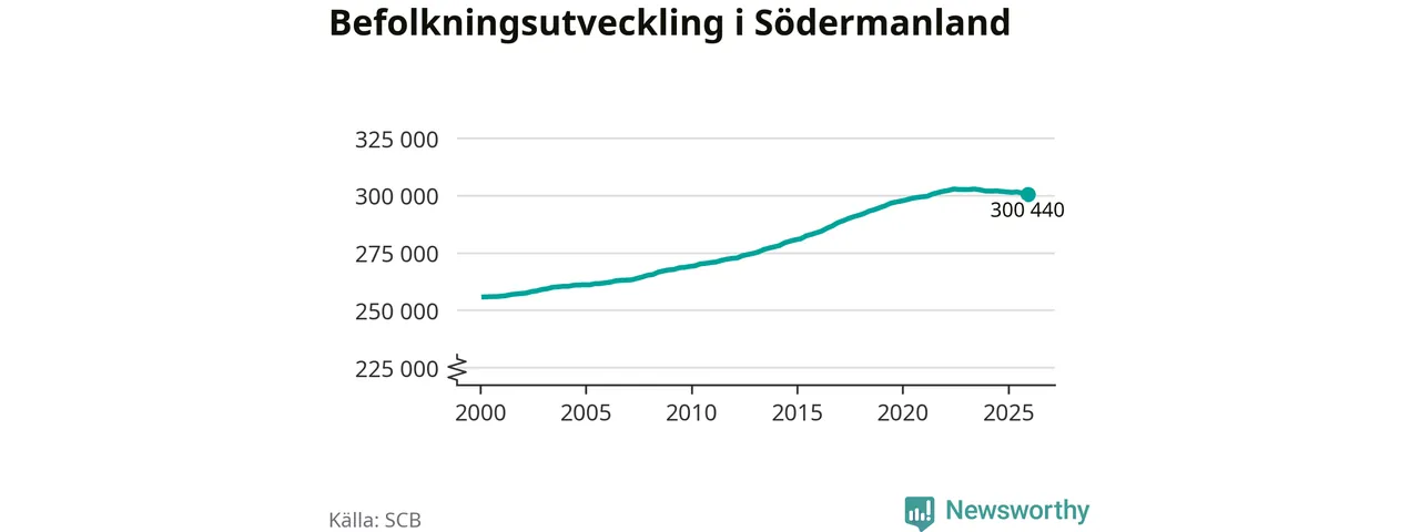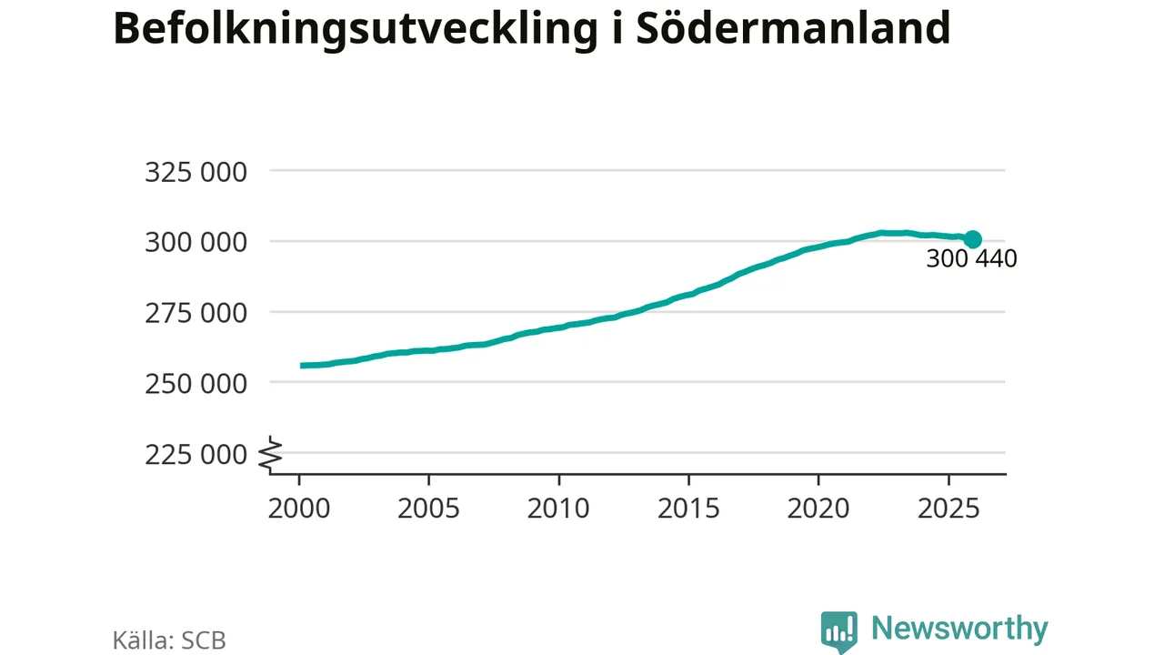Befolkningen minskade i Södermanlands län under det fjärde kvartalet 2025. Den 31 december bodde enligt SCB:s senaste siffror 300 440 personer i länet, vilket är 550 färre än i slutet av tredje kvartalet.