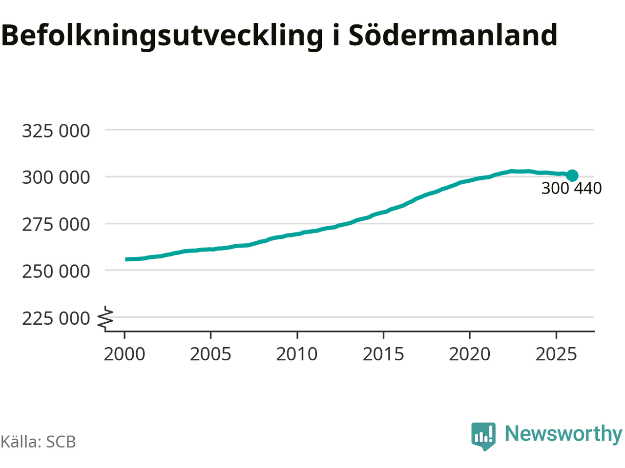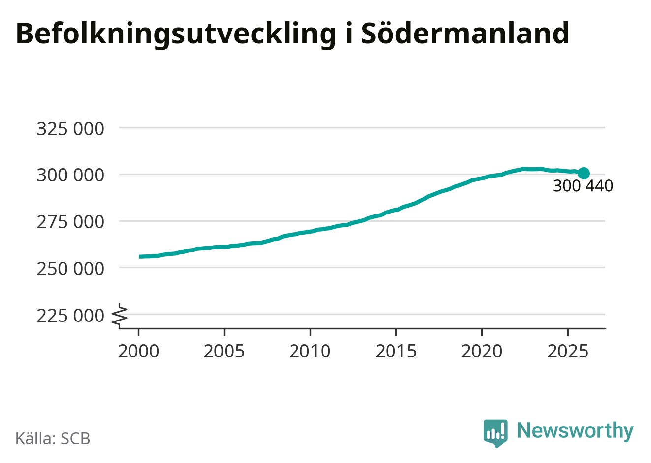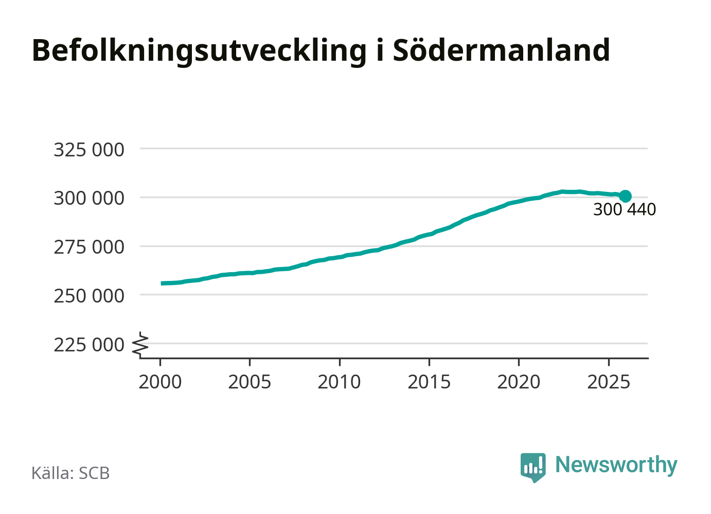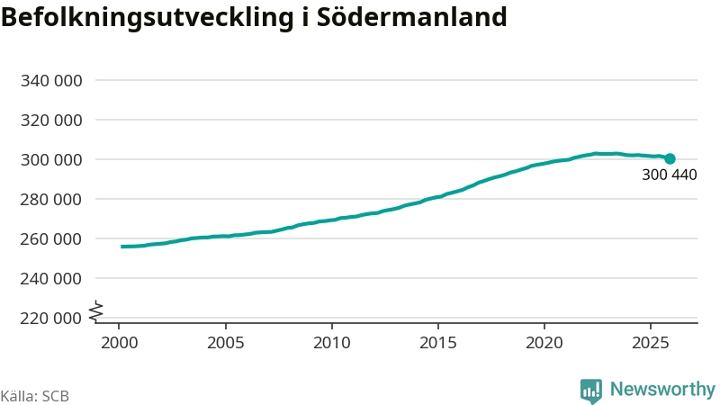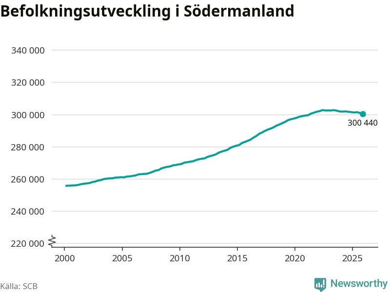 Befolkningen minskade i Södermanlands län under det fjärde kvartalet 2025. Den 31 december bodde enligt SCB:s senaste siffror 300 440 personer i länet, vilket är 550 färre än i slutet av tredje kvartalet.