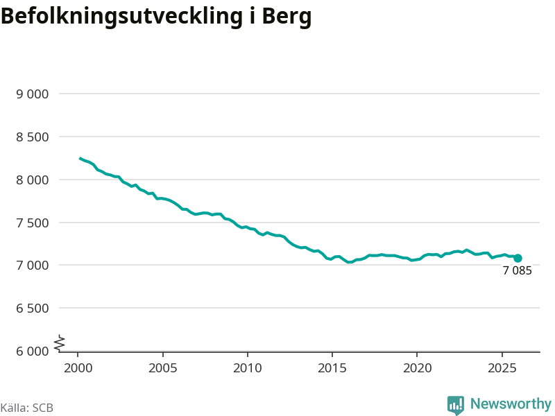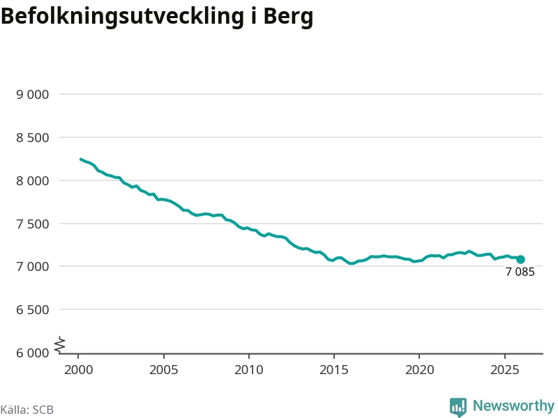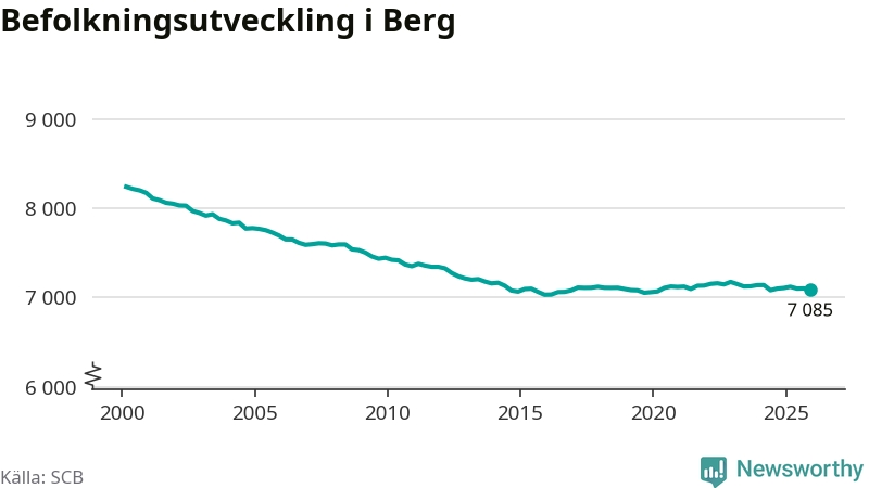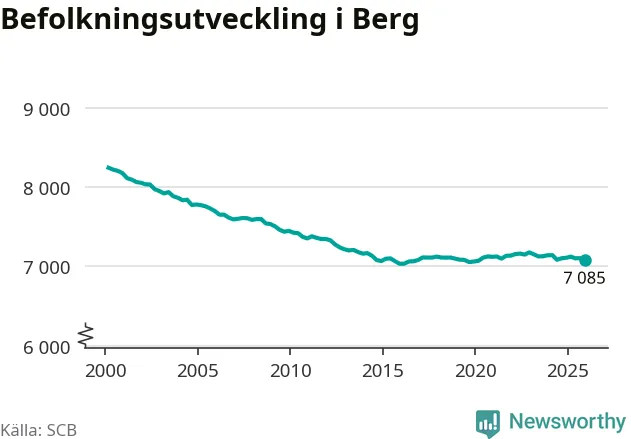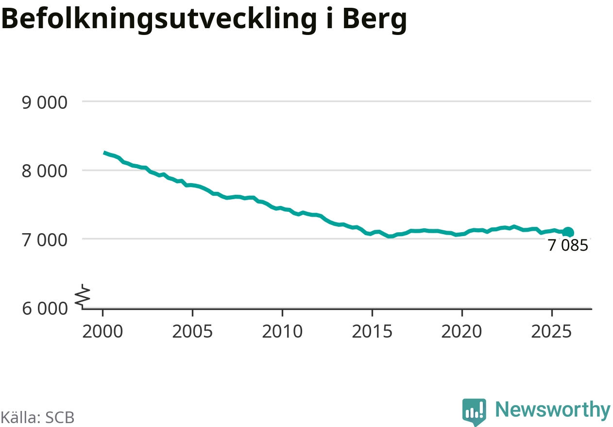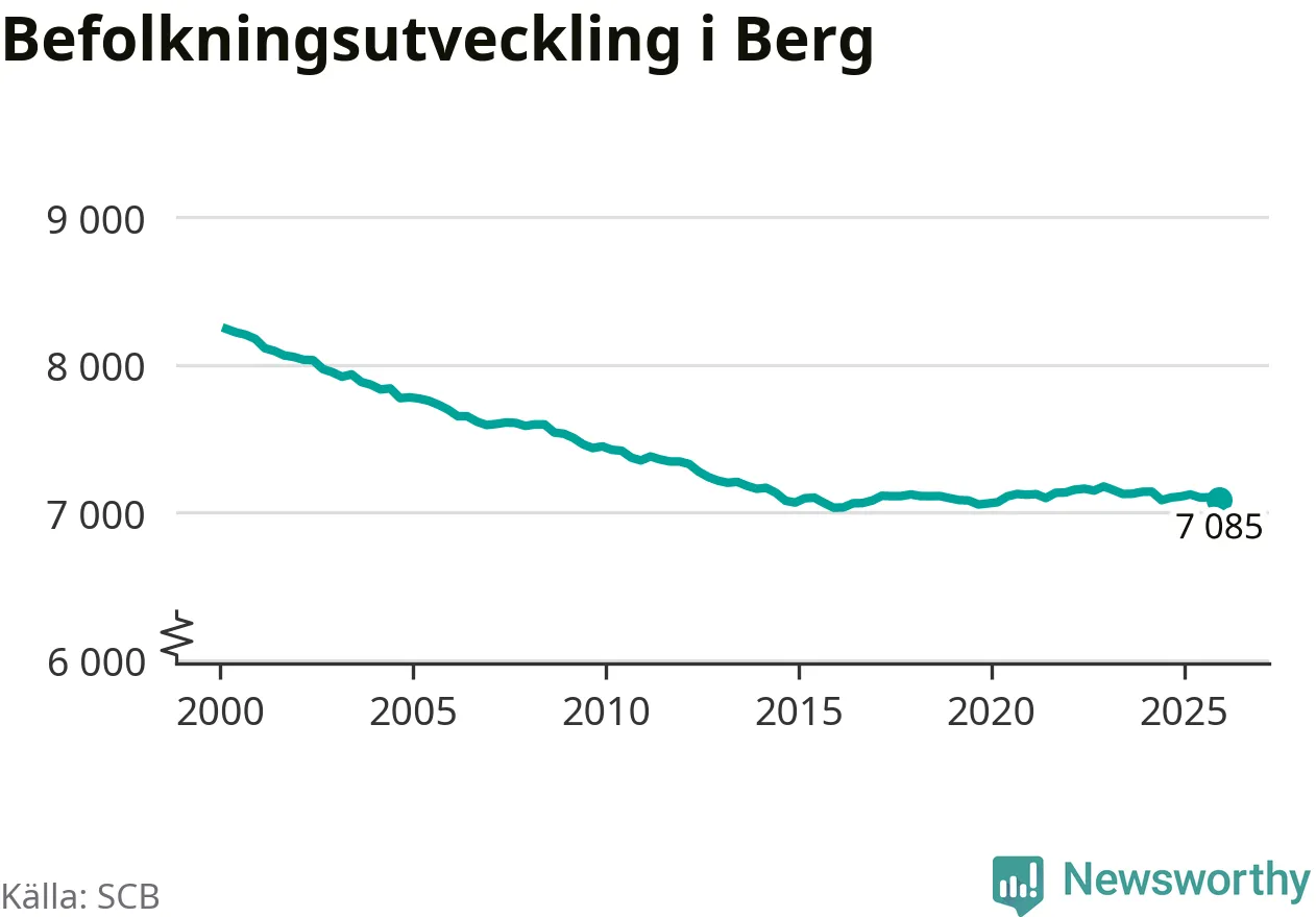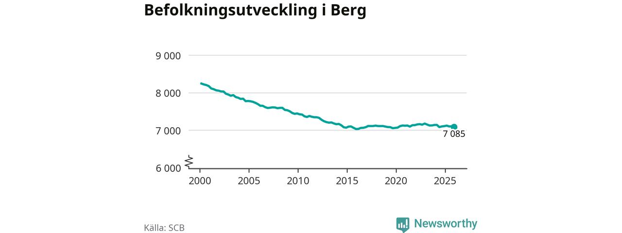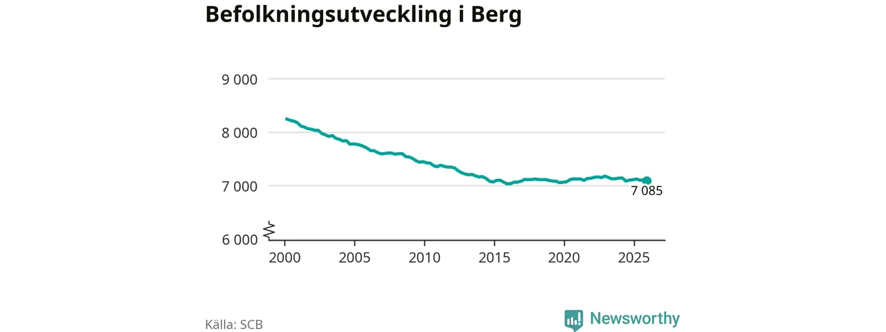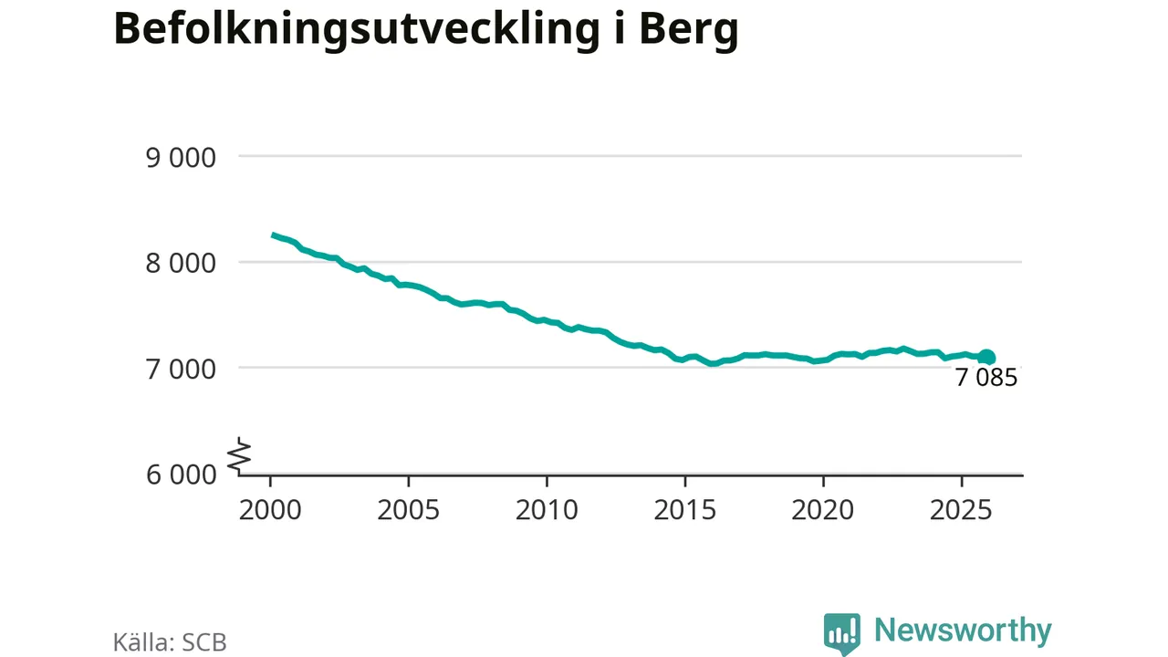 Befolkningen minskade i Bergs kommun under det fjärde kvartalet 2025. Den 31 december bodde enligt SCB:s senaste siffror 7 085 personer i kommunen, vilket är 18 färre än i slutet av tredje kvartalet.
