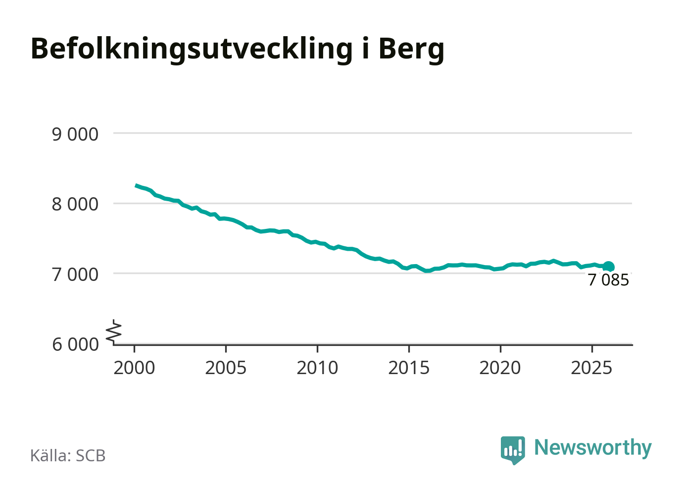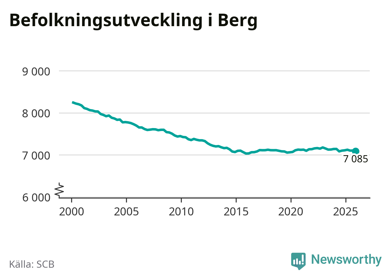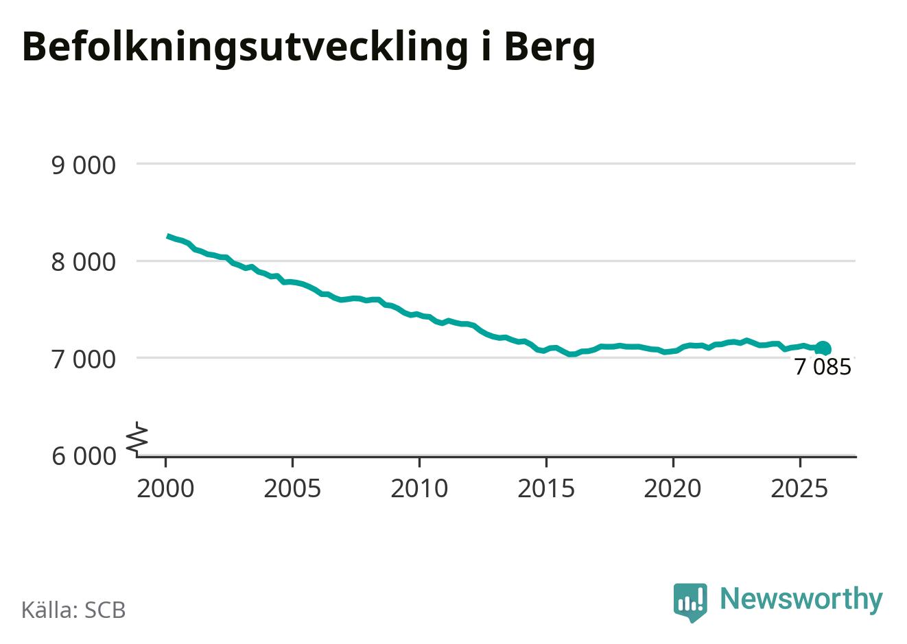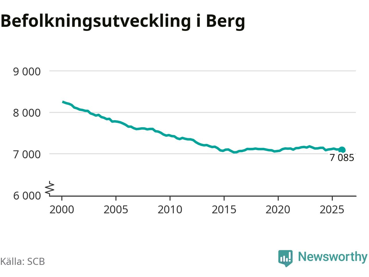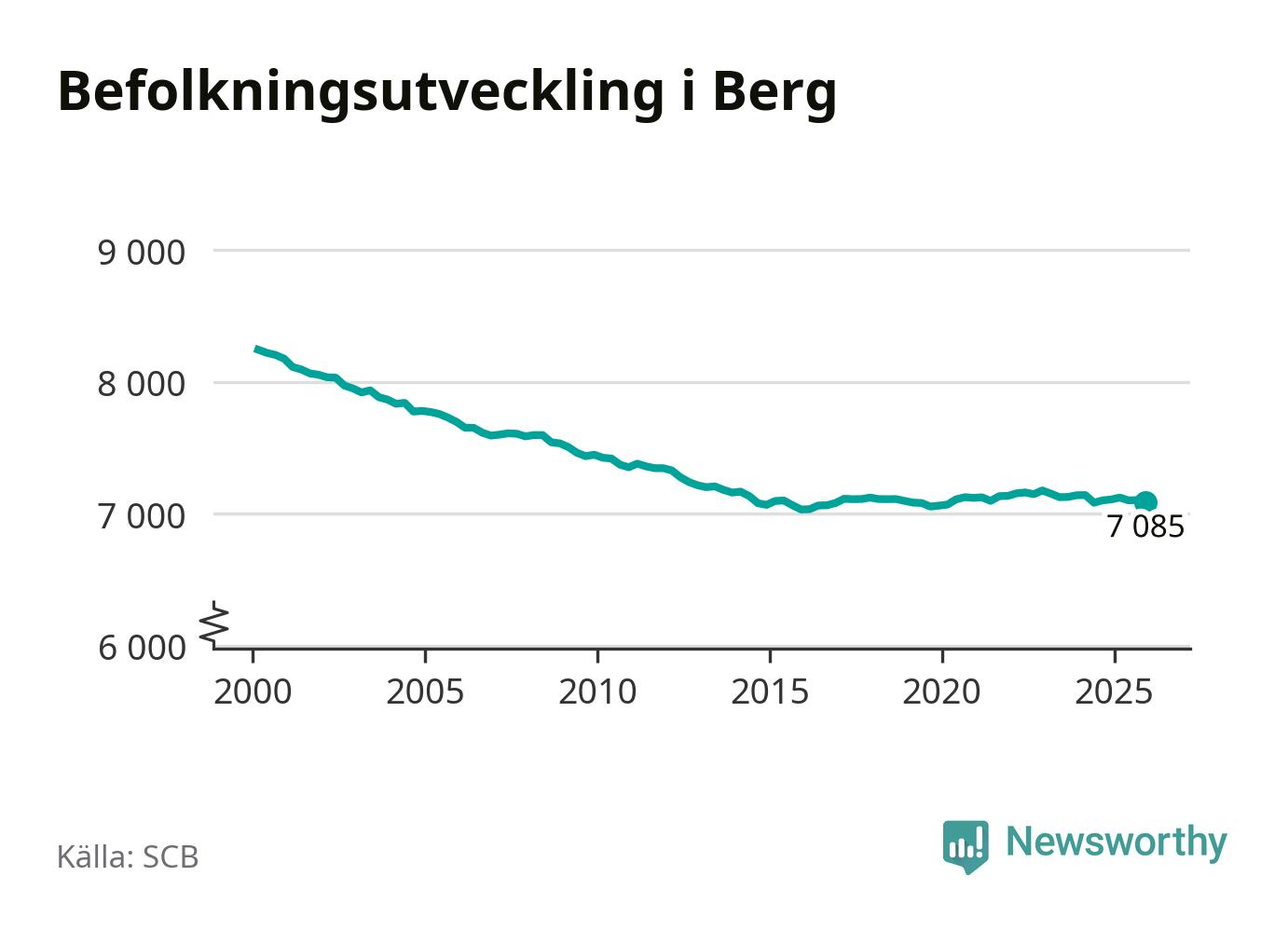 Befolkningen minskade i Bergs kommun under det fjärde kvartalet 2025. Den 31 december bodde enligt SCB:s senaste siffror 7 085 personer i kommunen, vilket är 18 färre än i slutet av tredje kvartalet.