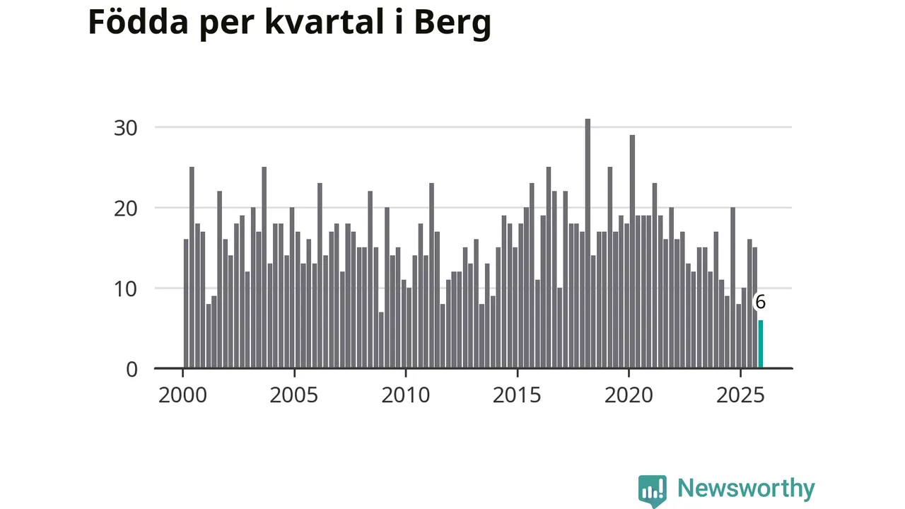 Sex barn föddes i Bergs kommun under fjärde kvartalet 2025. Det är den lägsta siffran hittills det här seklet. Det visar SCB:s senaste befolkningsstatistik.