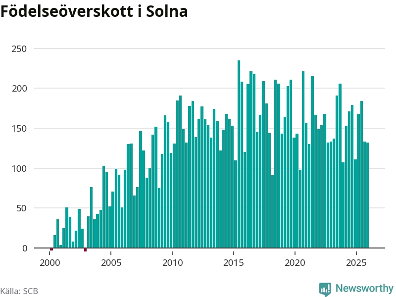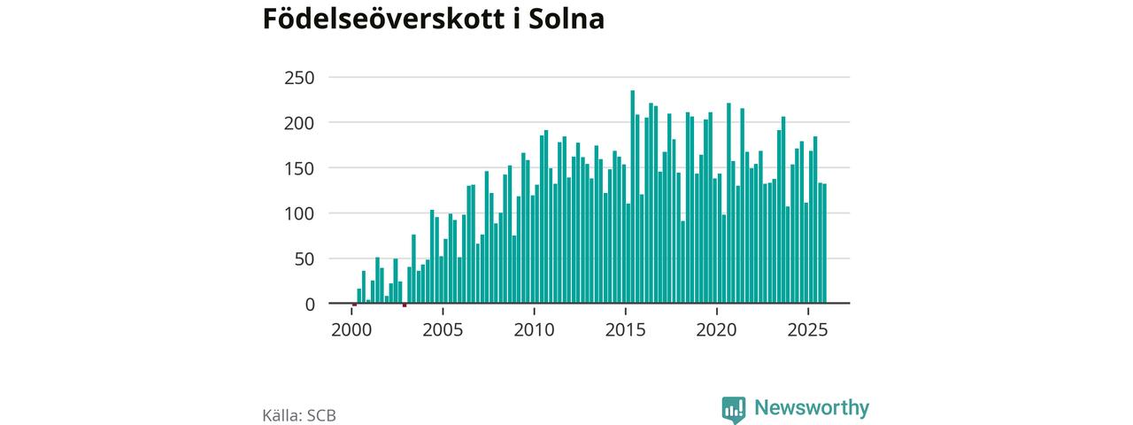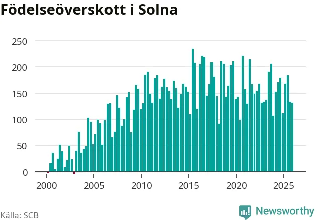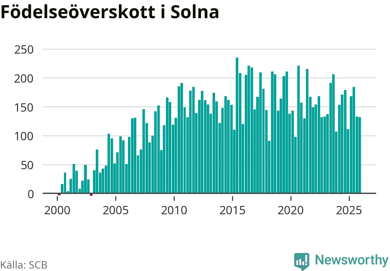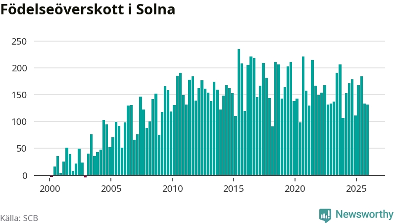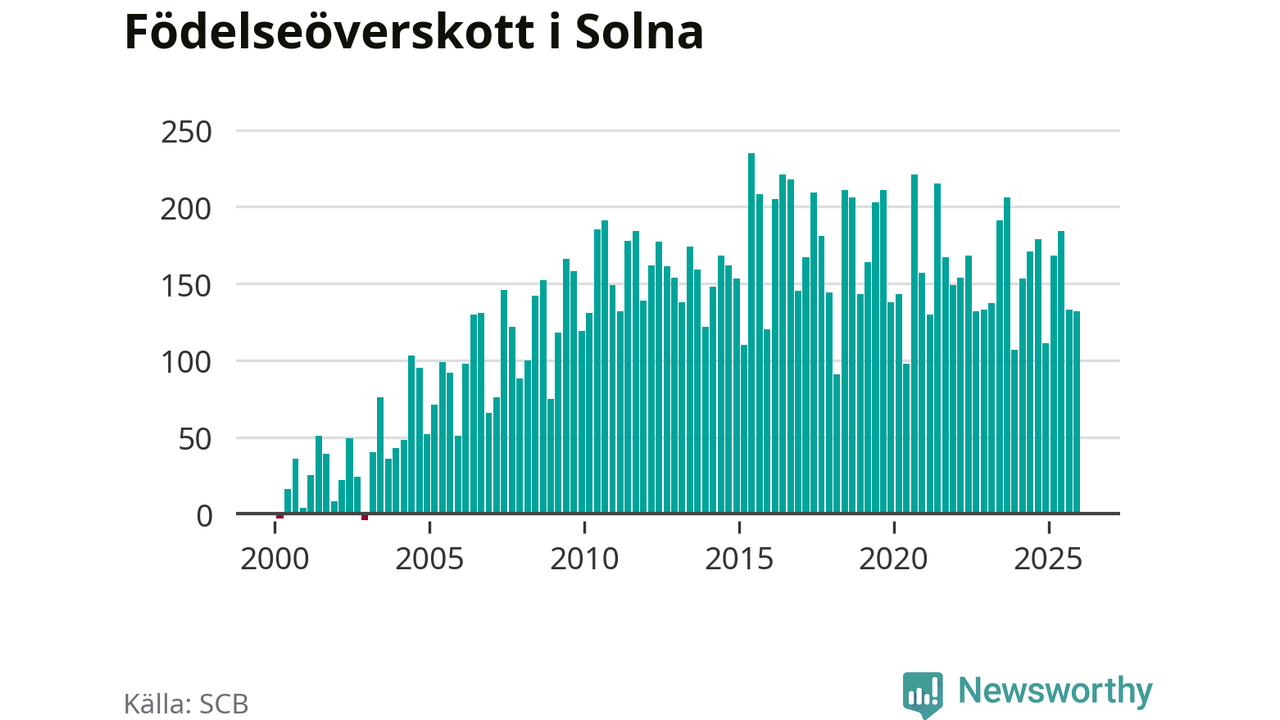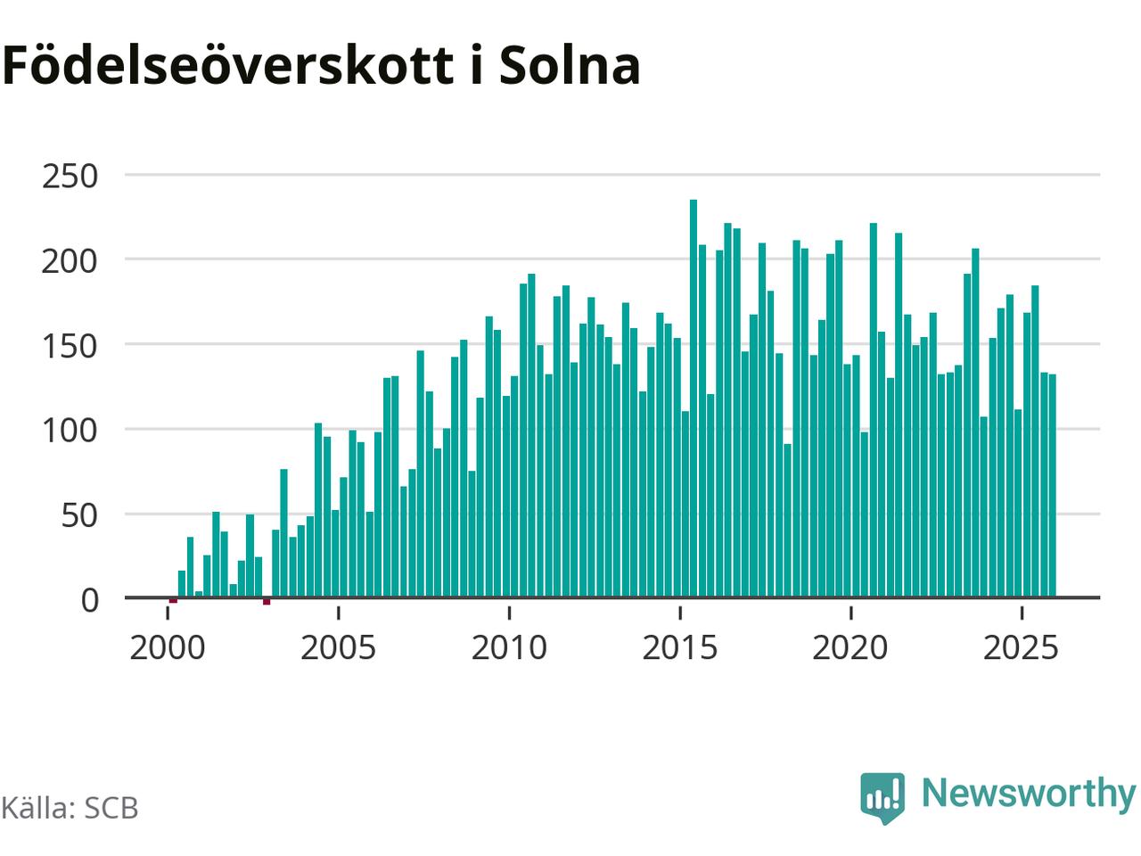 Enligt SCB:s siffror föddes 245 barn i Solna under det senaste kvartalet. Samtidigt avled relativt få – 113 personer. Solna hade alltså ett positivt födelsenetto, vilket kommunen historiskt sett i princip alltid har haft.