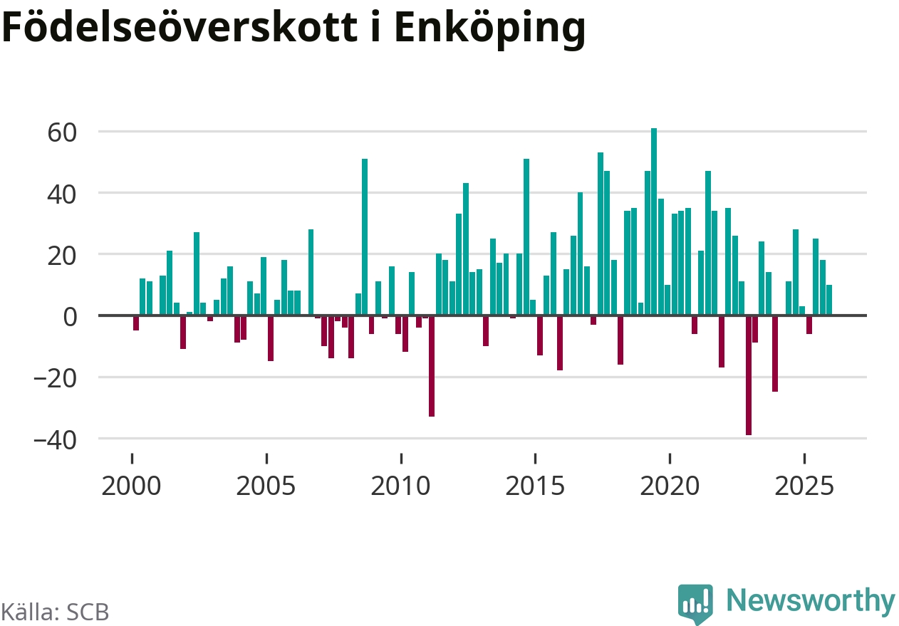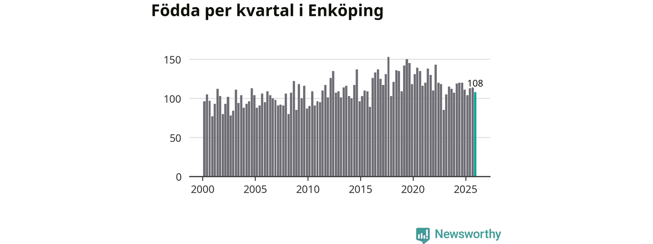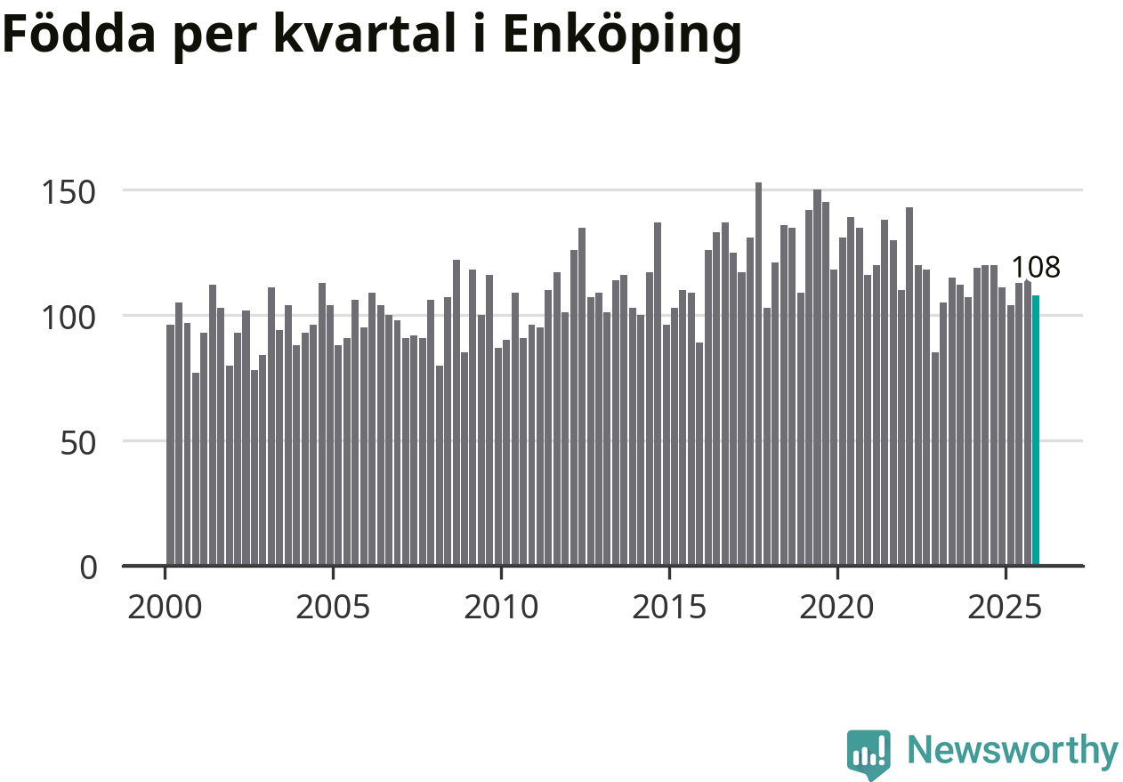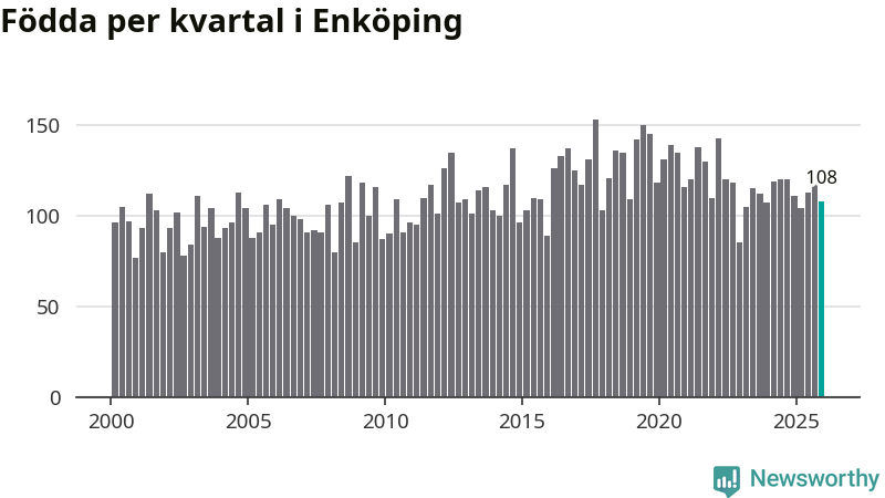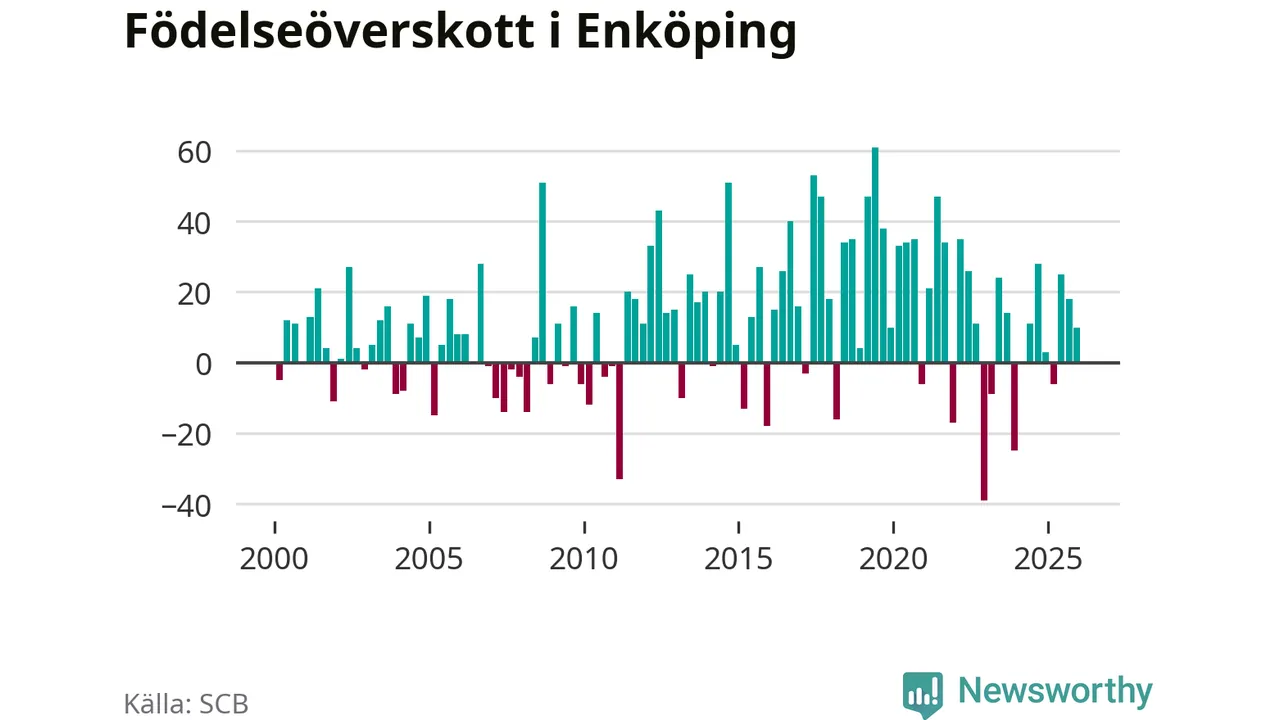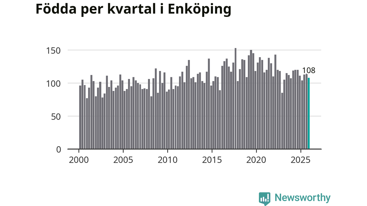 Enligt SCB:s siffror föddes 108 barn i Enköping under det senaste kvartalet. Samtidigt avled 98 personer. Enköping hade alltså ett positivt födelsenetto, vilket kommunen historiskt sett oftast har haft.