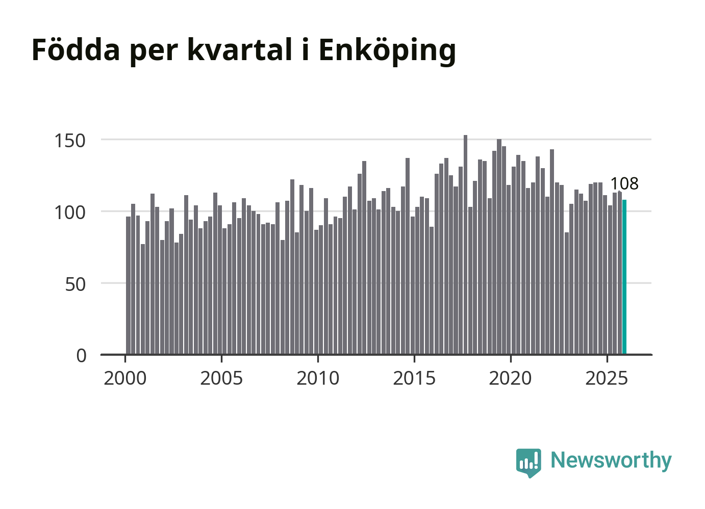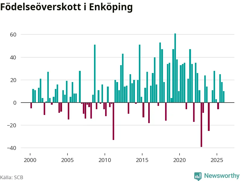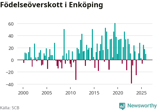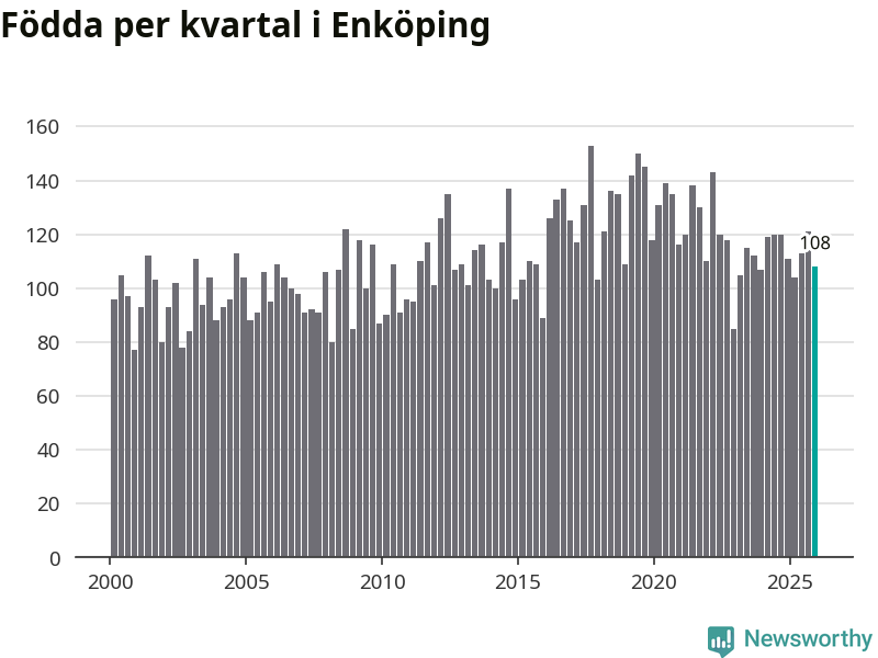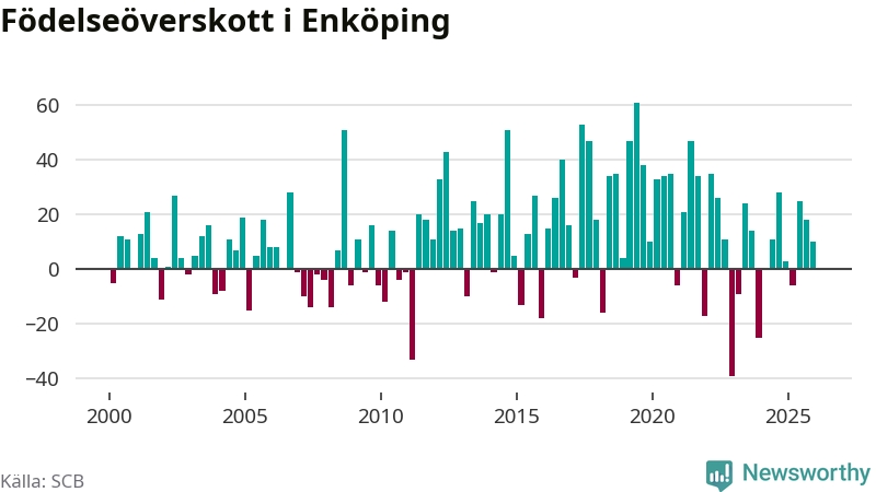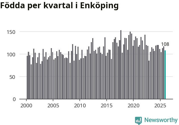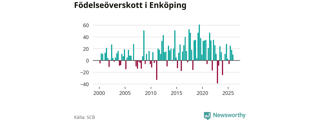 Enligt SCB:s siffror föddes 108 barn i Enköping under det senaste kvartalet. Samtidigt avled 98 personer. Enköping hade alltså ett positivt födelsenetto, vilket kommunen historiskt sett oftast har haft.