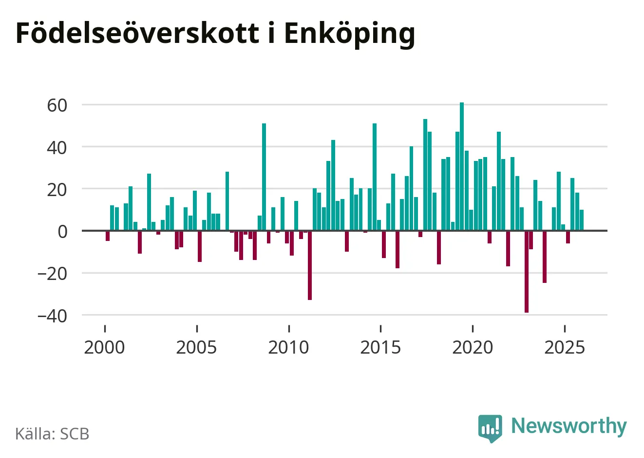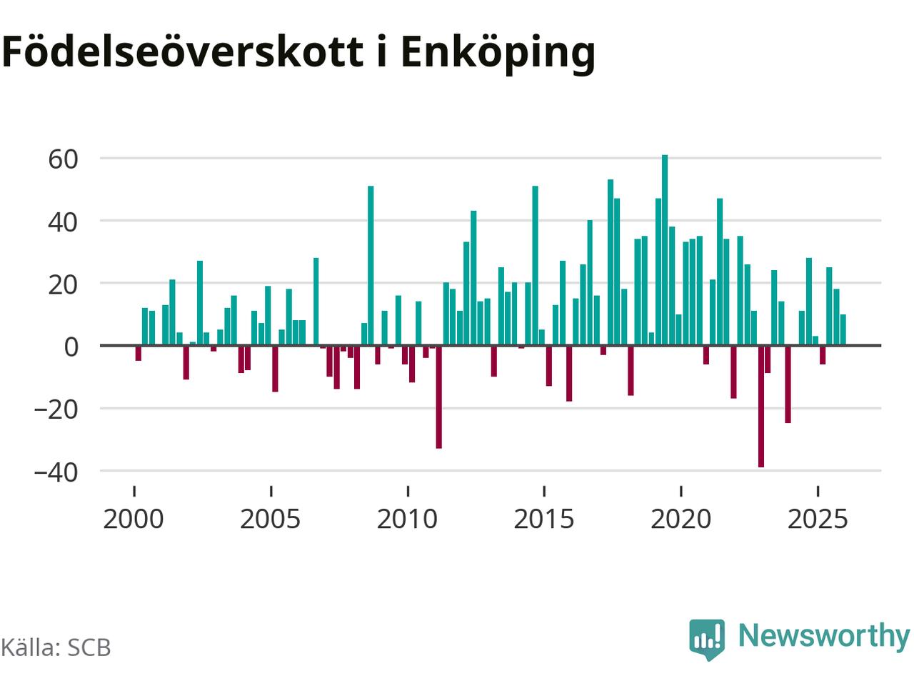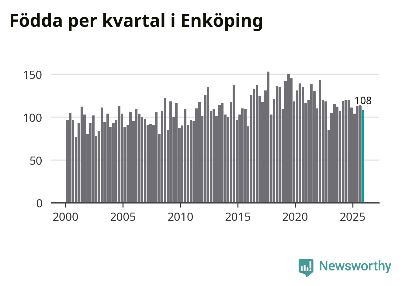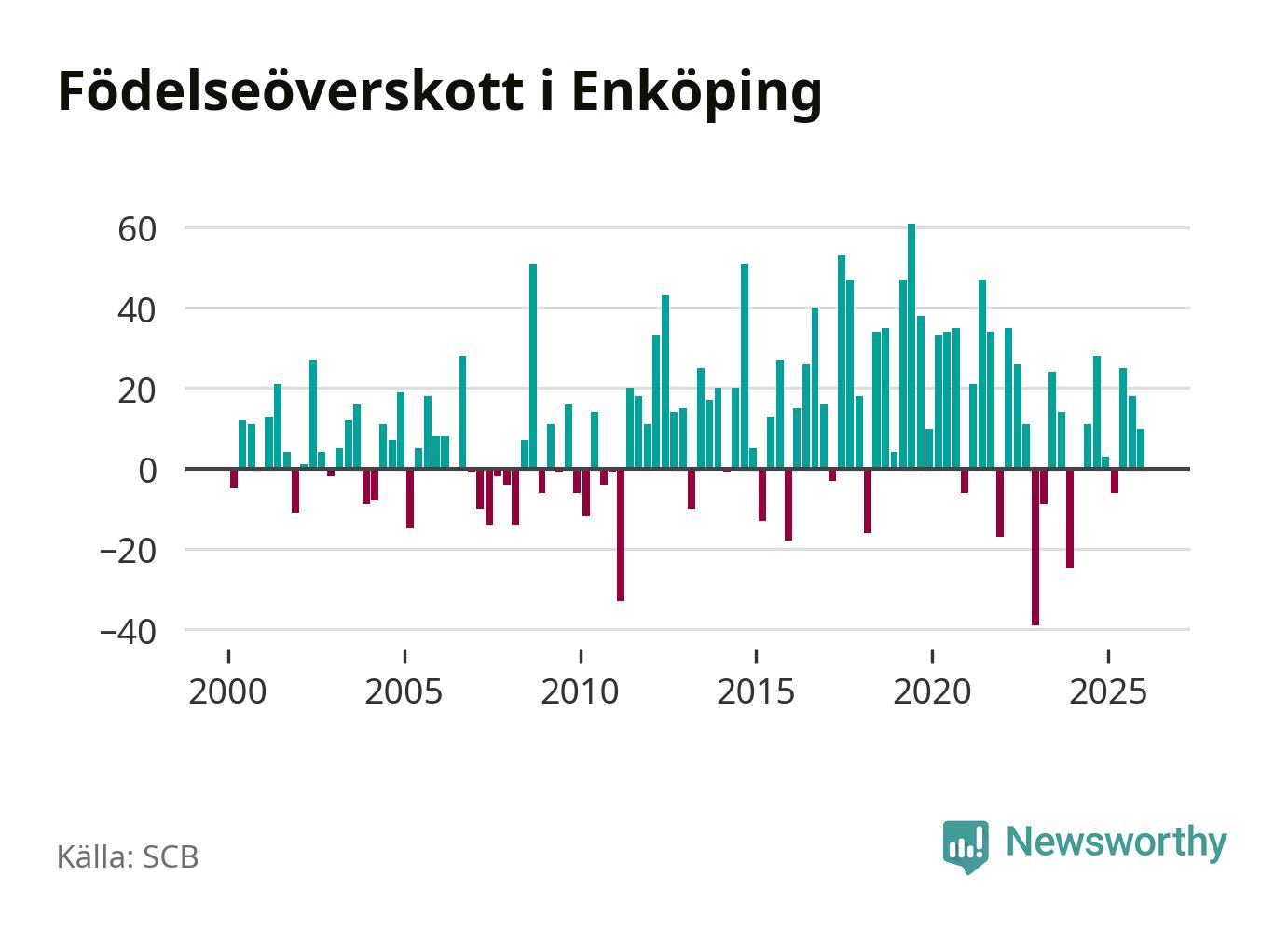 Enligt SCB:s siffror föddes 108 barn i Enköping under det senaste kvartalet. Samtidigt avled 98 personer. Enköping hade alltså ett positivt födelsenetto, vilket kommunen historiskt sett oftast har haft.