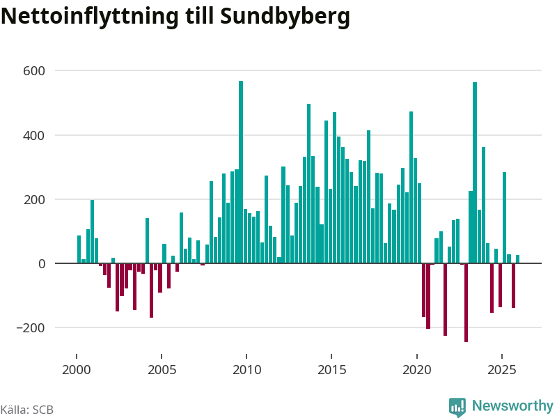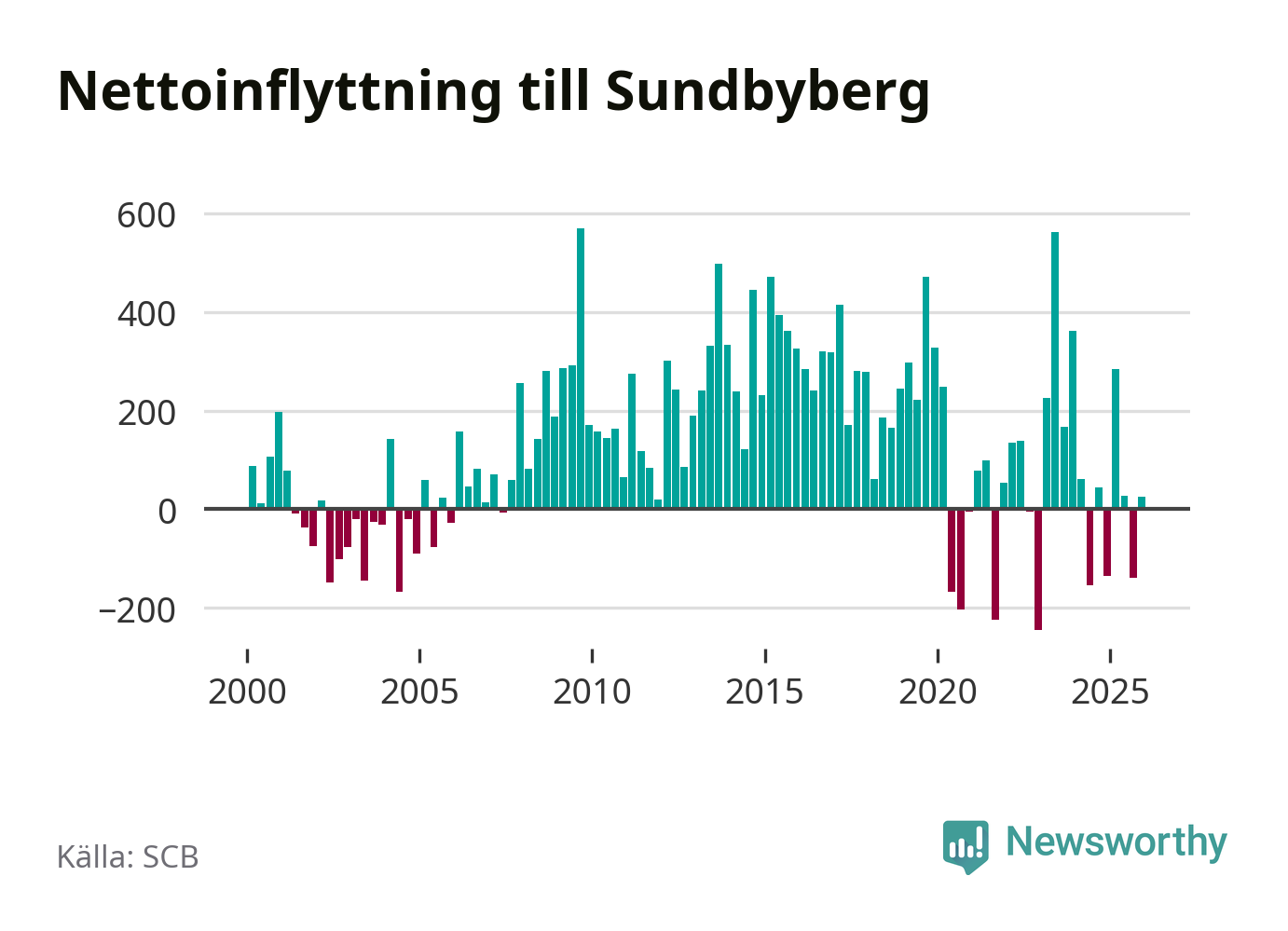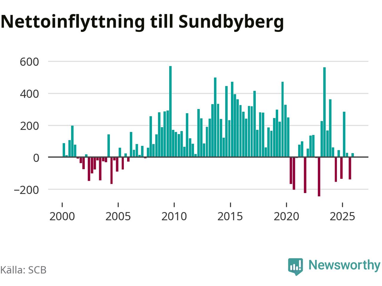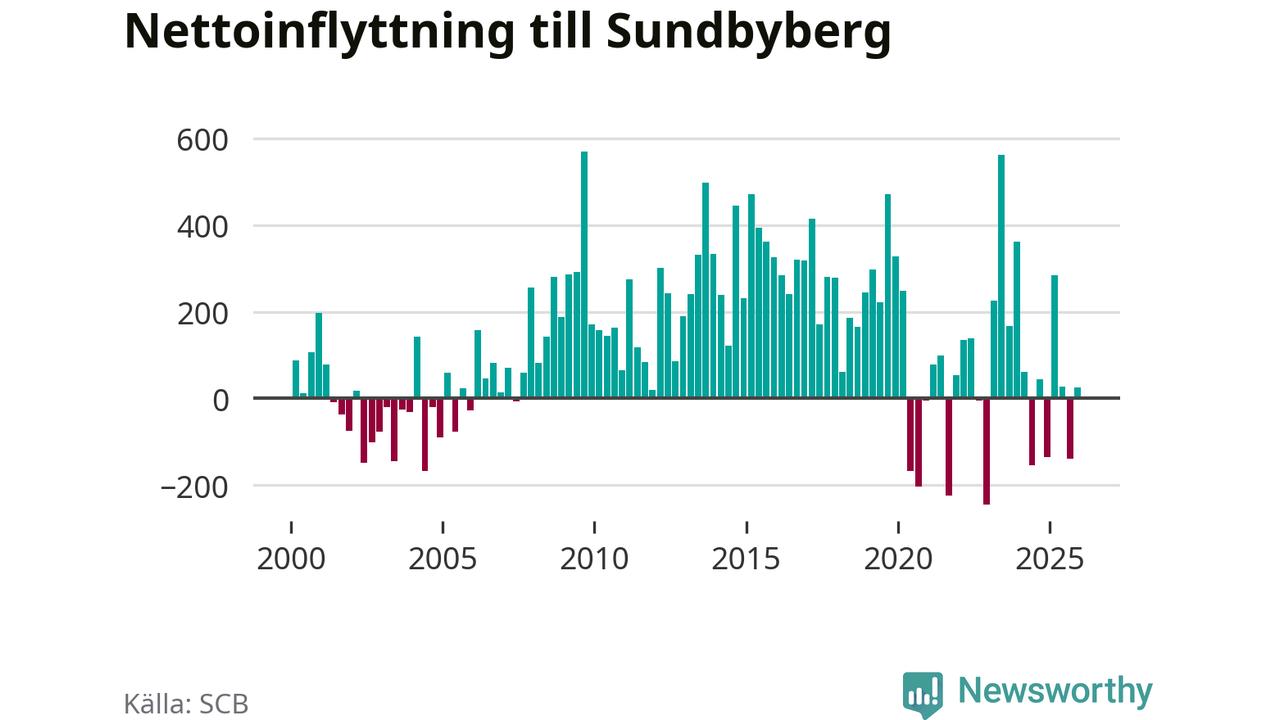 Under fjärde kvartalet 2025 flyttade 1 774 personer till kommunen medan 1 749 personer flyttade därifrån. Sedan seklets början har Sundbyberg oftast haft ett positivt flyttnetto, inklusive det senaste kvartalet.