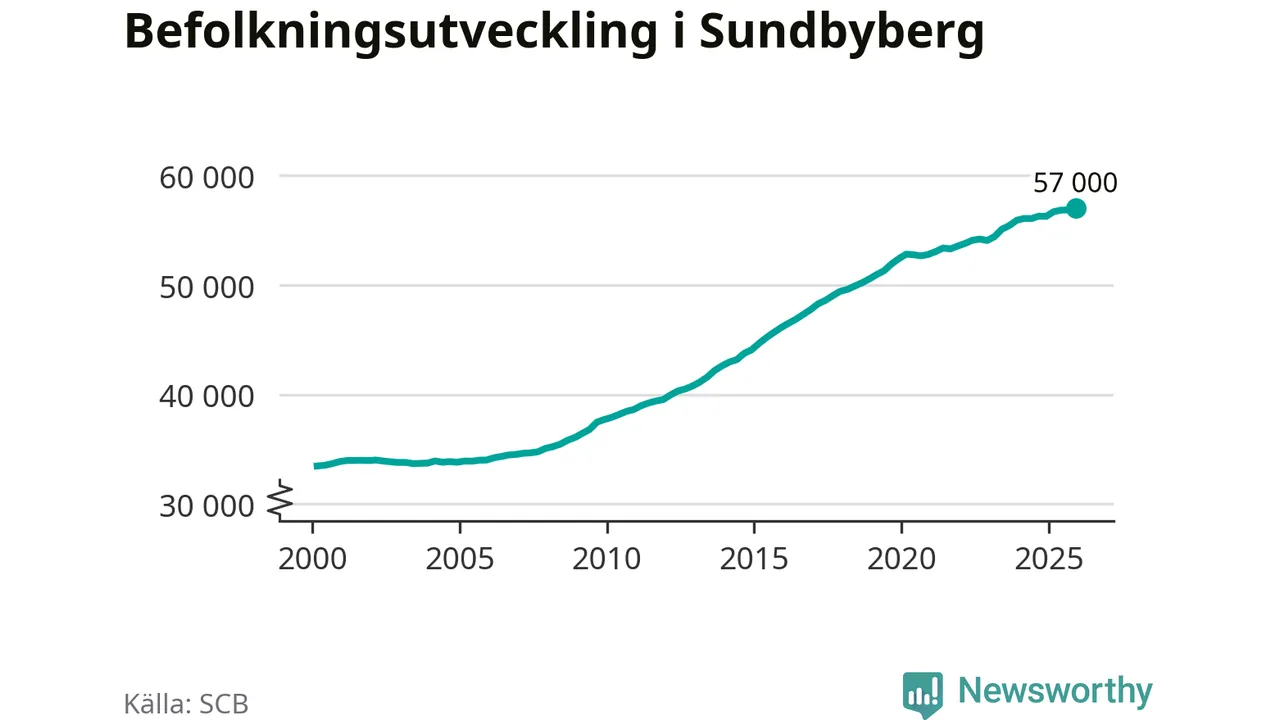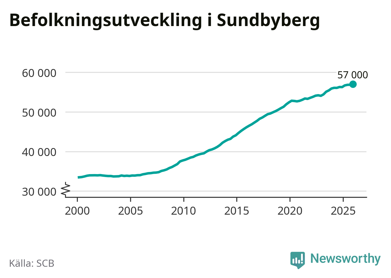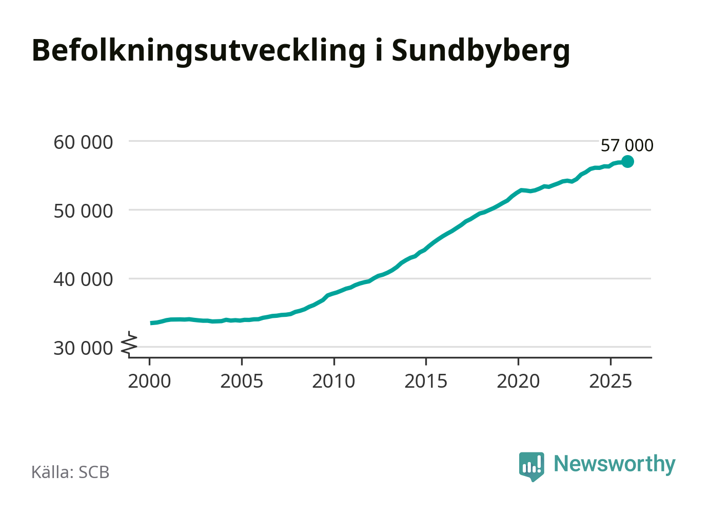 Befolkningen ökade i Sundbybergs kommun under det fjärde kvartalet 2025. Den 31 december bodde enligt SCB:s senaste siffror 57 000 personer i kommunen, vilket är 134 fler än i slutet av tredje kvartalet.