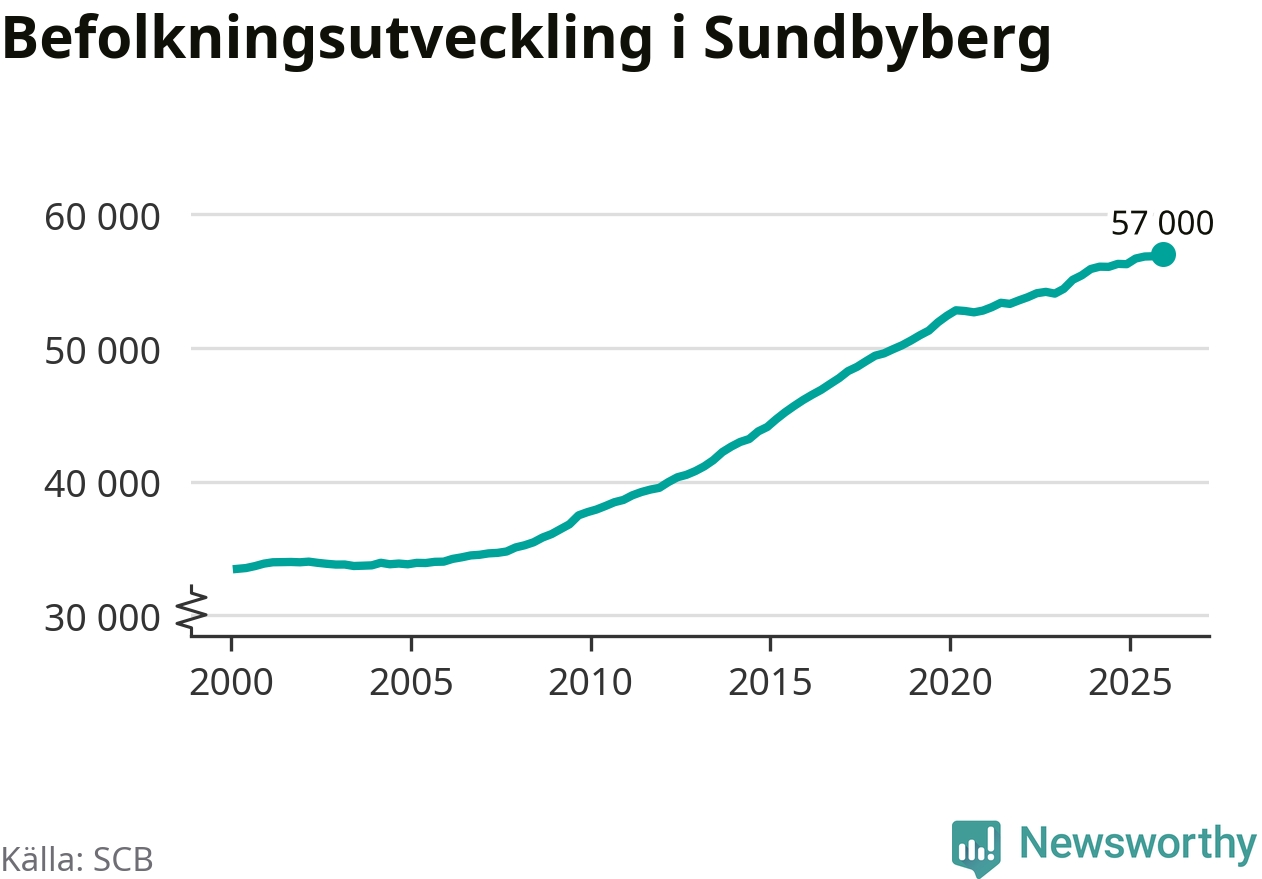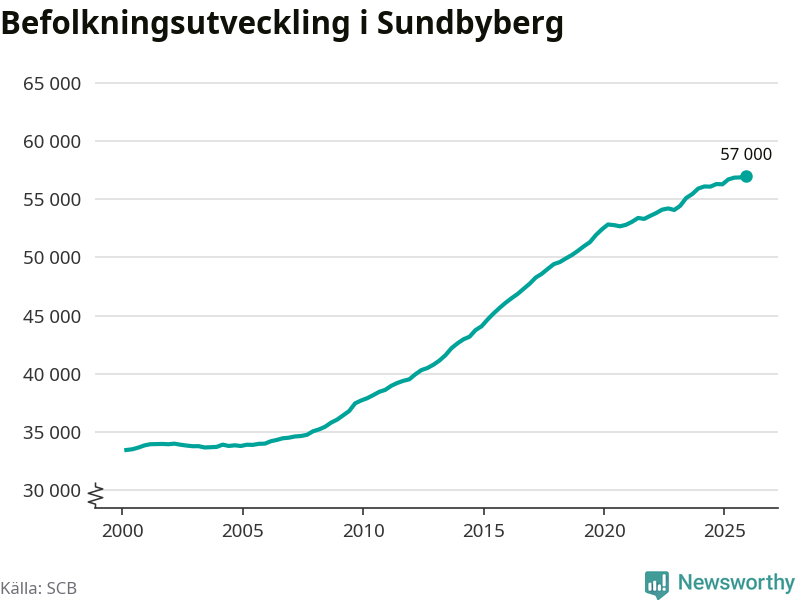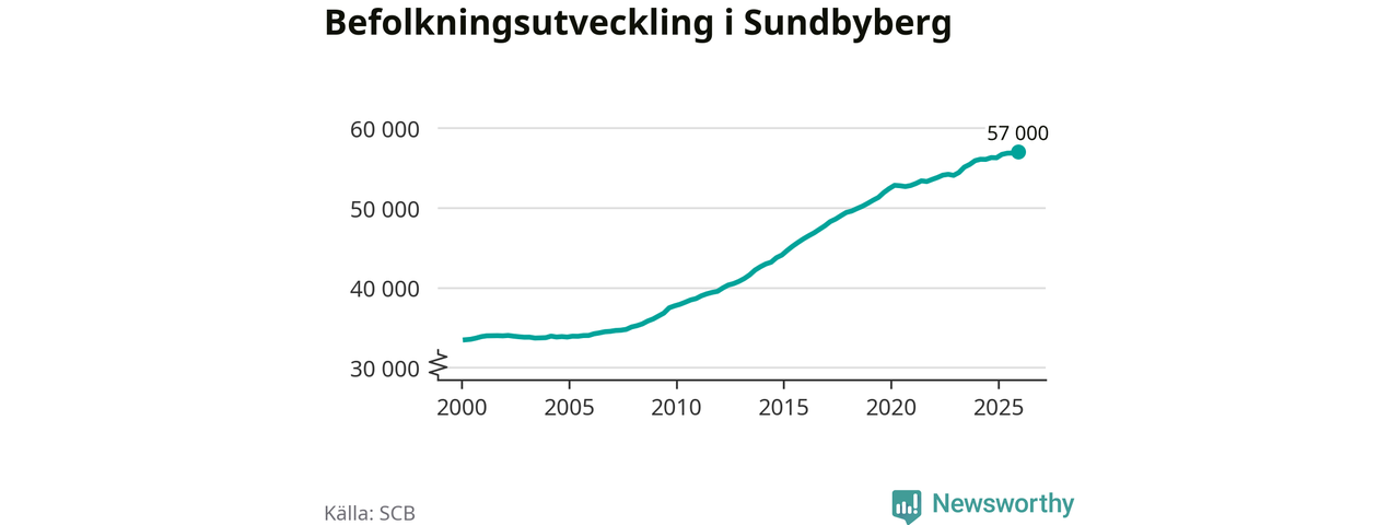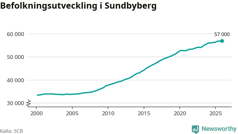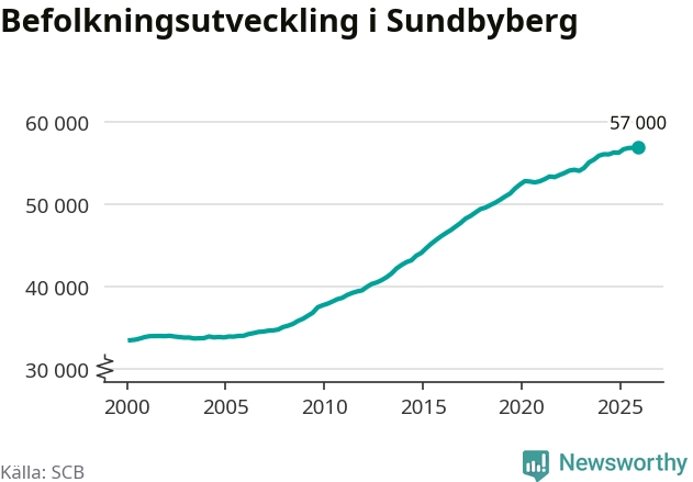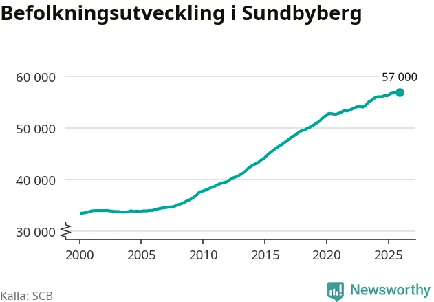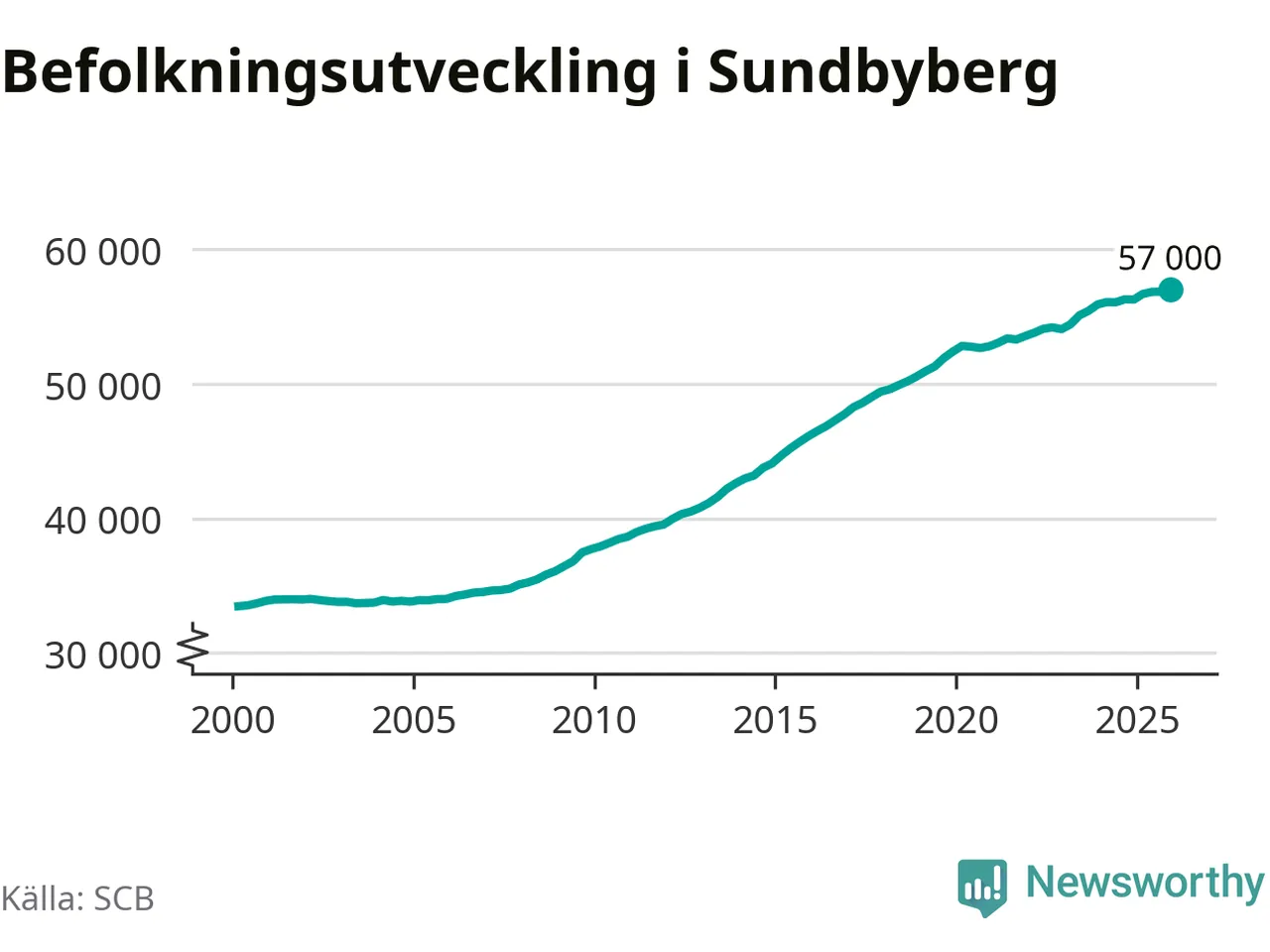 Befolkningen ökade i Sundbybergs kommun under det fjärde kvartalet 2025. Den 31 december bodde enligt SCB:s senaste siffror 57 000 personer i kommunen, vilket är 134 fler än i slutet av tredje kvartalet.