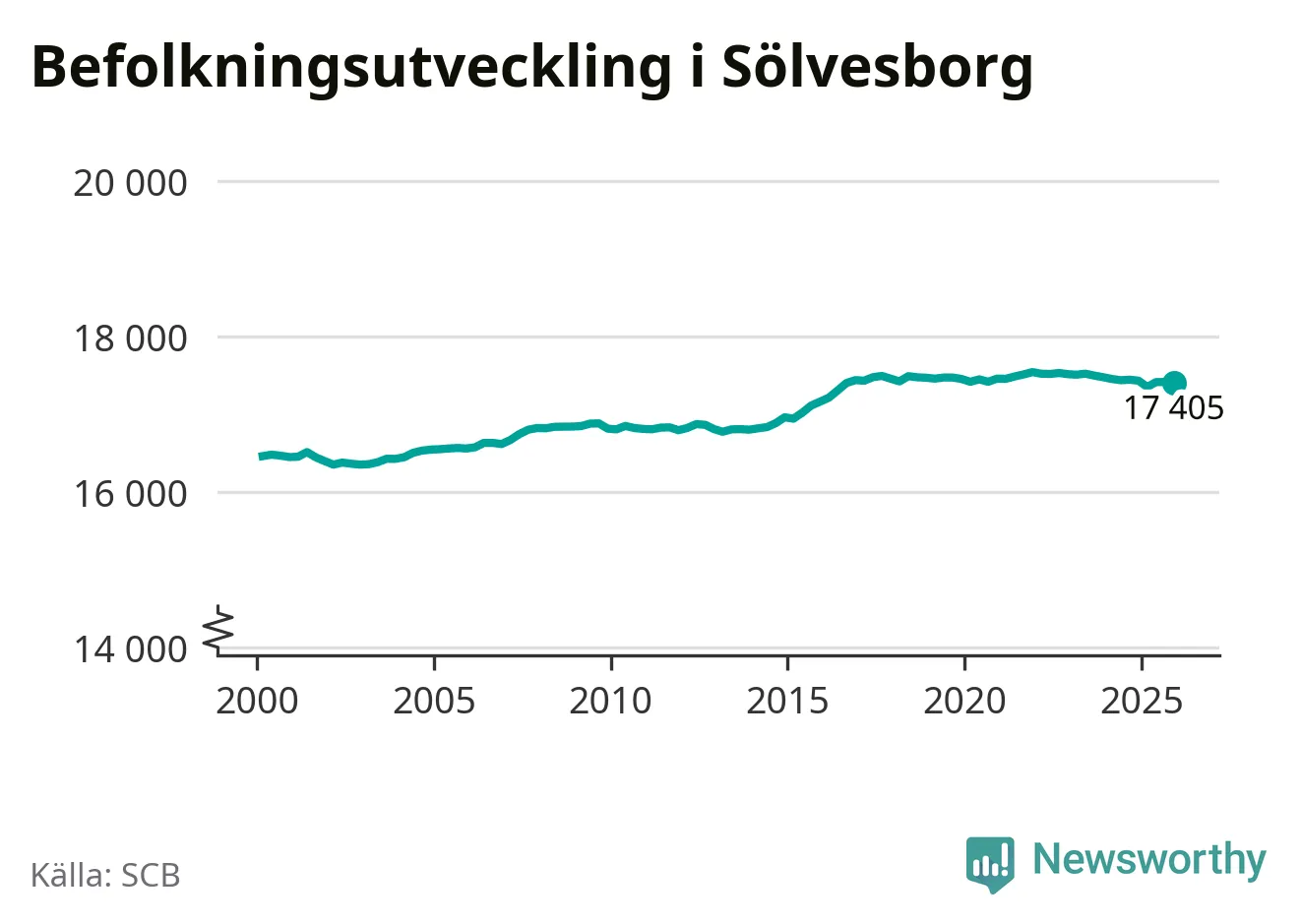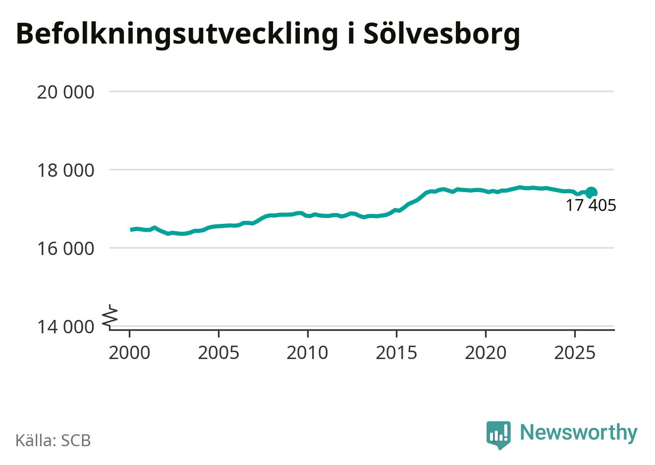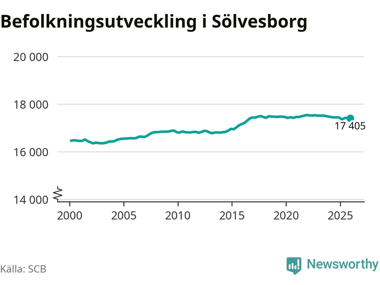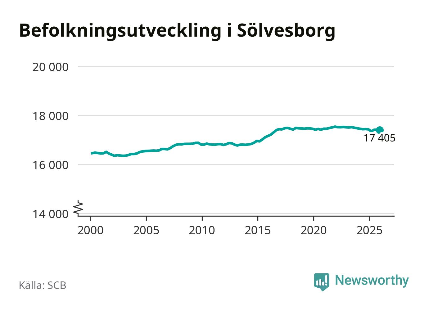 Jämfört med för ett år sedan har befolkningen i Sölvesborg minskat med knappt 30 personer. Sedan millennieskiftet har folkmängden ökat med runt 950 personer, eller sex procent.