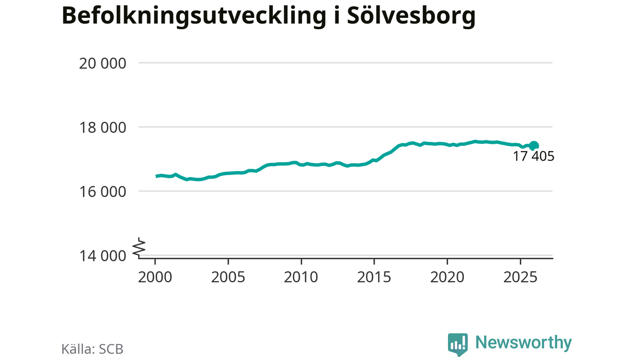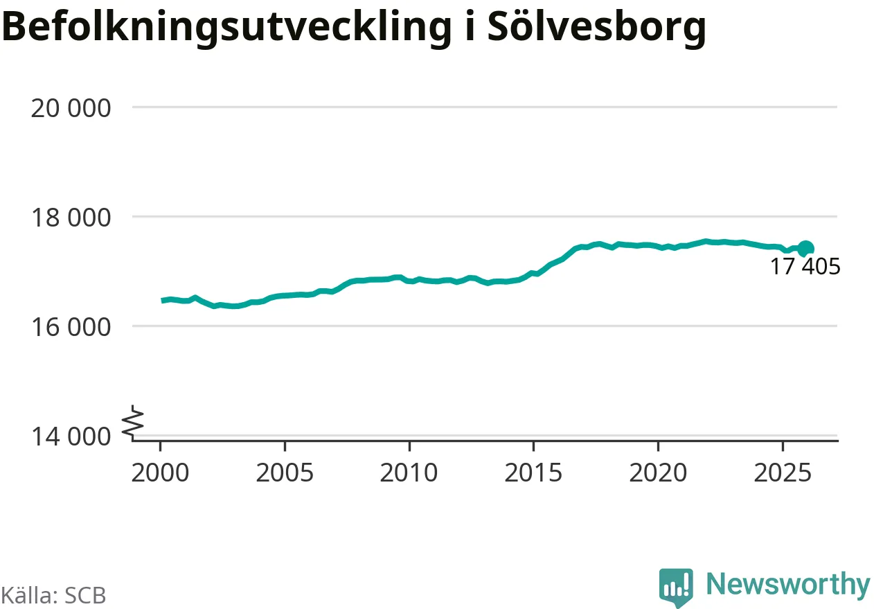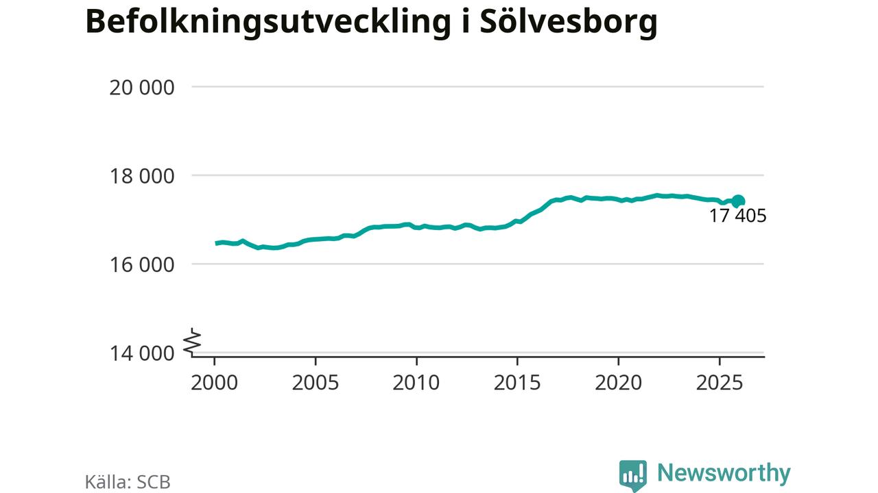 Befolkningen minskade i Sölvesborgs kommun under det fjärde kvartalet 2025. Den 31 december bodde enligt SCB:s senaste siffror 17 405 personer i kommunen, vilket är åtta färre än i slutet av tredje kvartalet.