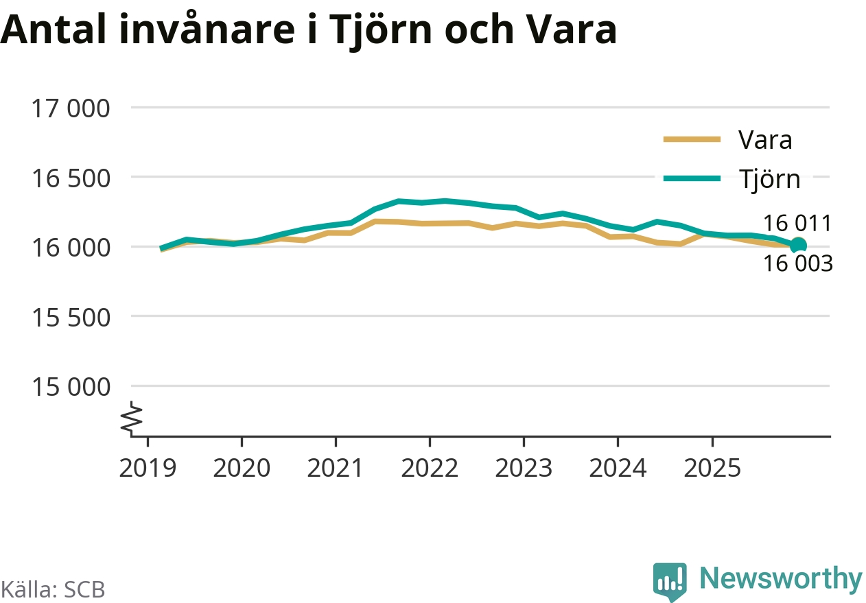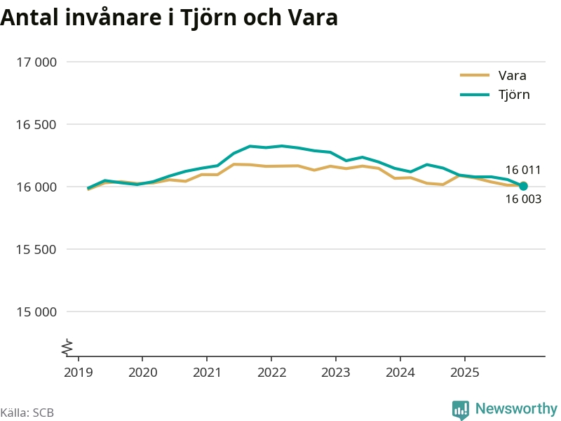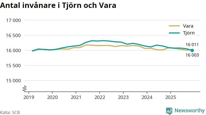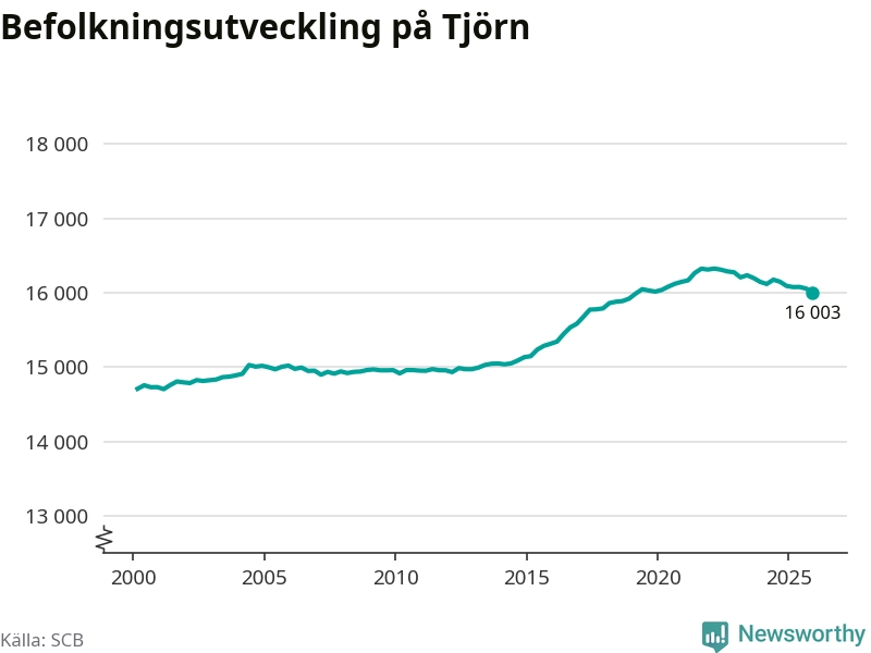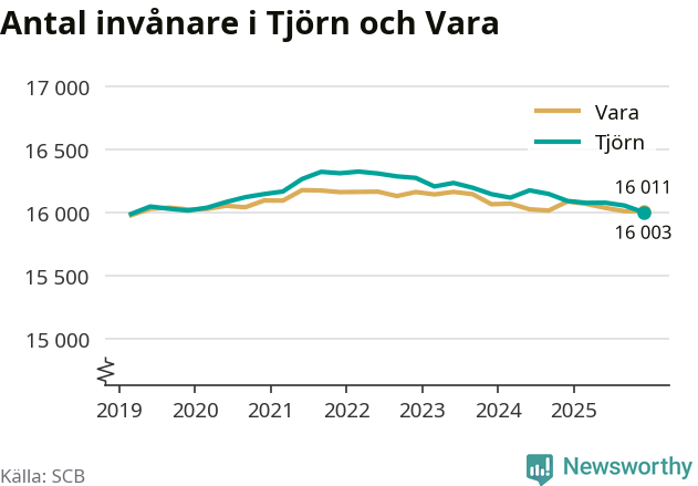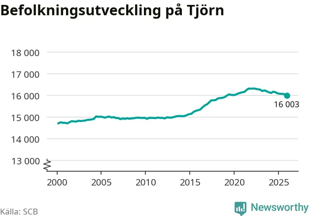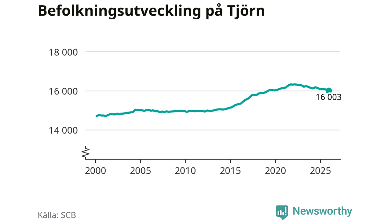 Befolkningen minskade i Tjörns kommun under det fjärde kvartalet 2025. Den 31 december bodde enligt SCB:s senaste siffror 16 003 personer i kommunen, vilket är 53 färre än i slutet av tredje kvartalet.