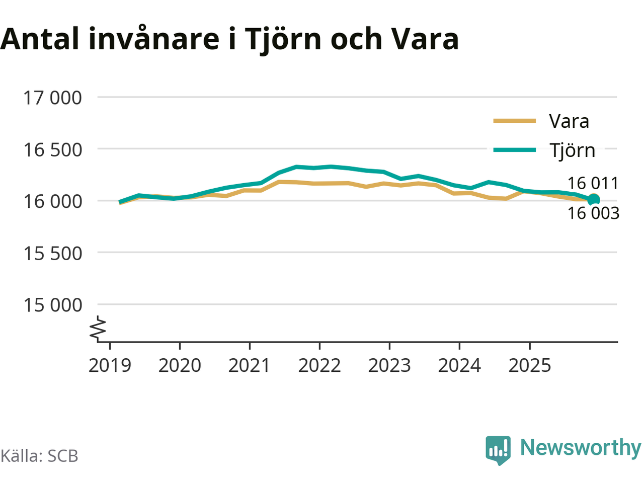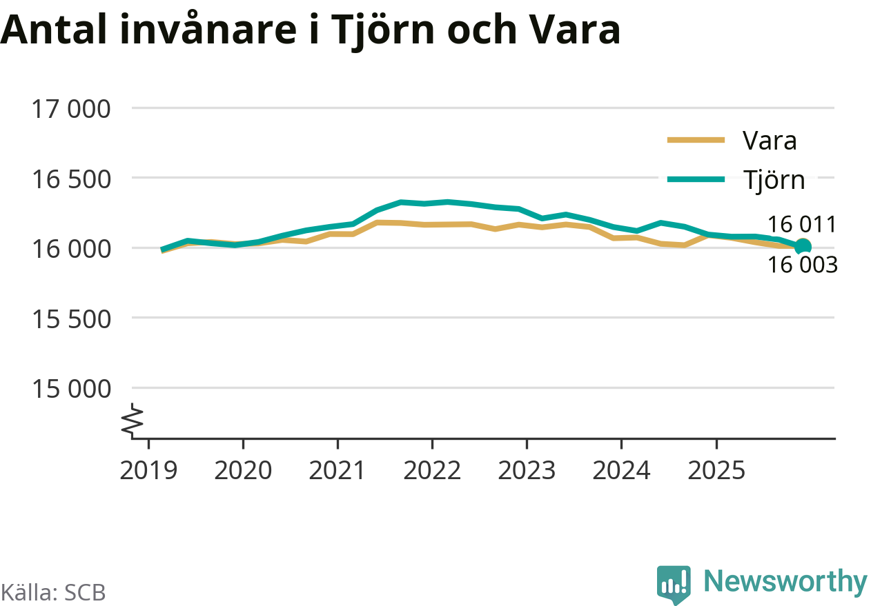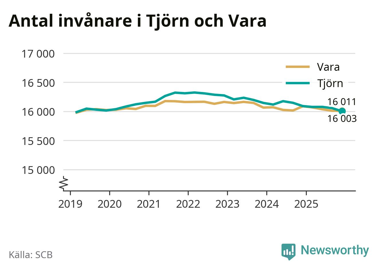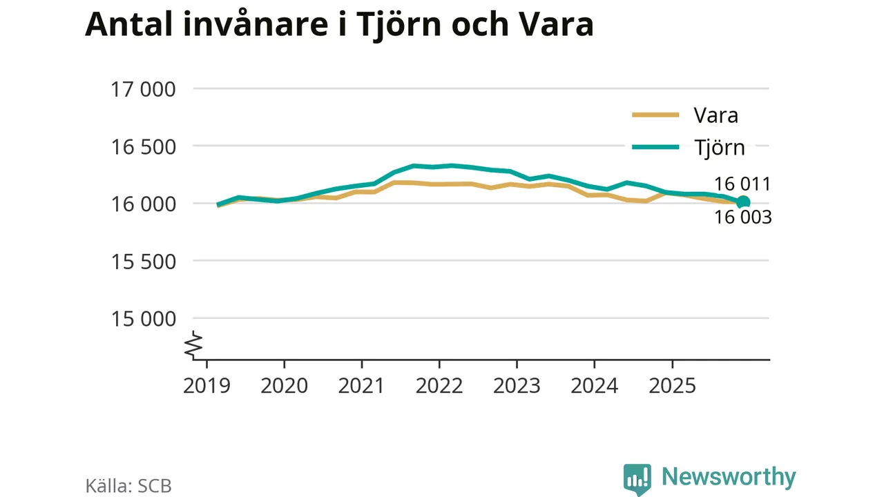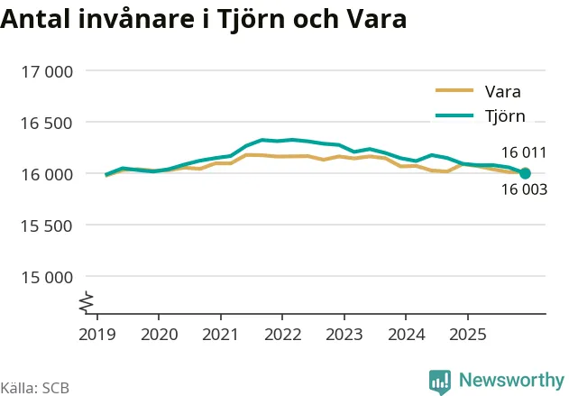 Befolkningen på Tjörn minskade under fjärde kvartalet 2025. Även i Vara kommun var förändringen liten – men de båda kommunerna är nu i princip jämnstöra, enligt SCB:s senaste befolkningsstatistik.