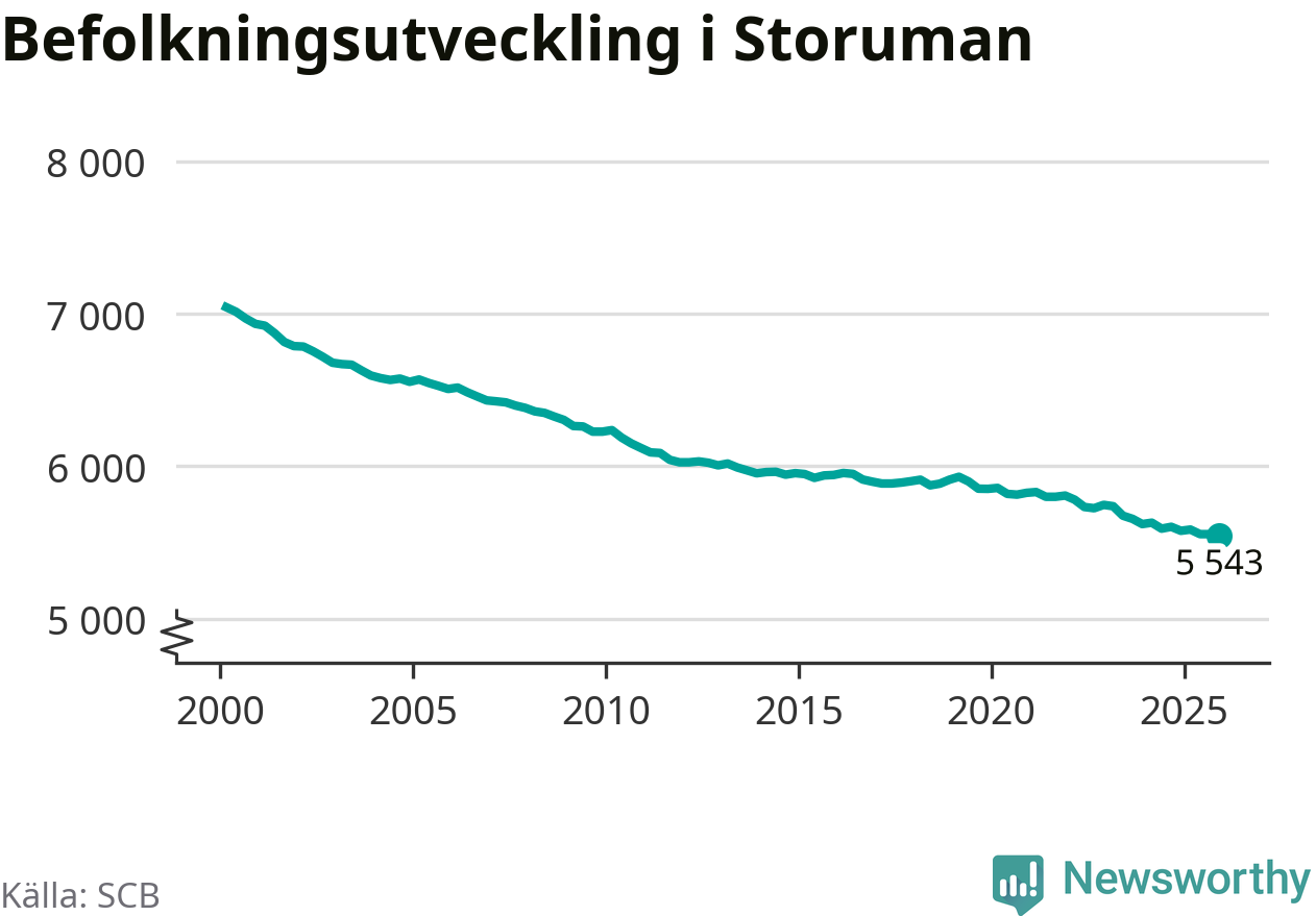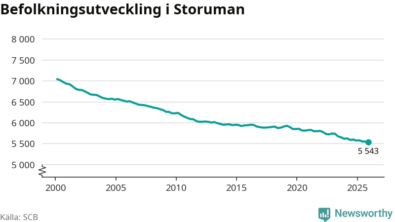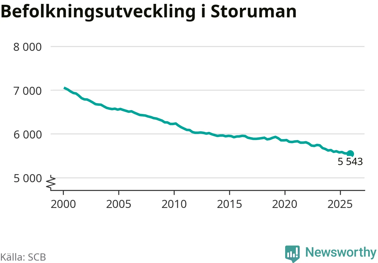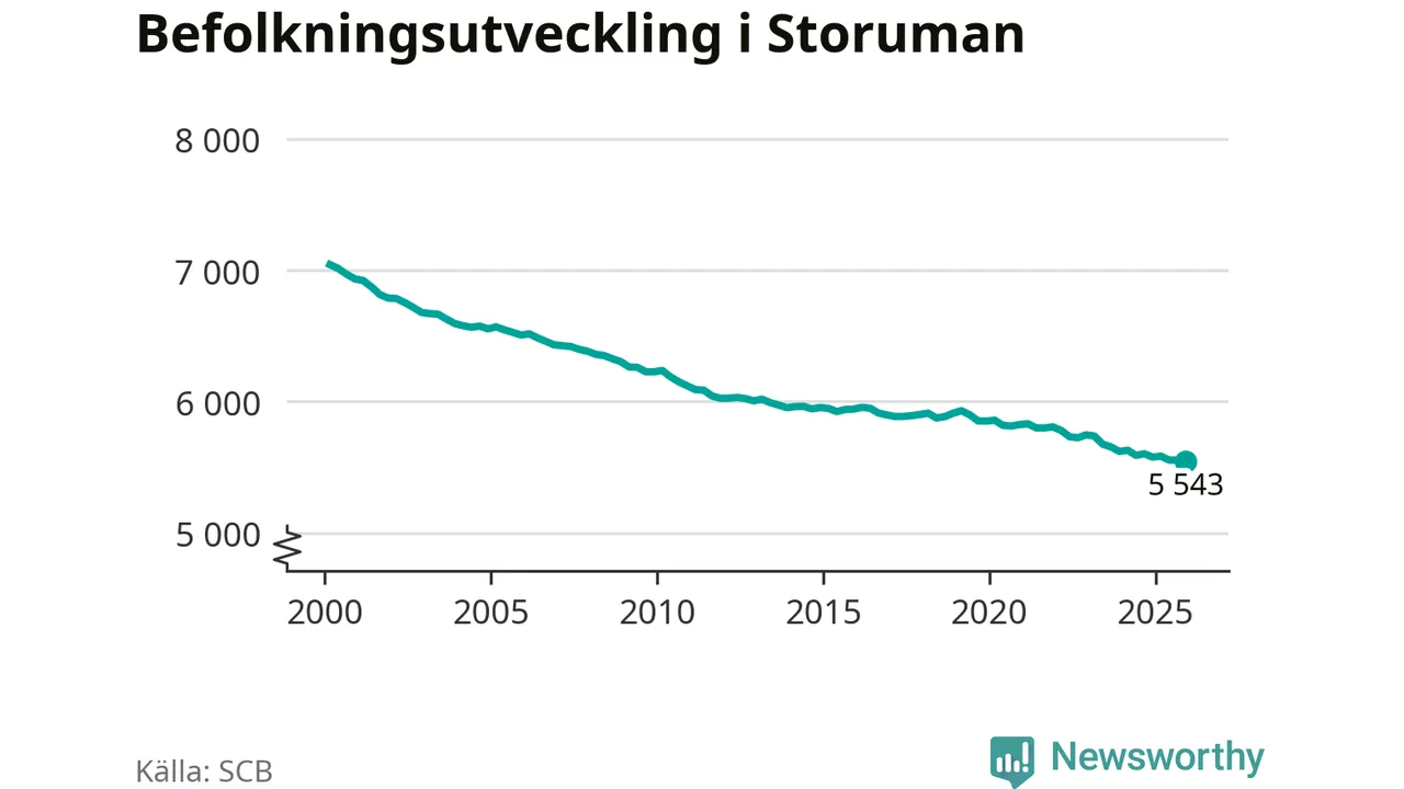 Befolkningen minskade i Storumans kommun under det fjärde kvartalet 2025. Den 31 december bodde enligt SCB:s senaste siffror 5 543 personer i kommunen, vilket är tolv färre än i slutet av tredje kvartalet.