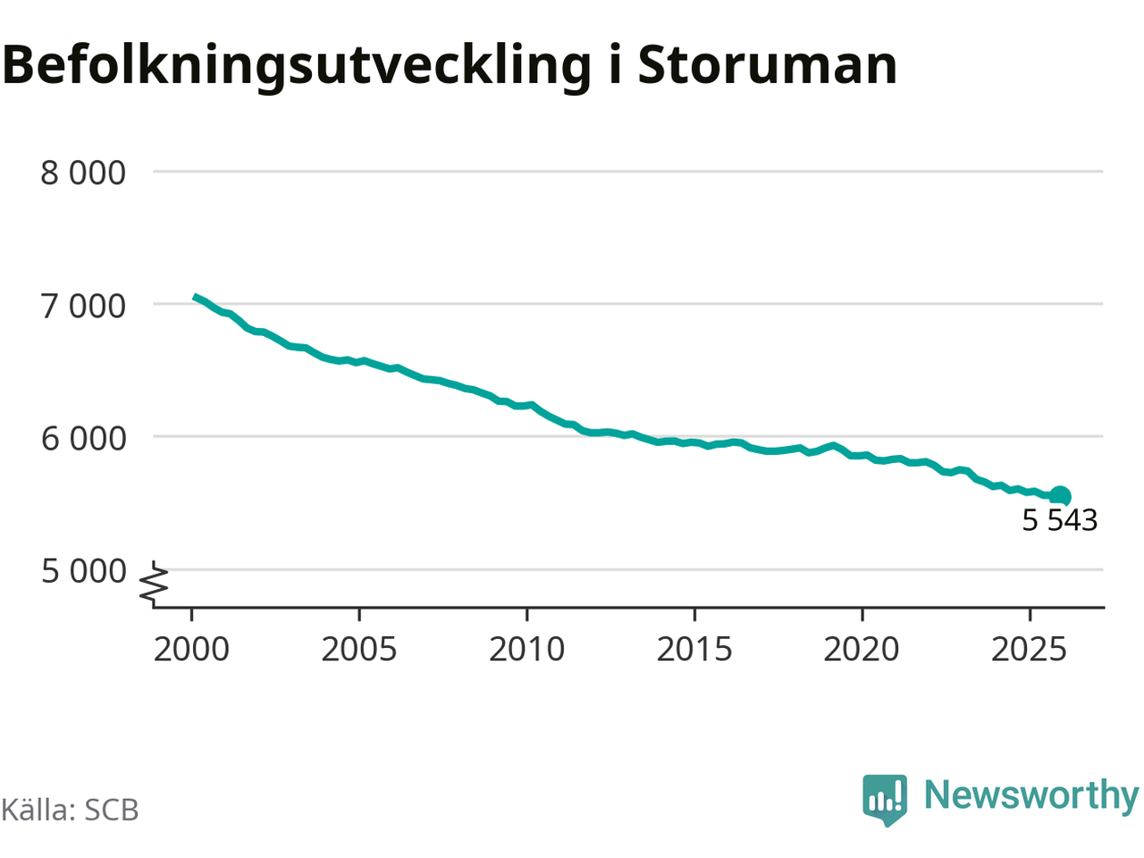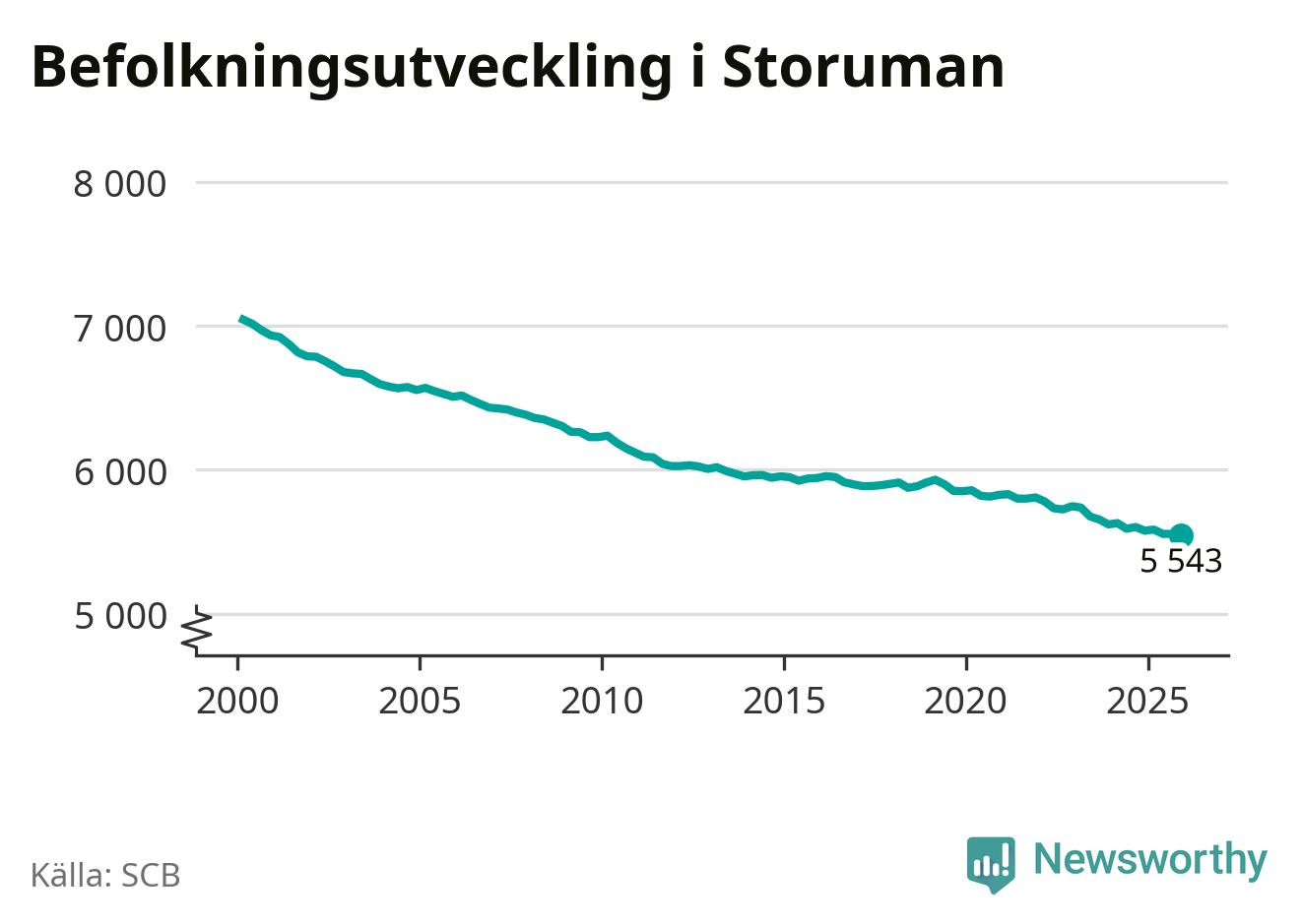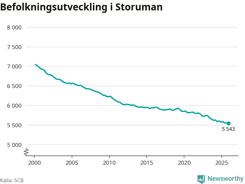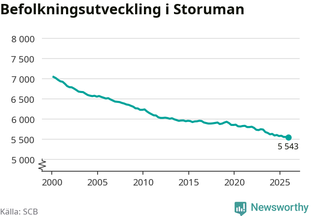 Befolkningen minskade i Storumans kommun under det fjärde kvartalet 2025. Den 31 december bodde enligt SCB:s senaste siffror 5 543 personer i kommunen, vilket är tolv färre än i slutet av tredje kvartalet.
