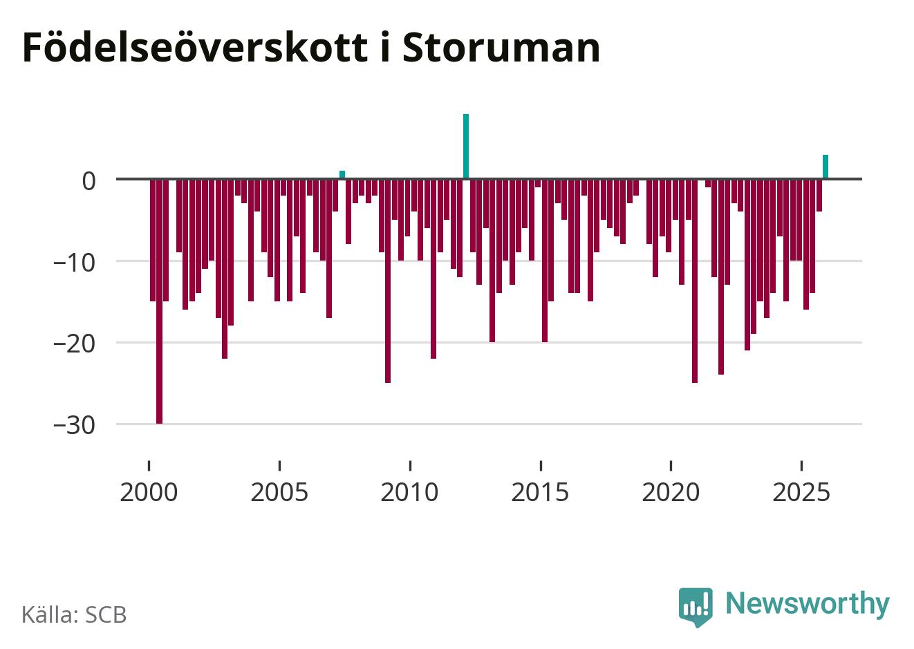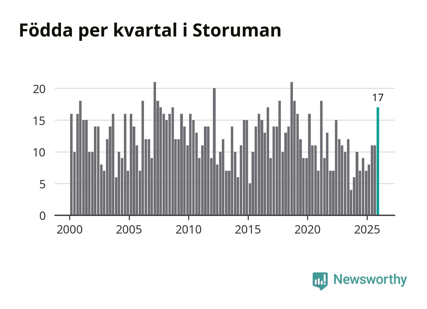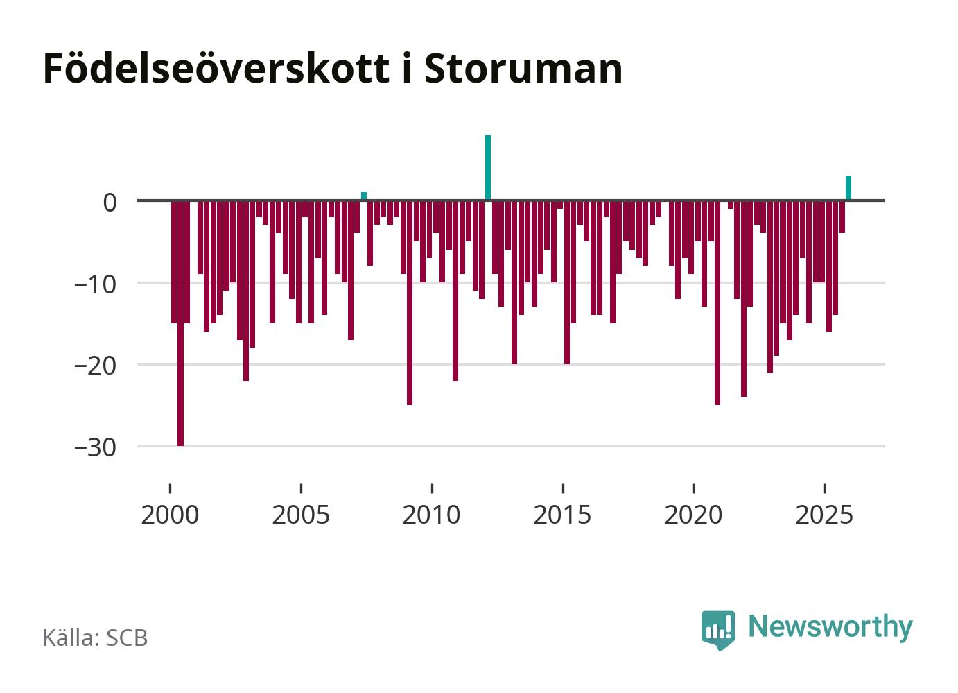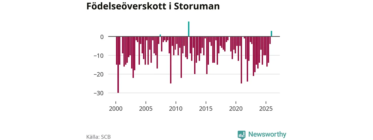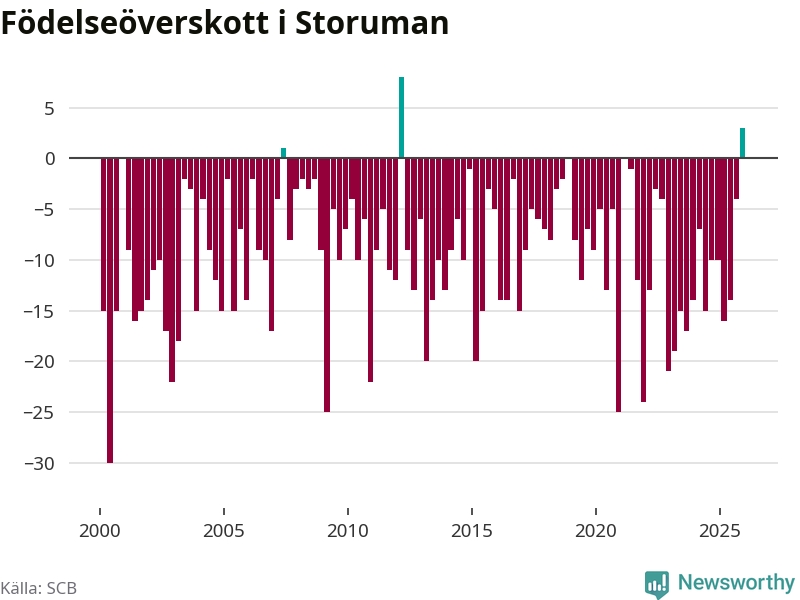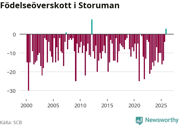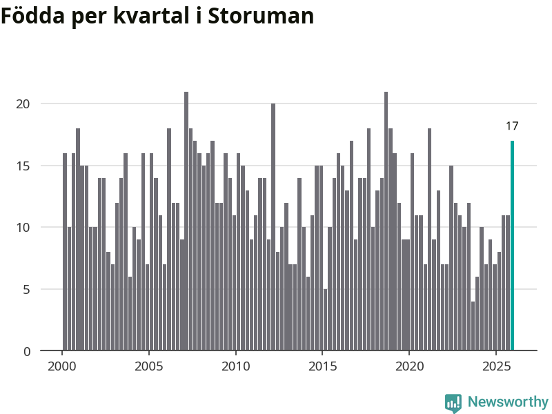 Enligt SCB:s siffror föddes 17 barn i Storuman under det senaste kvartalet, vilket är en relativt hög siffra historiskt sett. Samtidigt avled relativt få – 14 personer. Skillnaden mellan antal födda och döda är så liten att det inte går att säga om det beror på något annat än SCB:s röjandeskydd. Kommunen har nästan alltid haft negativt födelsenetto tidigare.