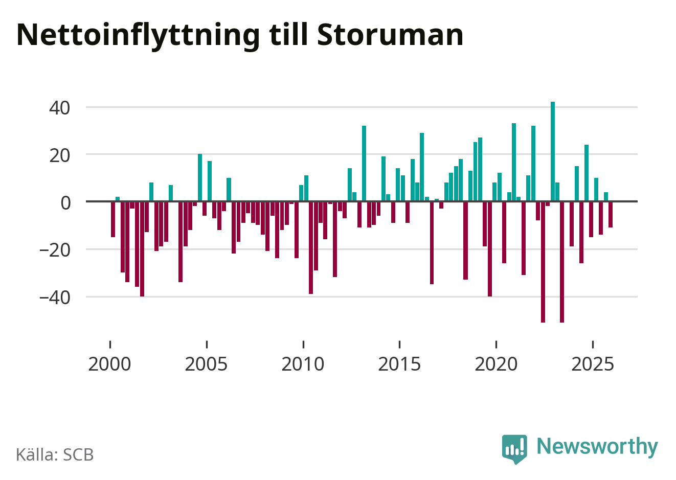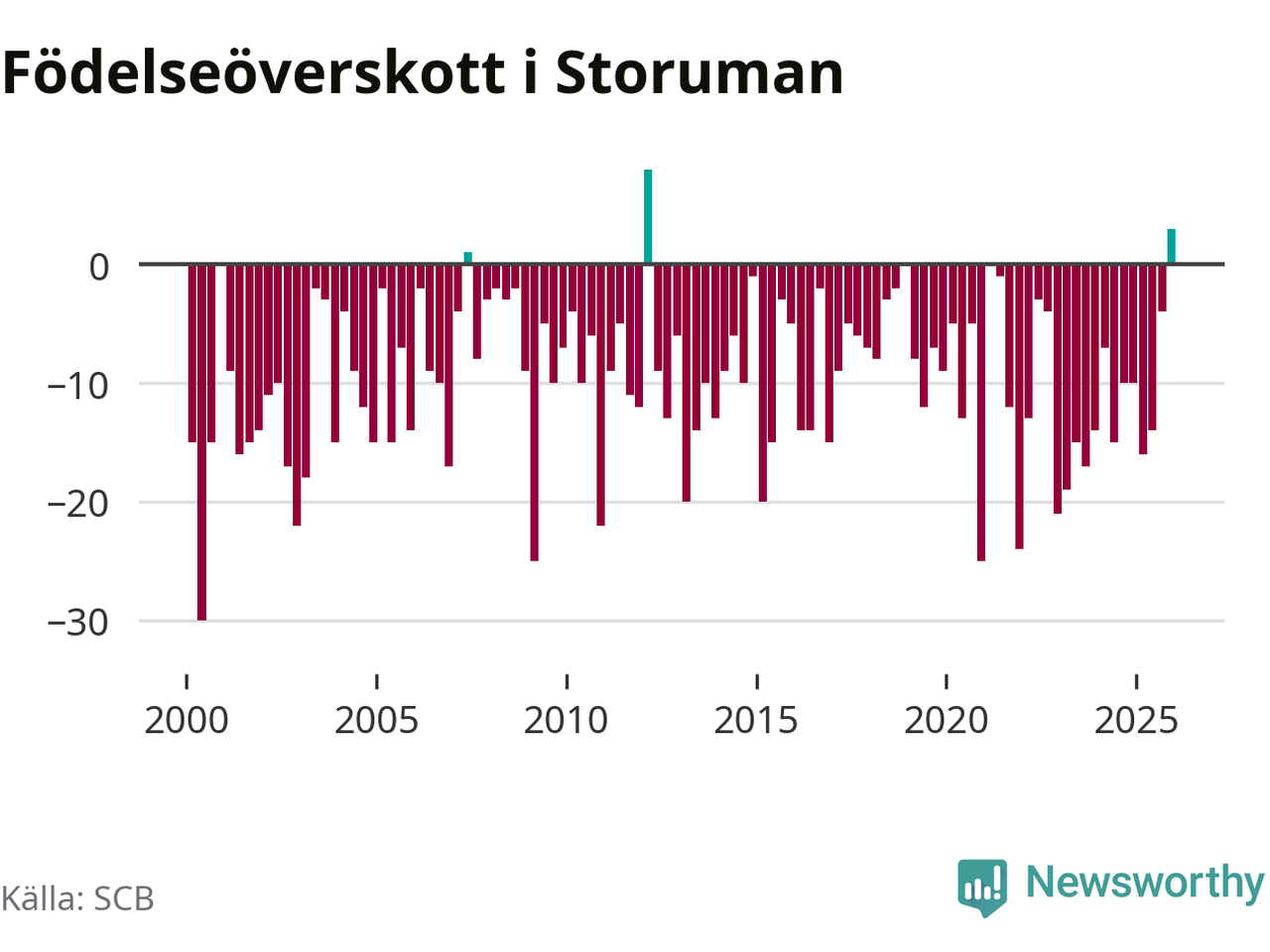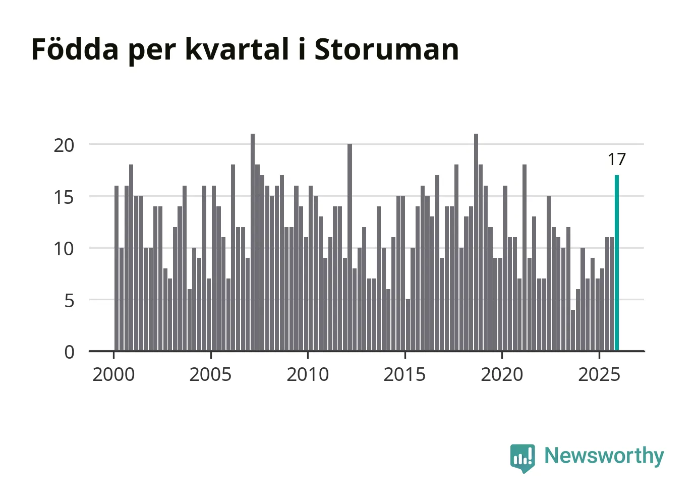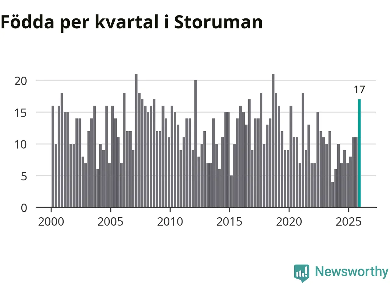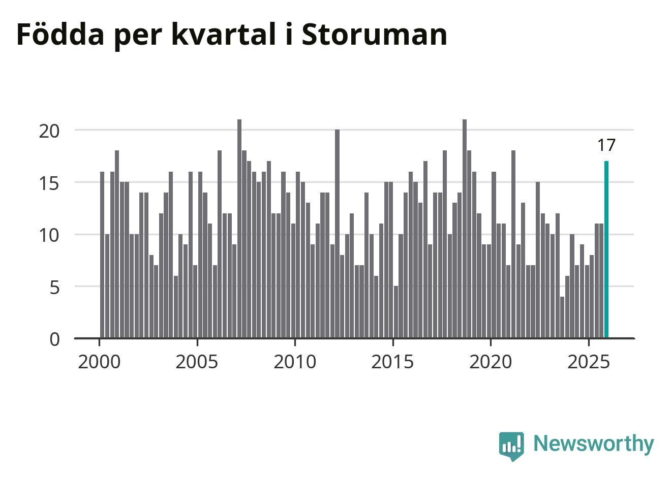 Enligt SCB:s siffror föddes 17 barn i Storuman under det senaste kvartalet, vilket är en relativt hög siffra historiskt sett. Samtidigt avled relativt få – 14 personer. Skillnaden mellan antal födda och döda är så liten att det inte går att säga om det beror på något annat än SCB:s röjandeskydd. Kommunen har nästan alltid haft negativt födelsenetto tidigare.