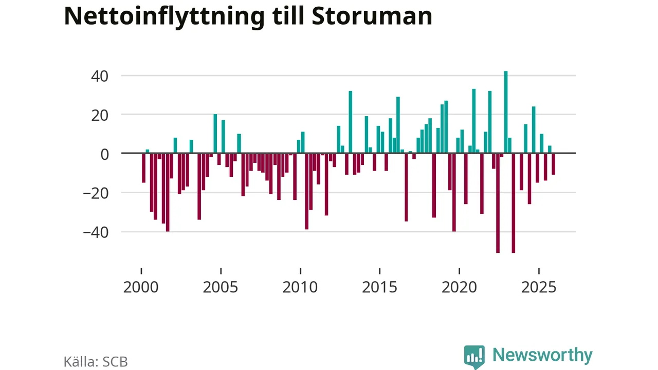 Fler flyttade från än till Storumans kommun. Befolkningen minskade under det fjärde kvartalet 2025. Det visar nya siffror från SCB.