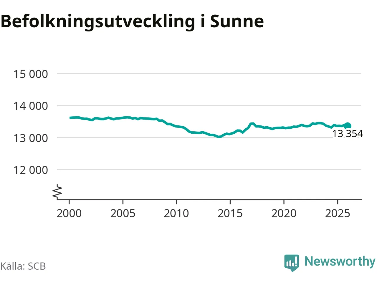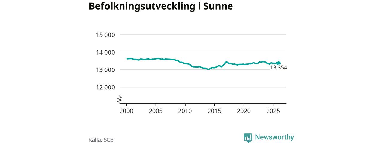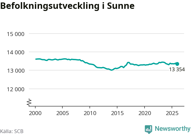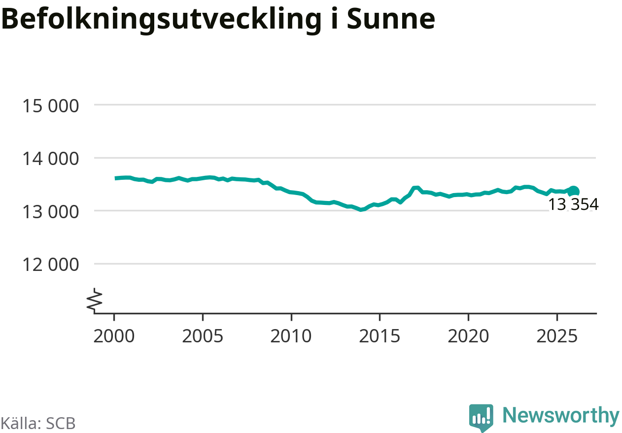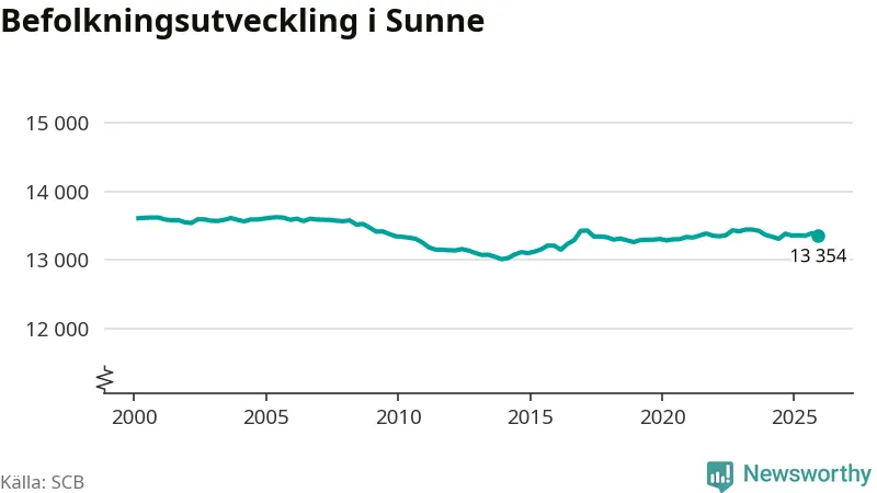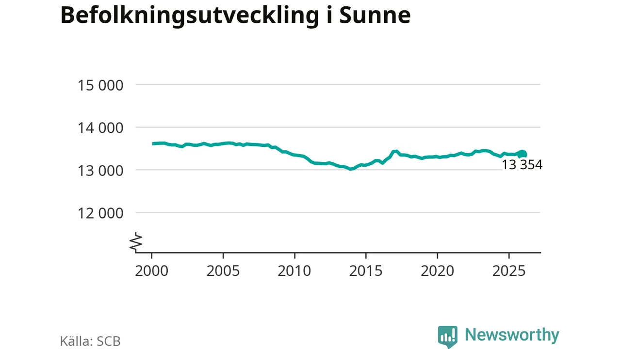 Befolkningen minskade i Sunne kommun under det fjärde kvartalet 2025. Den 31 december bodde enligt SCB:s senaste siffror 13 354 personer i kommunen, vilket är 36 färre än i slutet av tredje kvartalet.