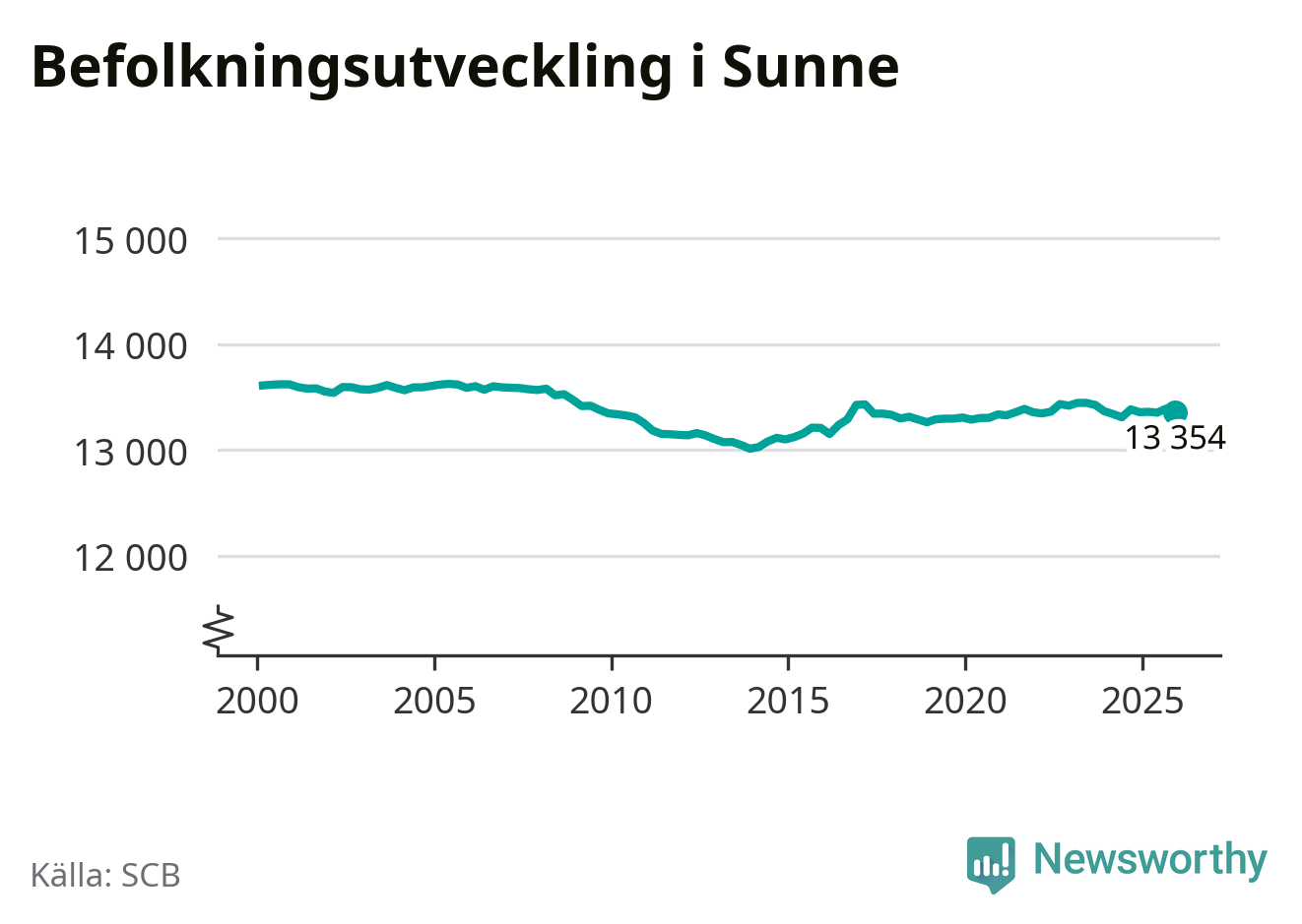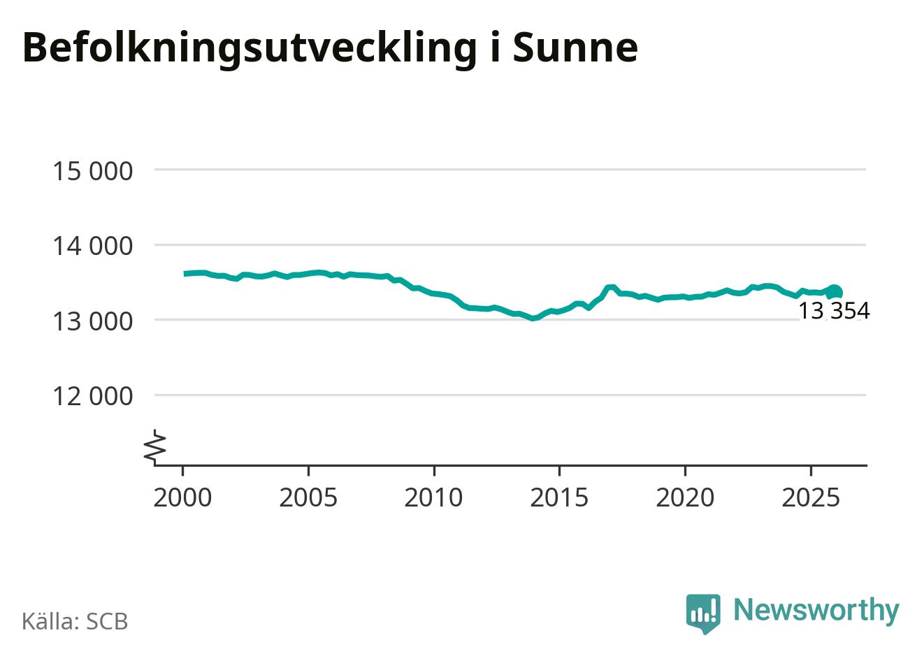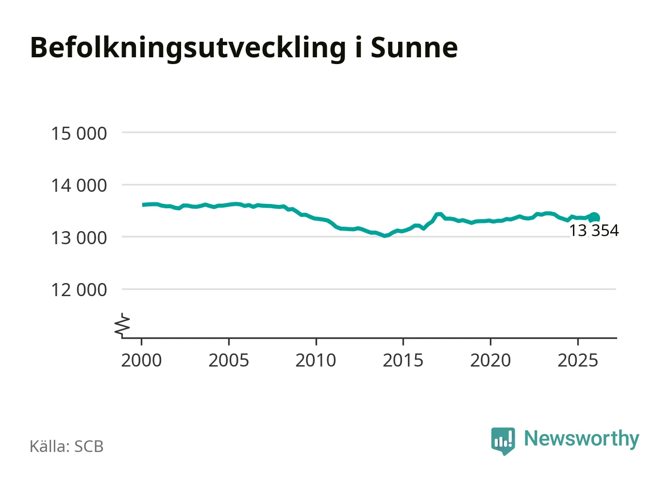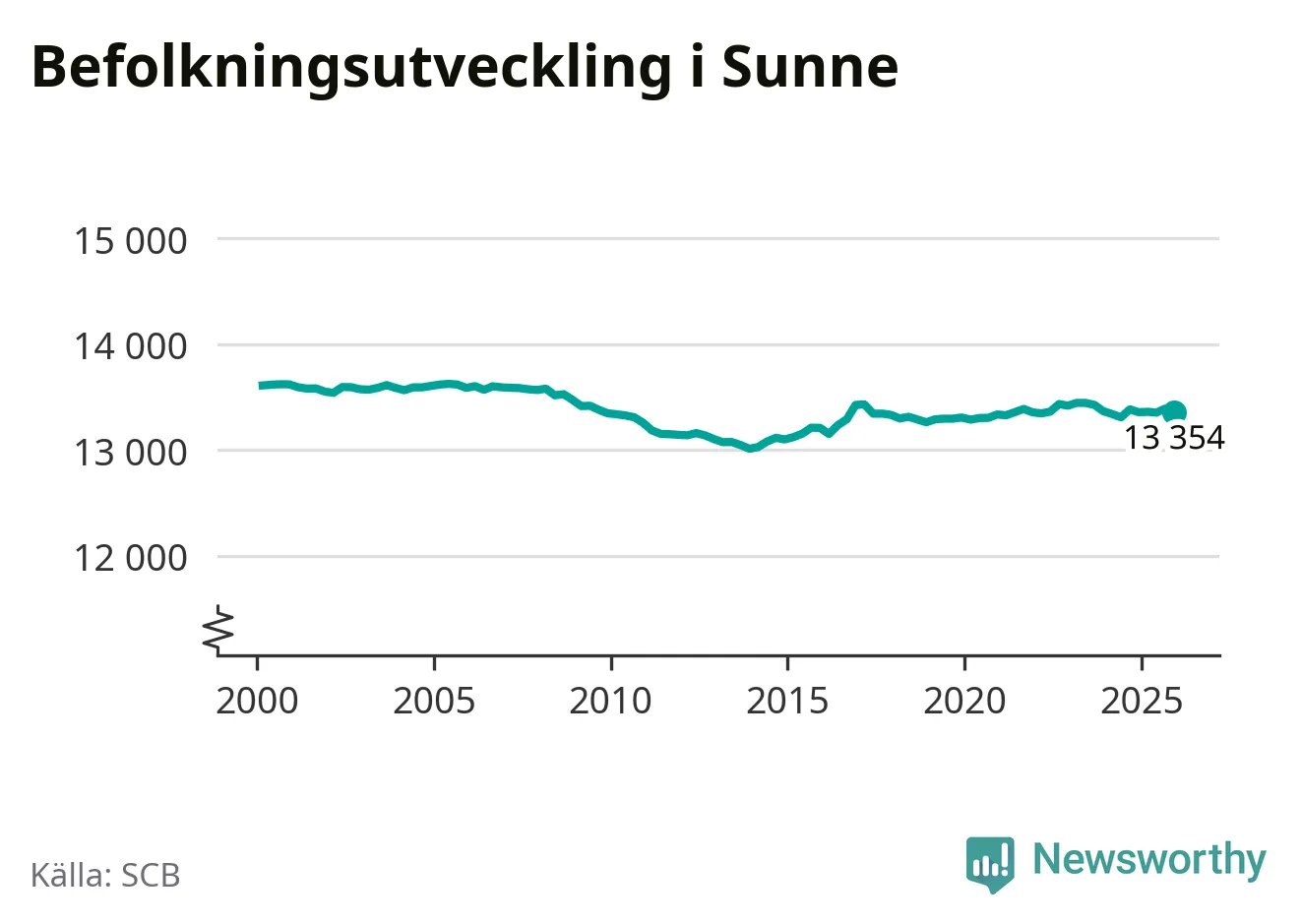 Befolkningen minskade i Sunne kommun under det fjärde kvartalet 2025. Den 31 december bodde enligt SCB:s senaste siffror 13 354 personer i kommunen, vilket är 36 färre än i slutet av tredje kvartalet.