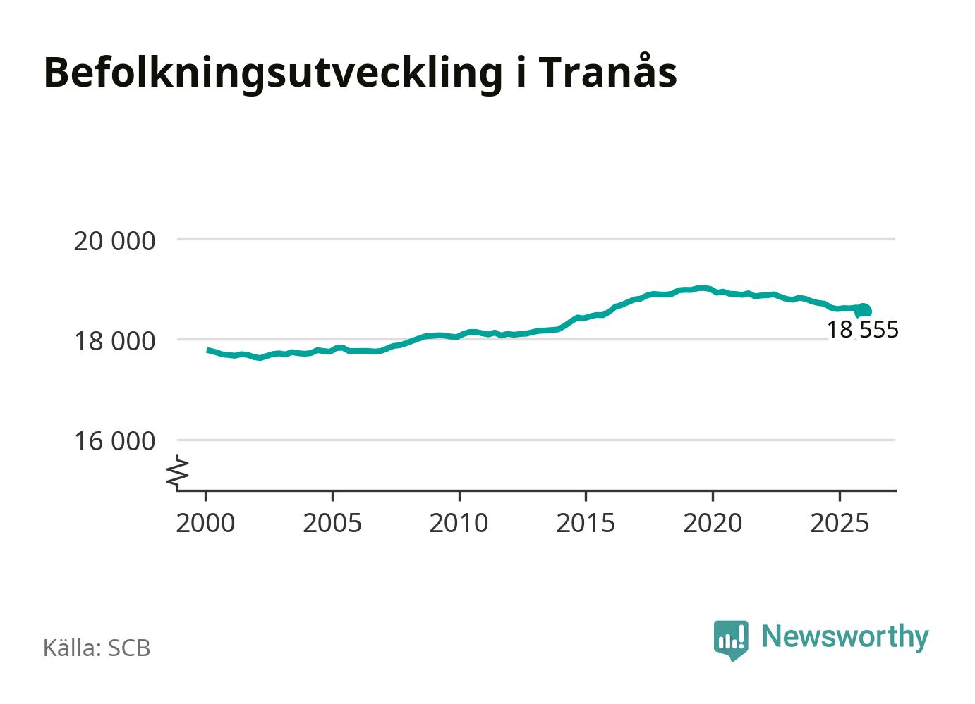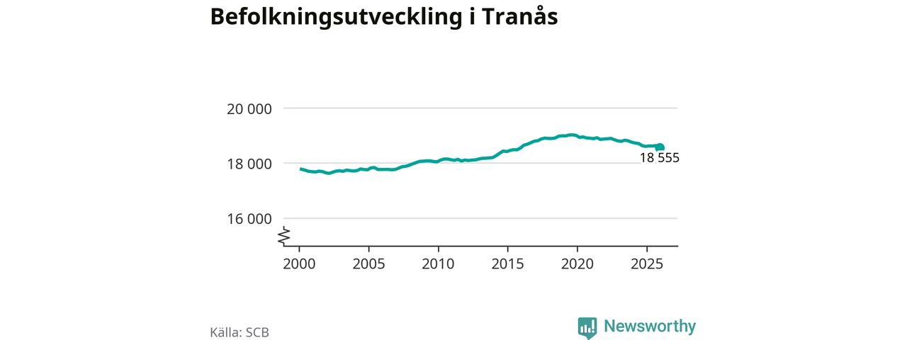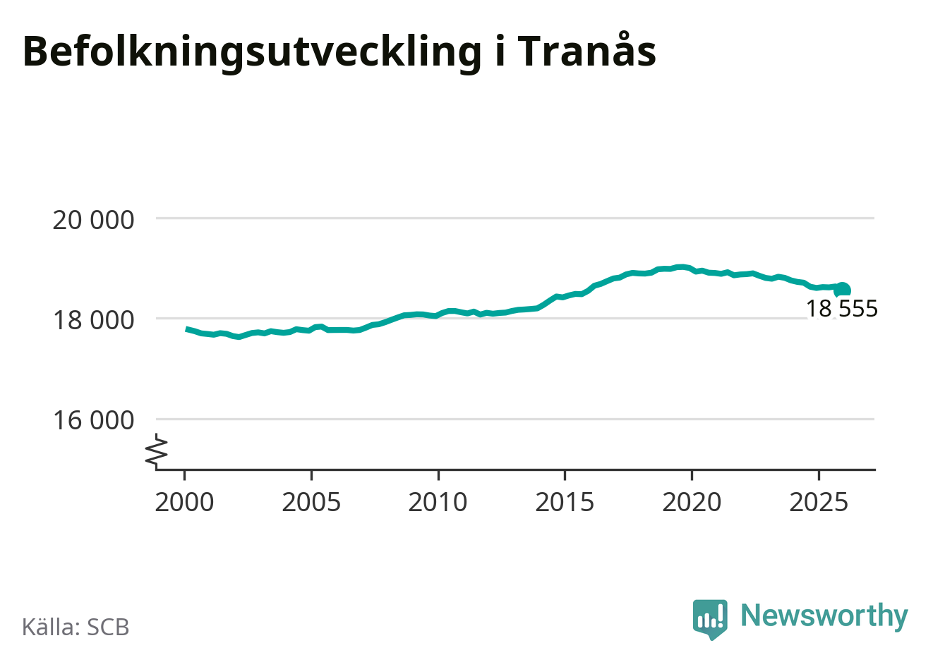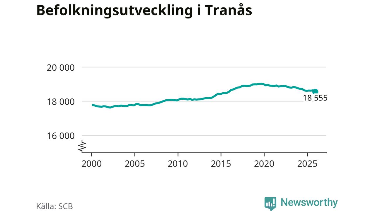 Befolkningen minskade i Tranås kommun under det fjärde kvartalet 2025. Den 31 december bodde enligt SCB:s senaste siffror 18 555 personer i kommunen, vilket är 79 färre än i slutet av tredje kvartalet. Minskningen är den näst största i Jönköpings län procentuellt sett.