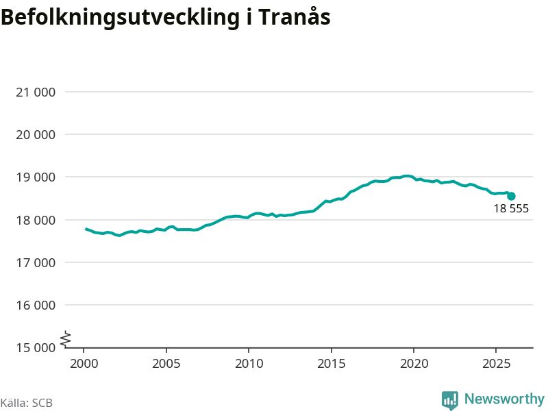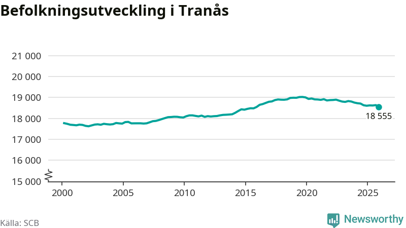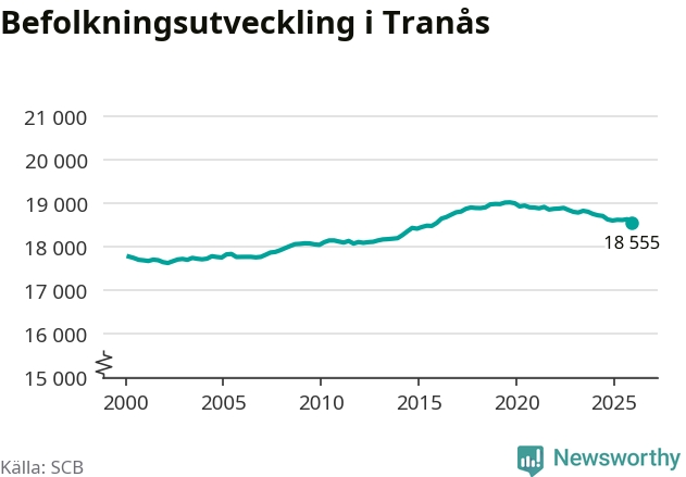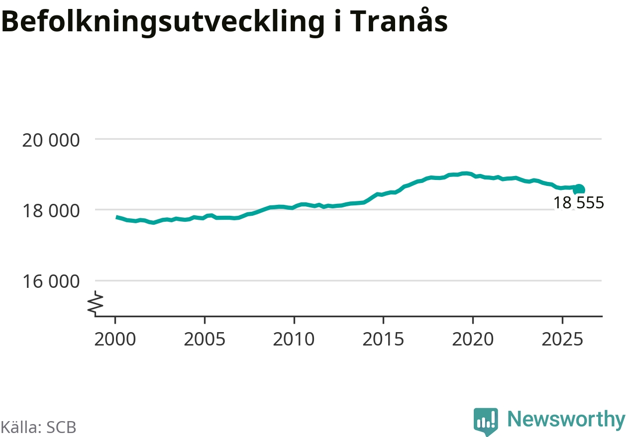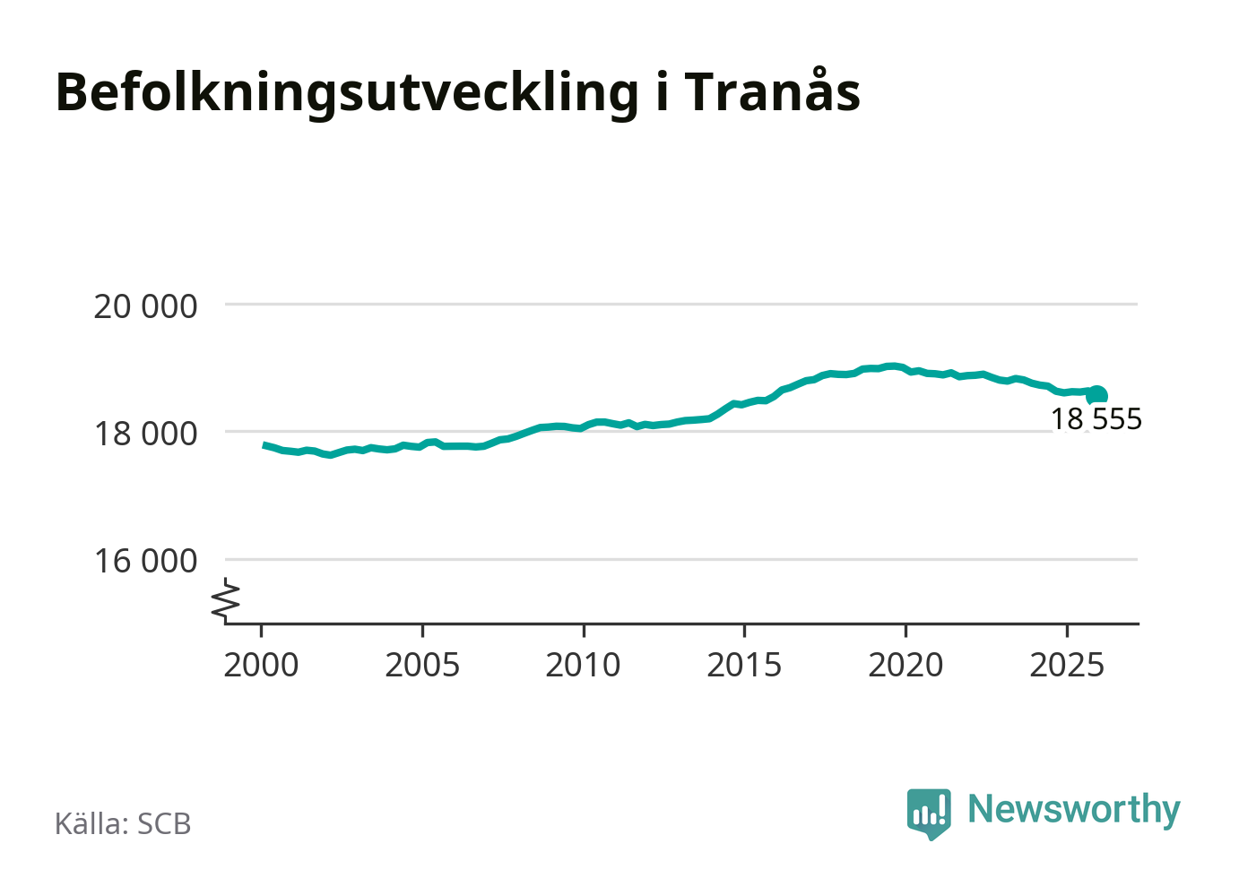 Befolkningen minskade i Tranås kommun under det fjärde kvartalet 2025. Den 31 december bodde enligt SCB:s senaste siffror 18 555 personer i kommunen, vilket är 79 färre än i slutet av tredje kvartalet. Minskningen är den näst största i Jönköpings län procentuellt sett.