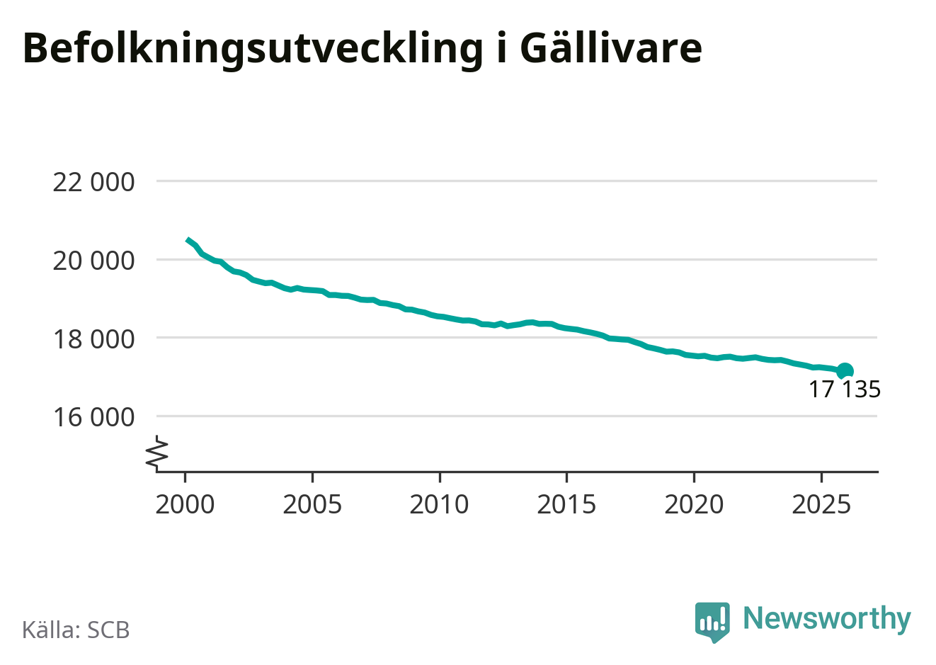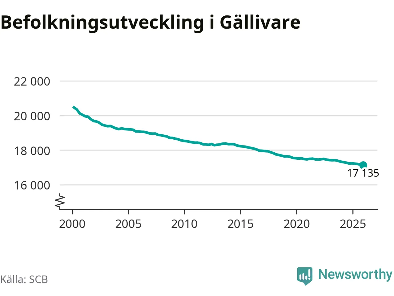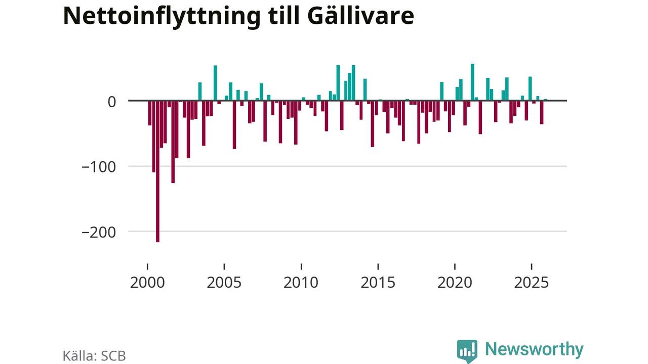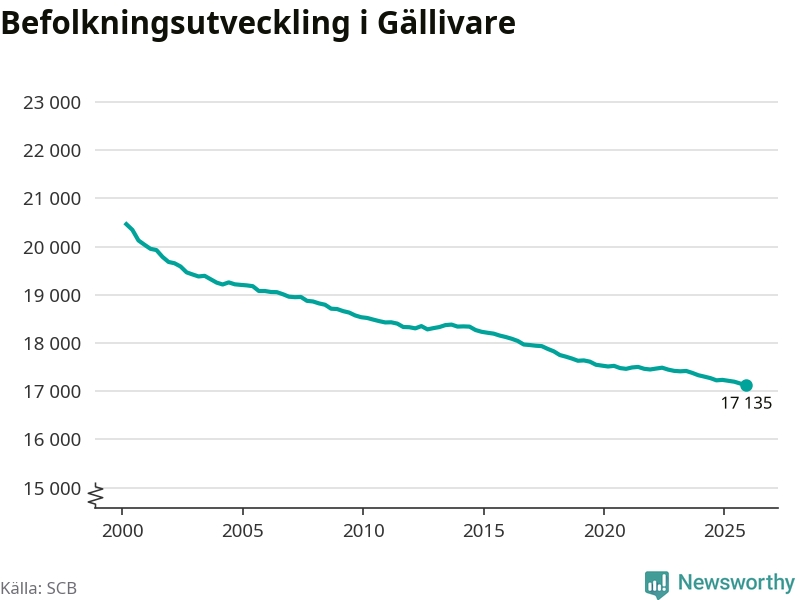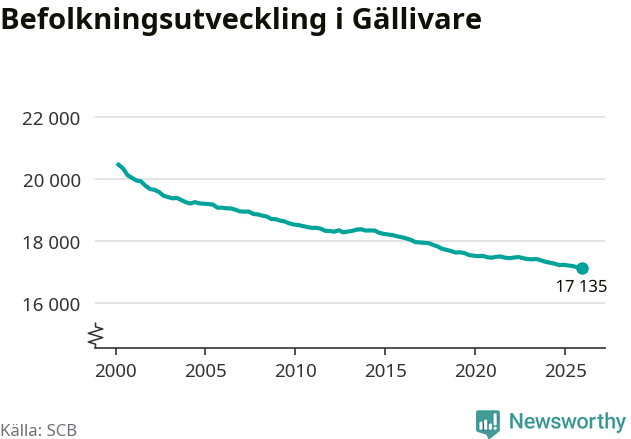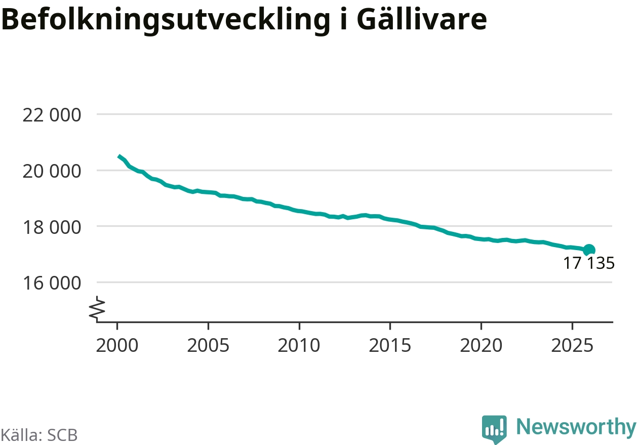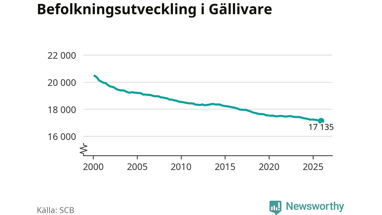 Befolkningen minskade i Gällivare kommun under det fjärde kvartalet 2025. Den 31 december bodde enligt SCB:s senaste siffror 17 135 personer i kommunen, vilket är 21 färre än i slutet av tredje kvartalet.