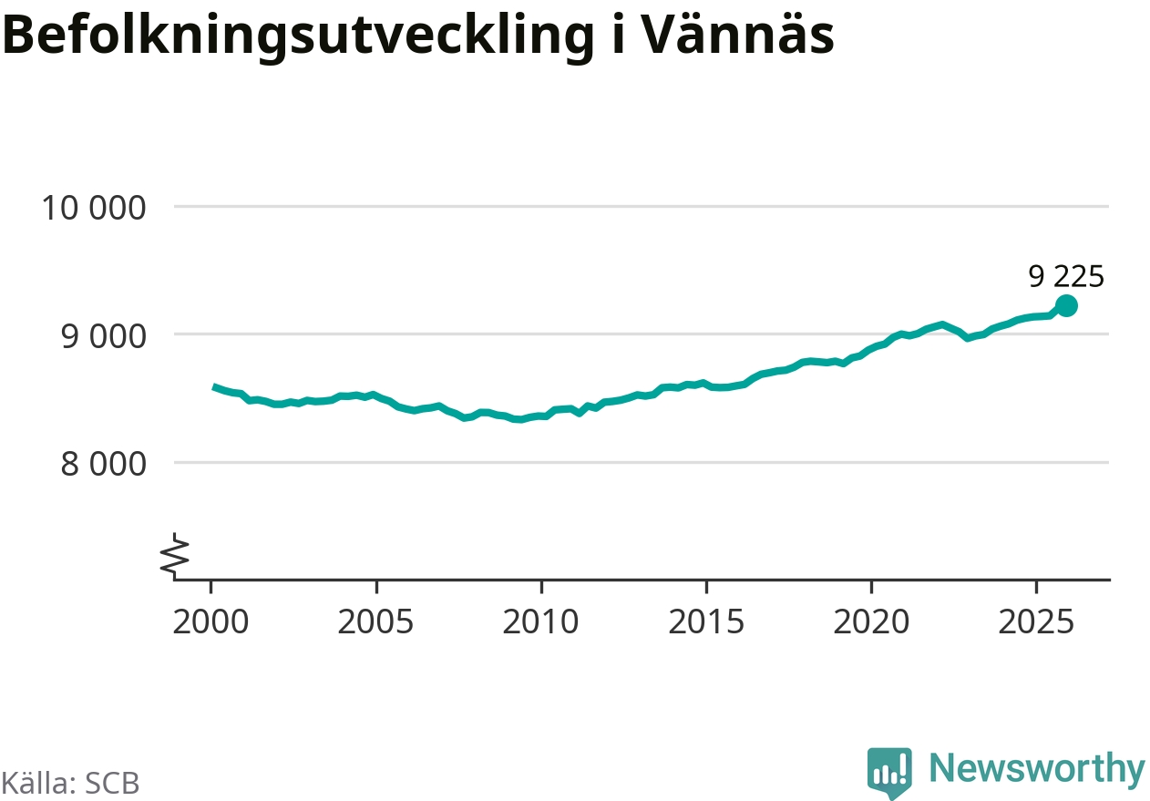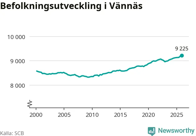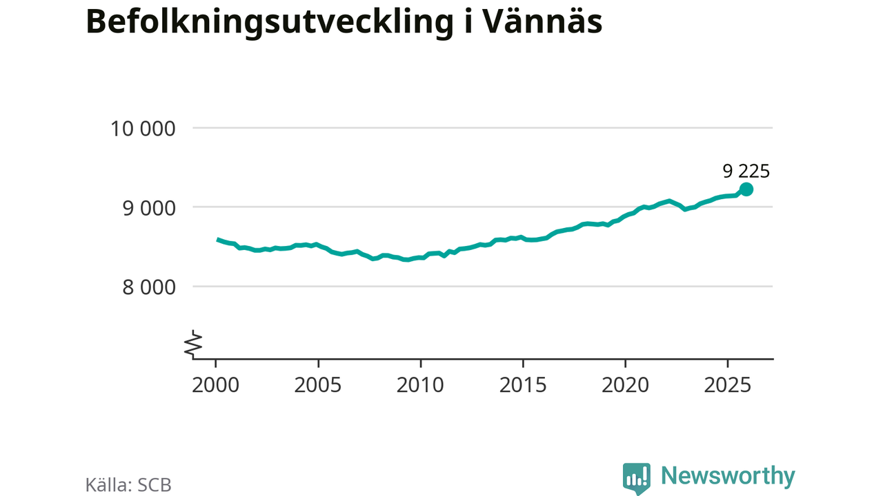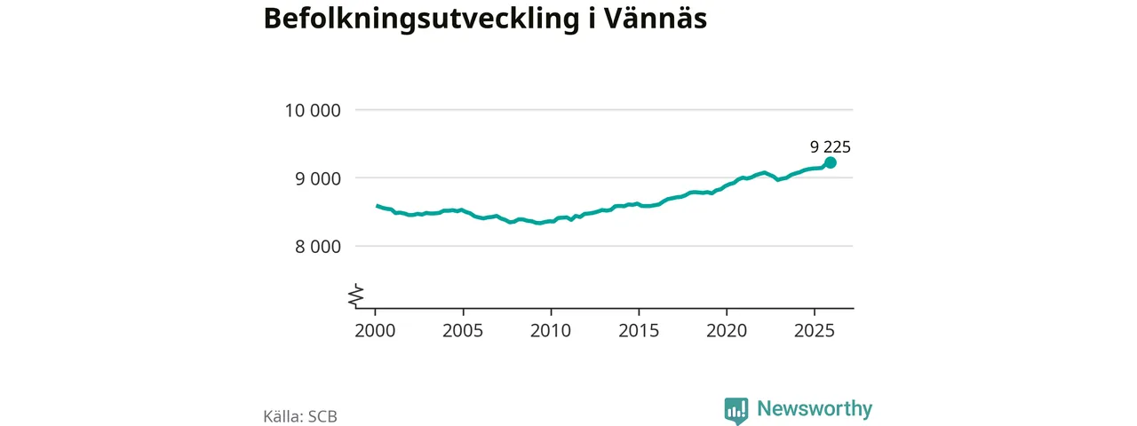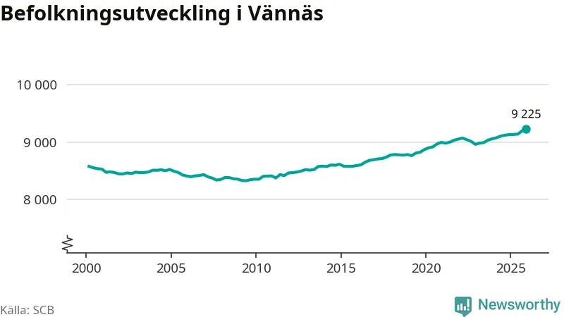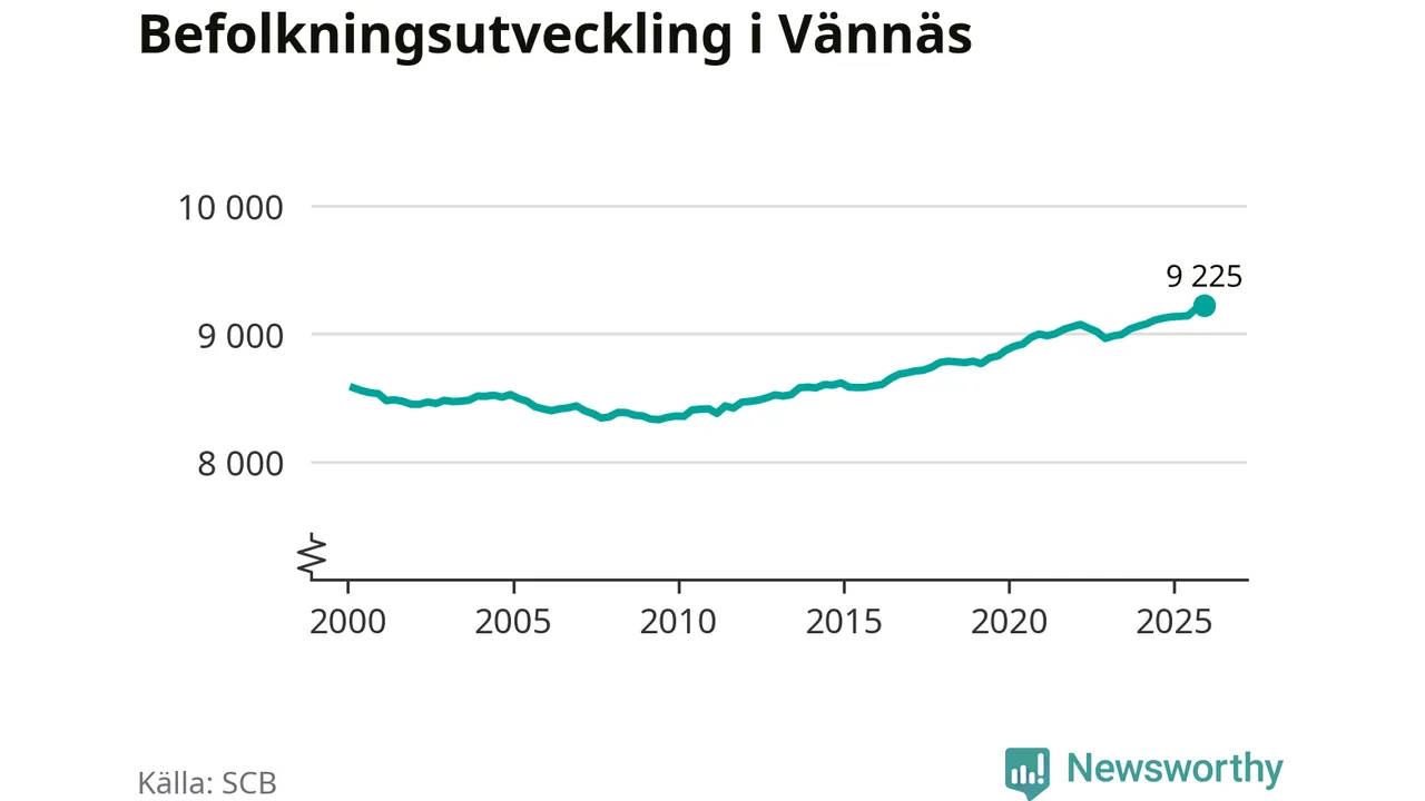 Befolkningen ökade i Vännäs kommun under det fjärde kvartalet 2025. Den 31 december bodde enligt SCB:s senaste siffror 9 225 personer i kommunen, vilket är 28 fler än i slutet av tredje kvartalet. Folkökningen är den största i Västerbotten procentuellt sett.
