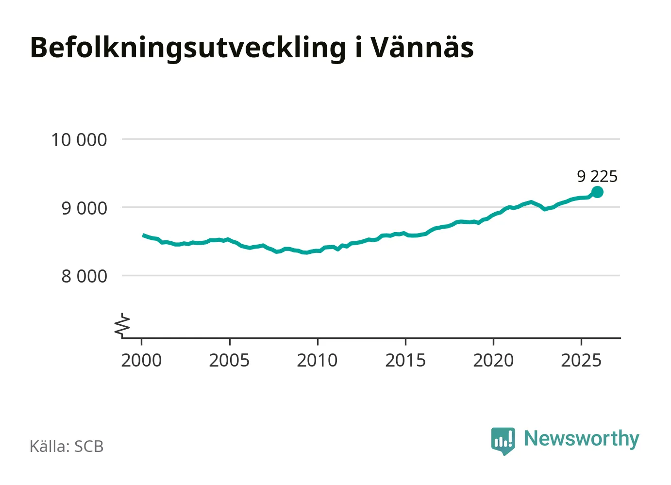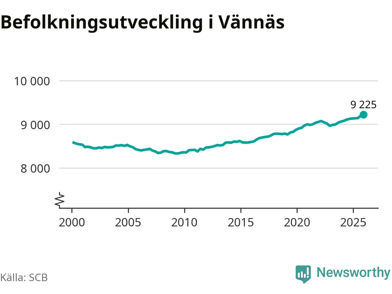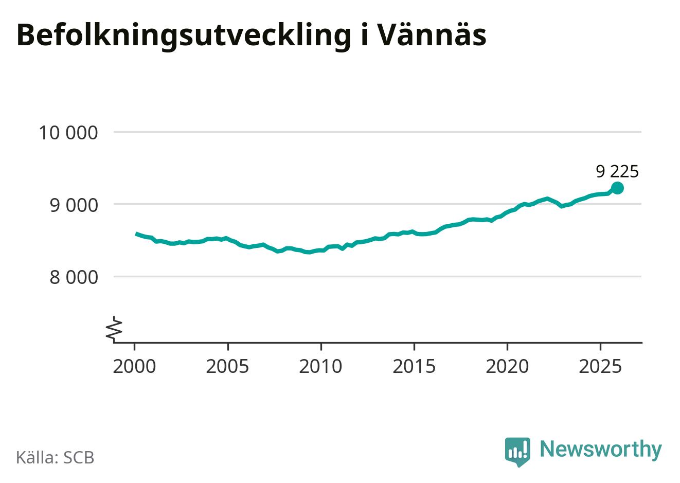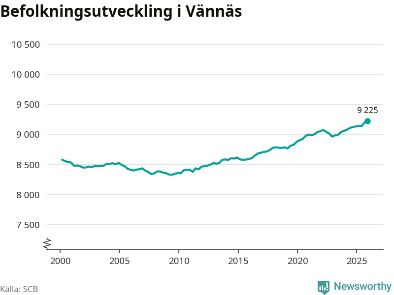 Befolkningen ökade i Vännäs kommun under det fjärde kvartalet 2025. Den 31 december bodde enligt SCB:s senaste siffror 9 225 personer i kommunen, vilket är 28 fler än i slutet av tredje kvartalet. Folkökningen är den största i Västerbotten procentuellt sett.
