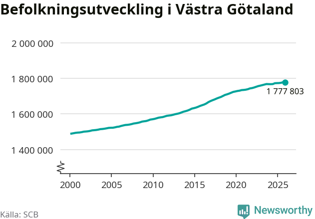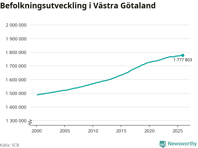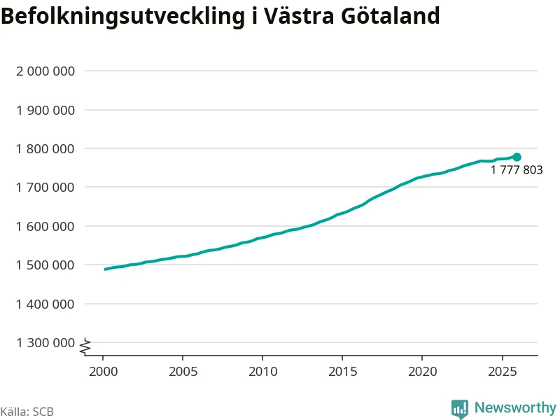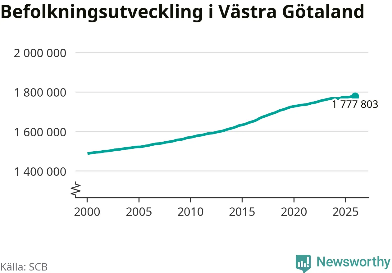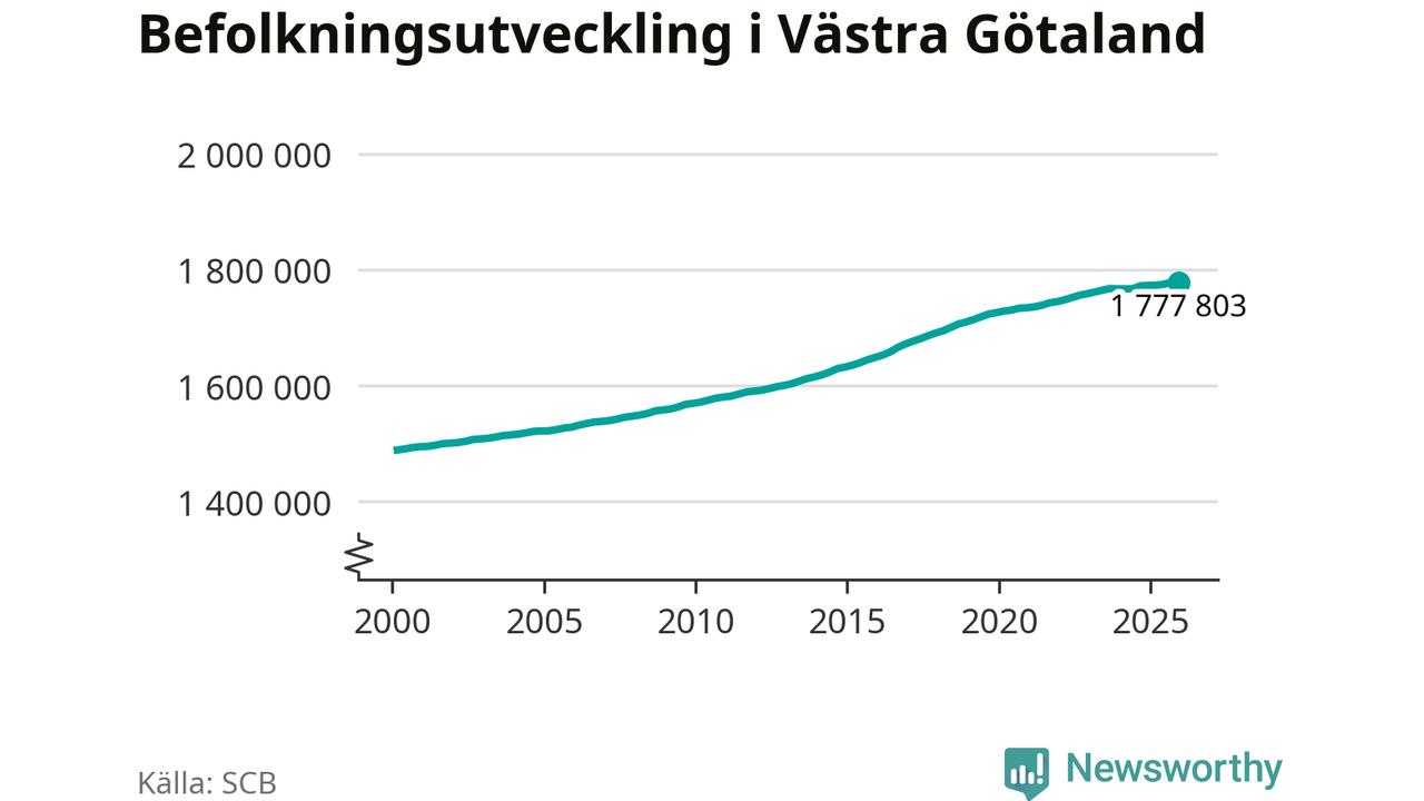 Befolkningen minskade i Västra Götalands län under det fjärde kvartalet 2025. Den 31 december bodde enligt SCB:s senaste siffror 1 777 803 personer i länet, vilket är 228 färre än i slutet av tredje kvartalet.