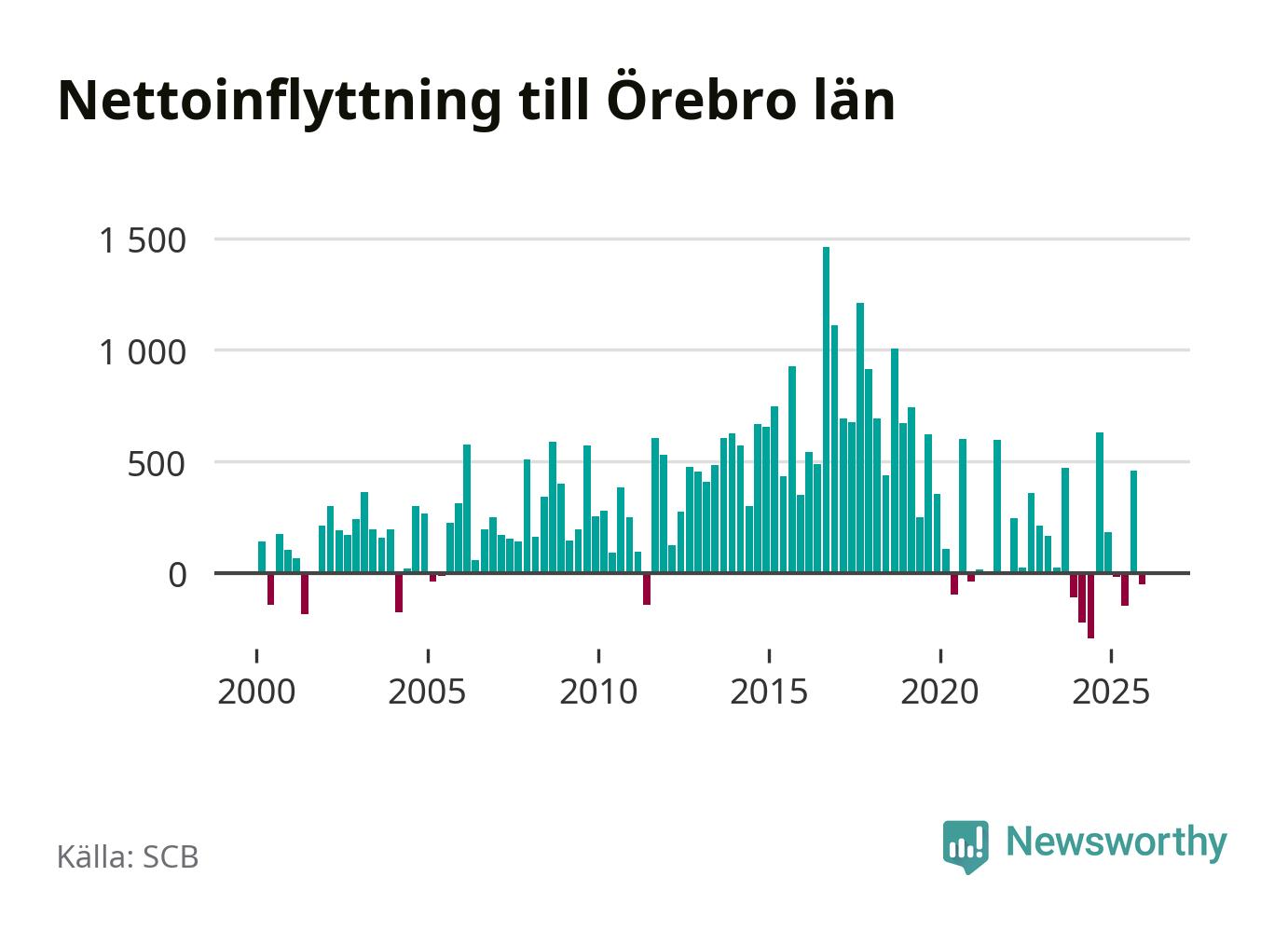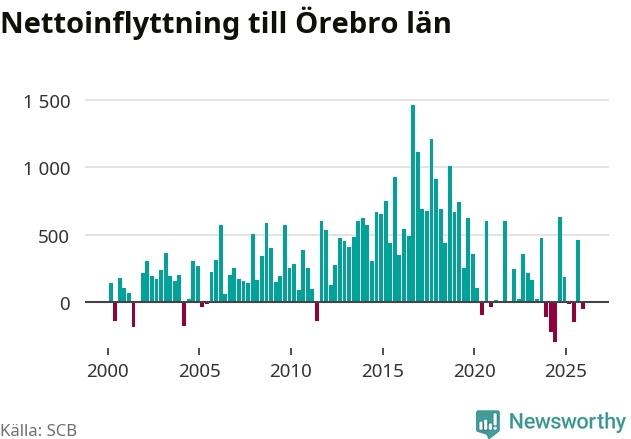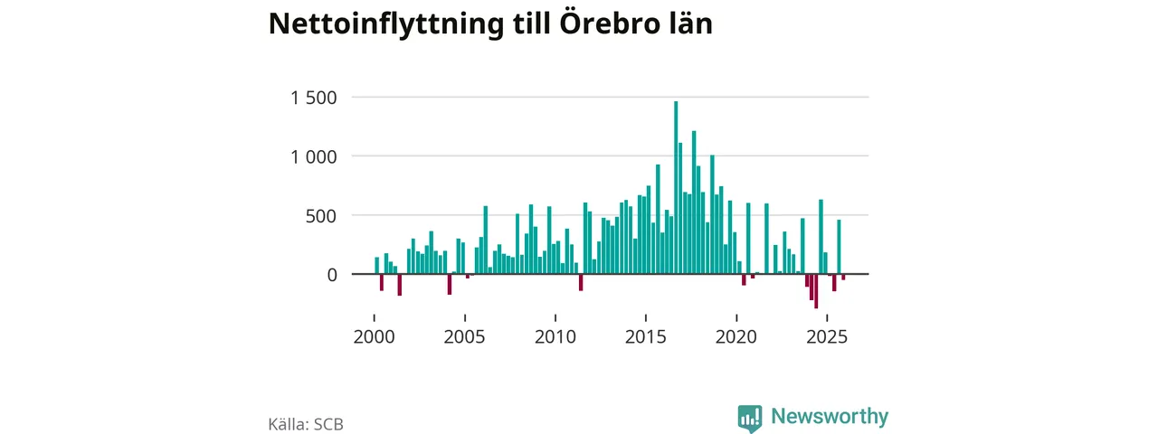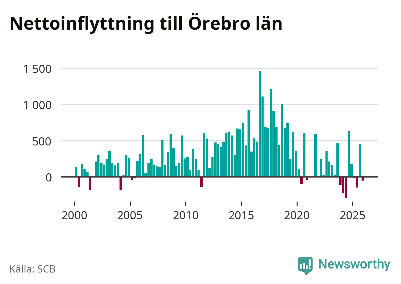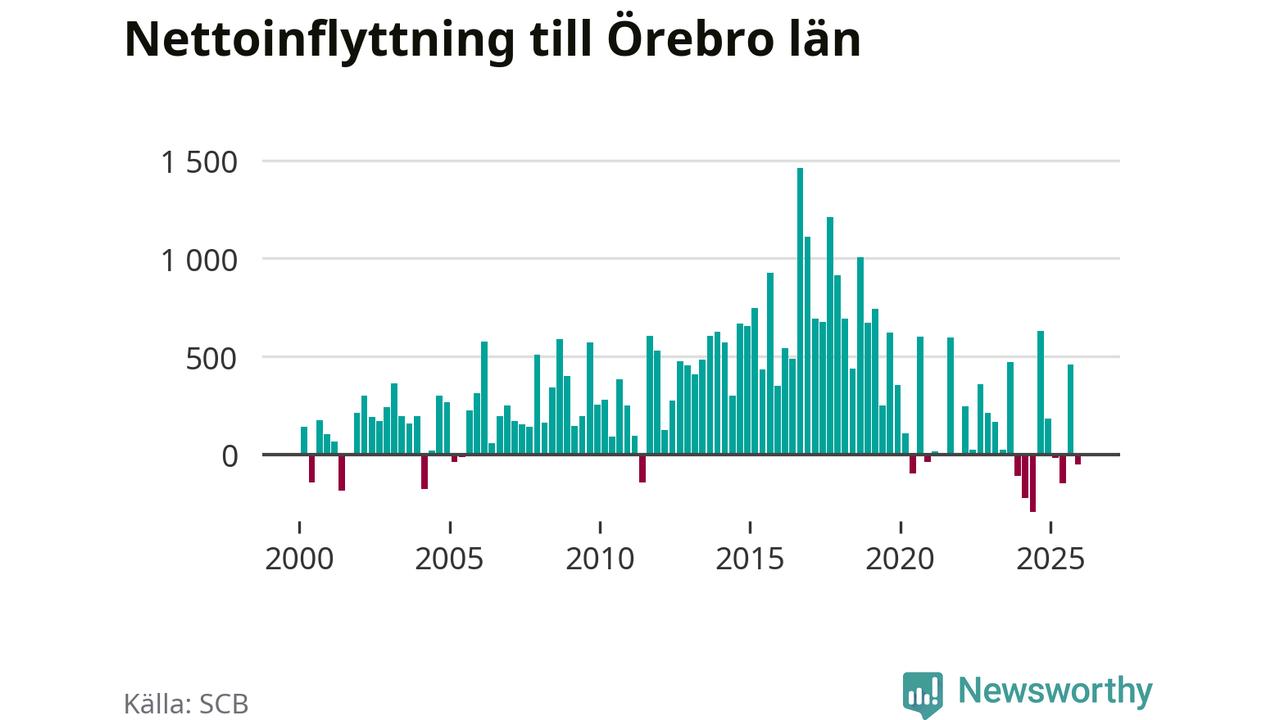 Under fjärde kvartalet 2025 flyttade 1 957 personer till länet medan 2 006 personer flyttade därifrån. Sedan seklets början har Örebro län oftast haft ett positivt flyttnetto.