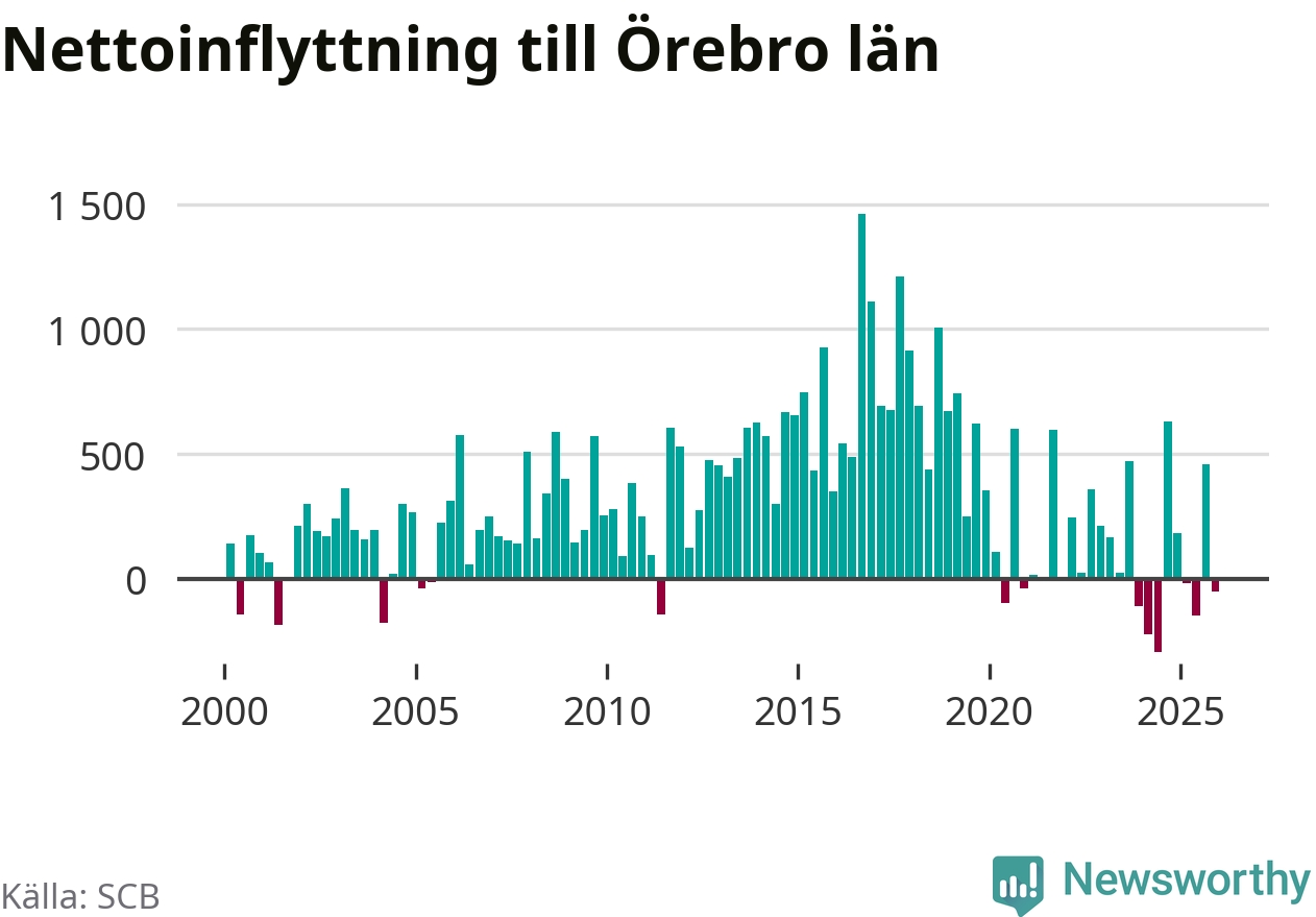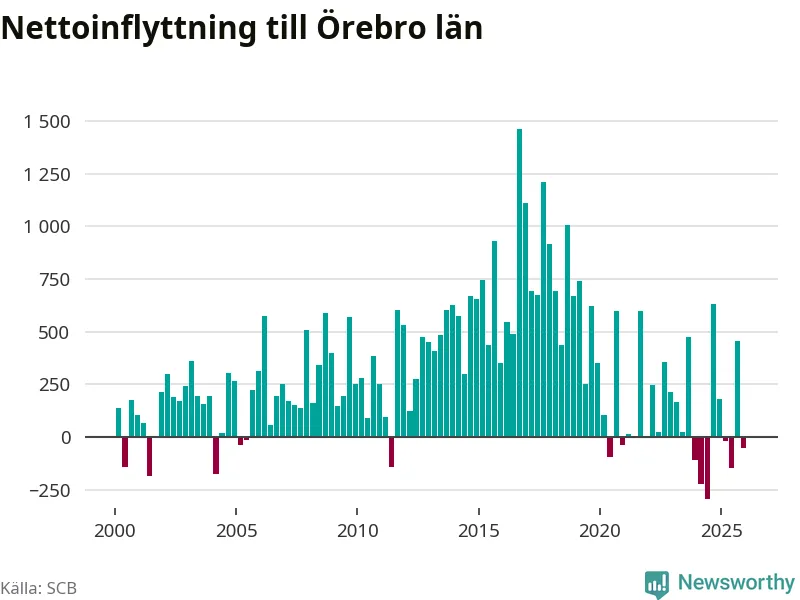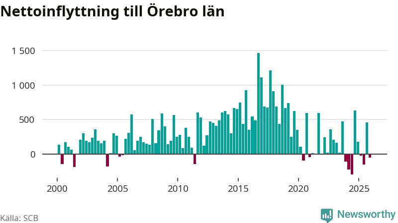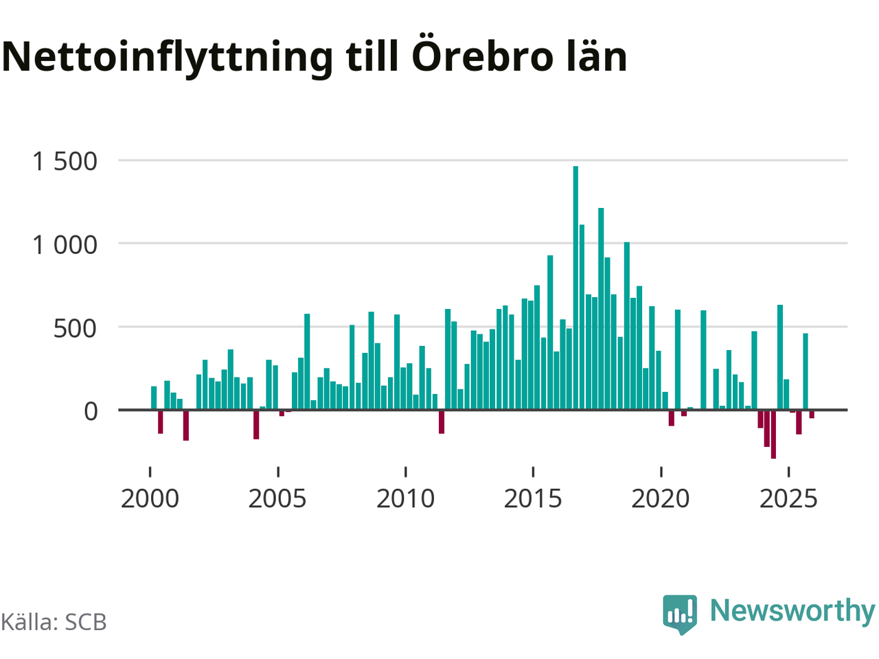 Under fjärde kvartalet 2025 flyttade 1 957 personer till länet medan 2 006 personer flyttade därifrån. Sedan seklets början har Örebro län oftast haft ett positivt flyttnetto.