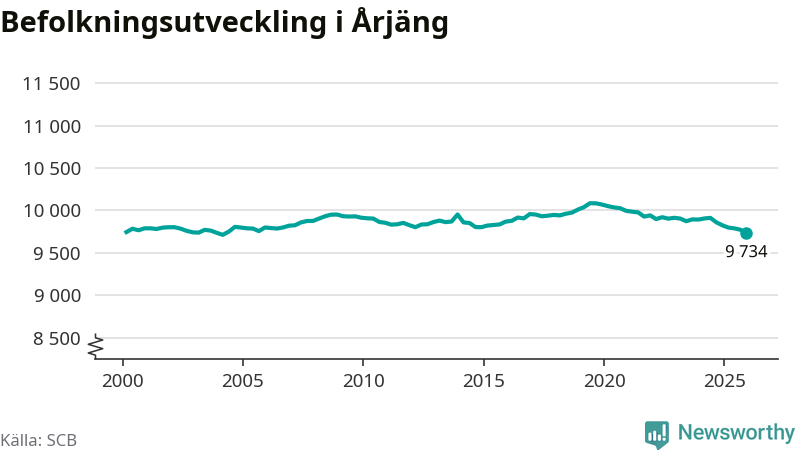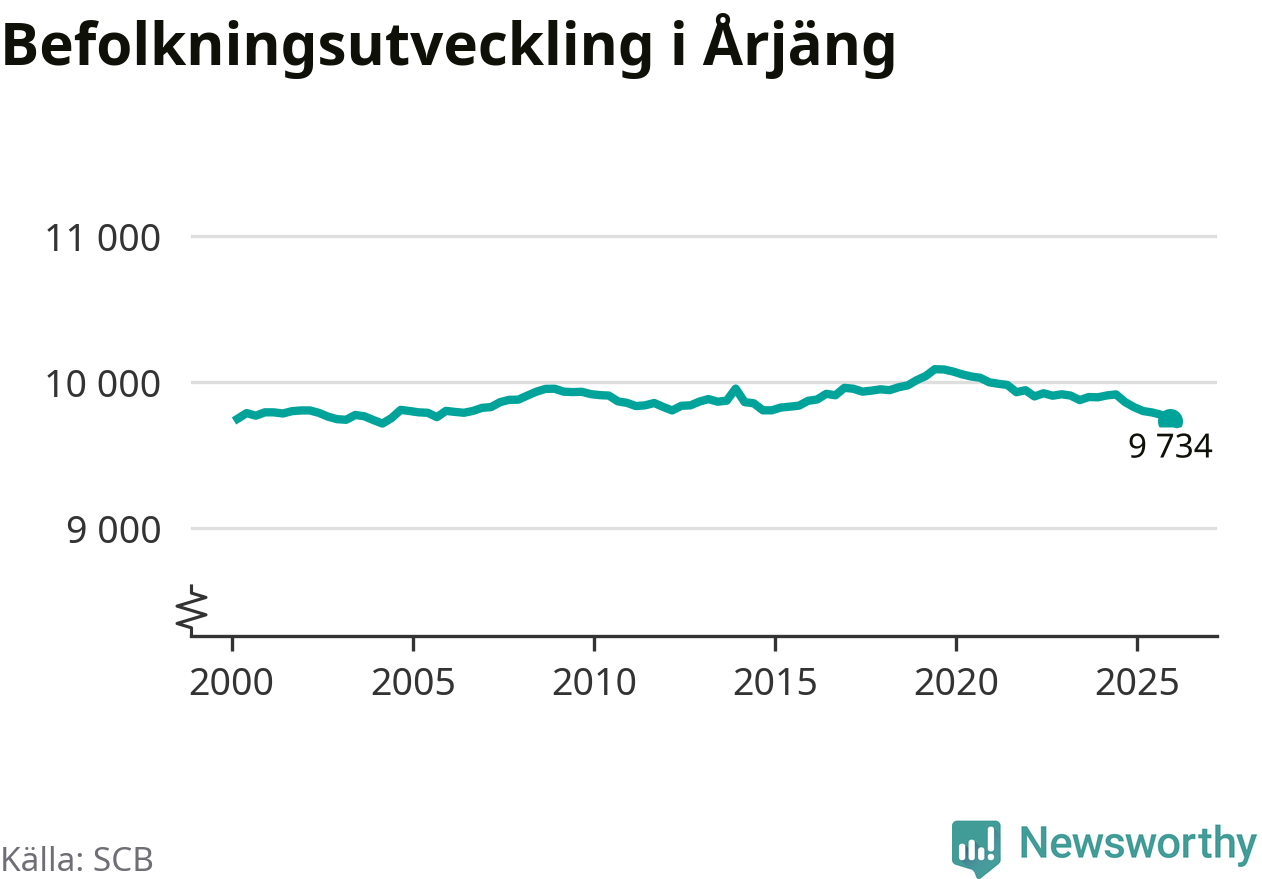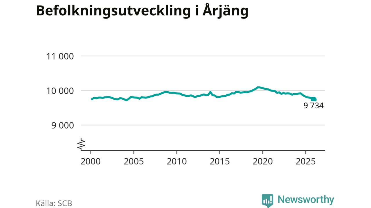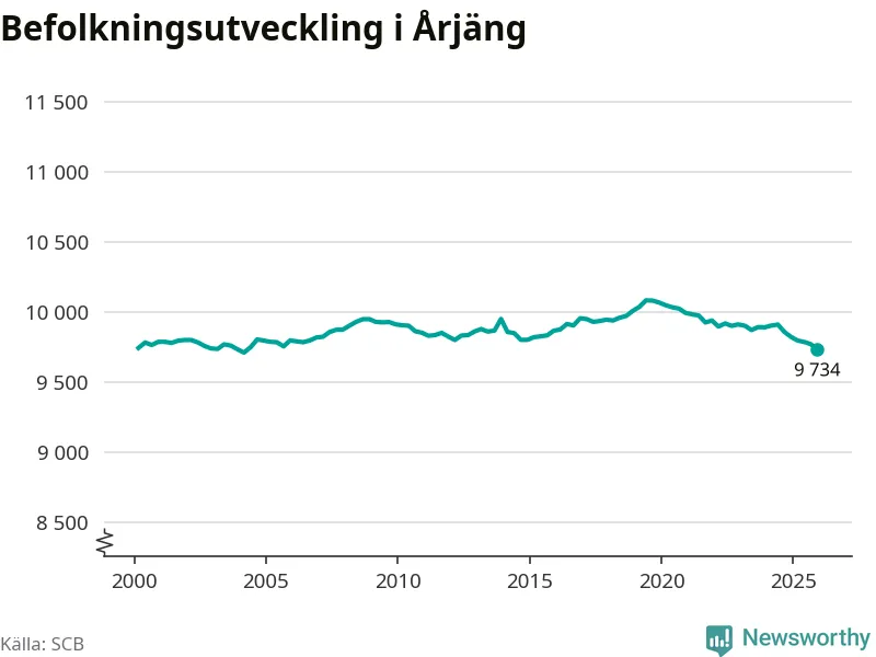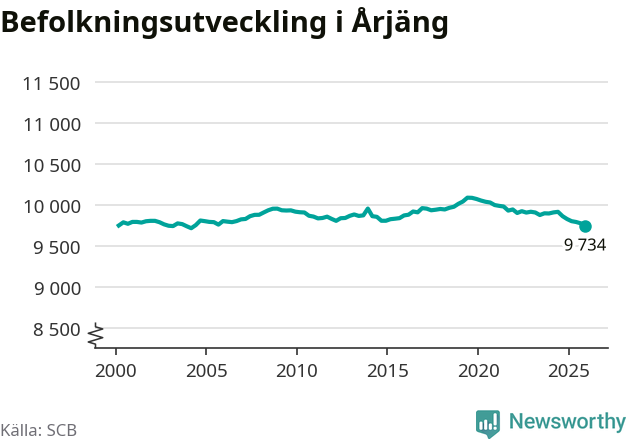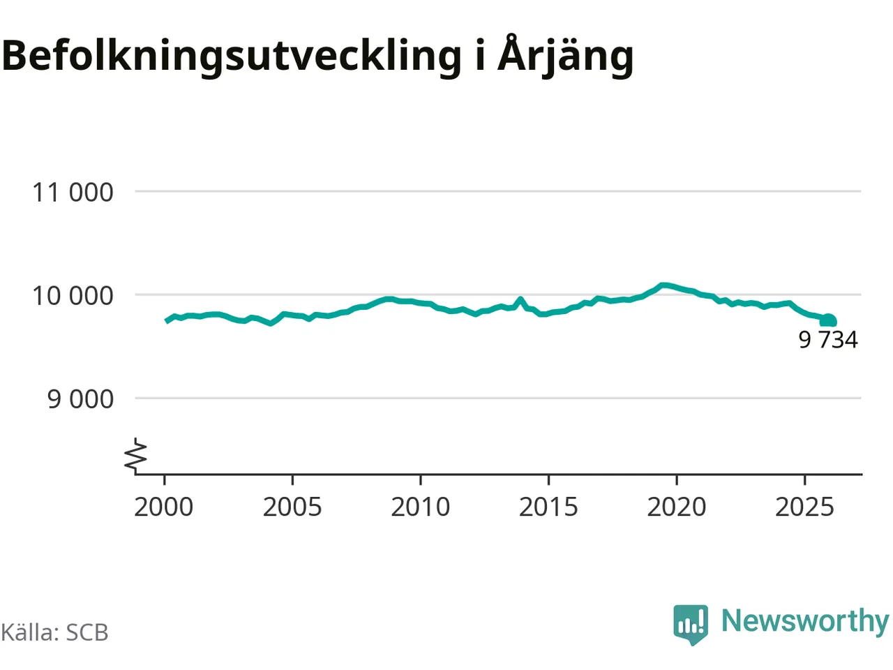 Befolkningen minskade i Årjängs kommun under det fjärde kvartalet 2025. Den 31 december bodde enligt SCB:s senaste siffror 9 734 personer i kommunen, vilket är 39 färre än i slutet av tredje kvartalet.