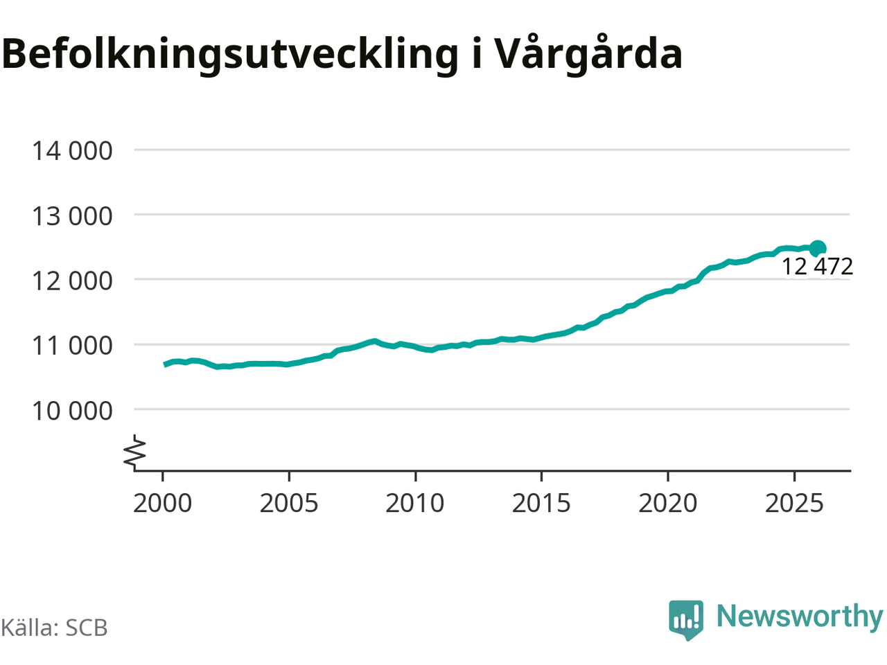 Befolkningen minskade i Vårgårda kommun under det fjärde kvartalet 2025. Den 31 december bodde enligt SCB:s senaste siffror 12 472 personer i kommunen, vilket är åtta färre än i slutet av tredje kvartalet.