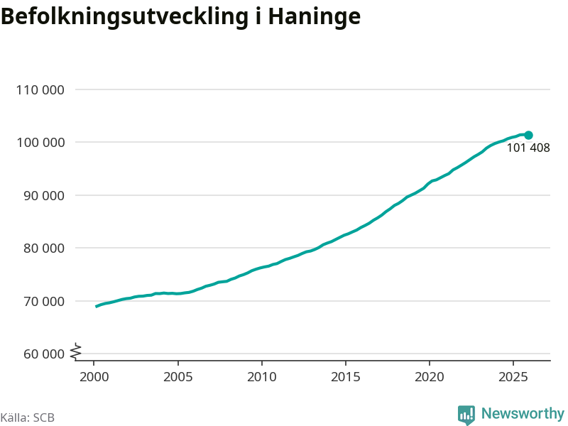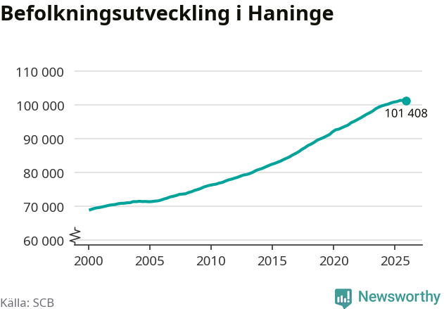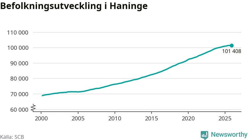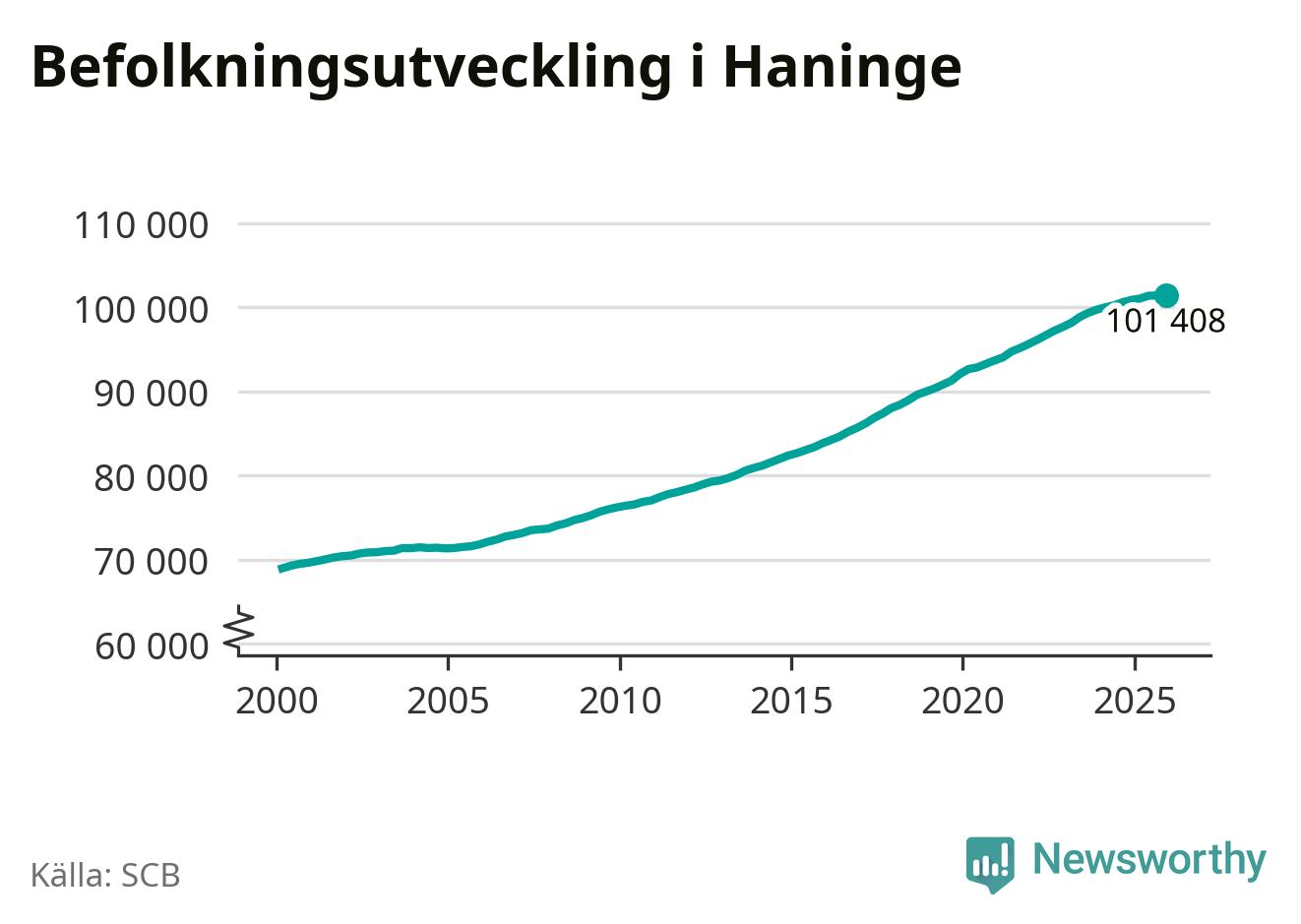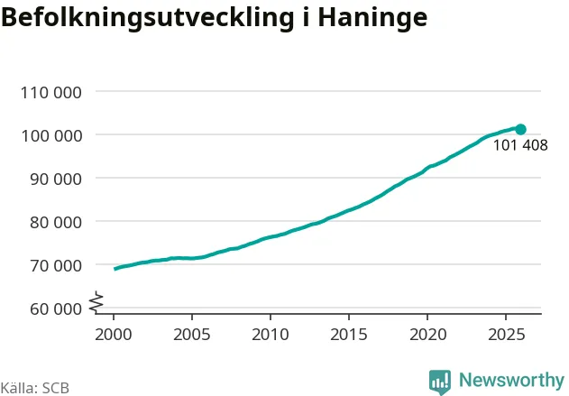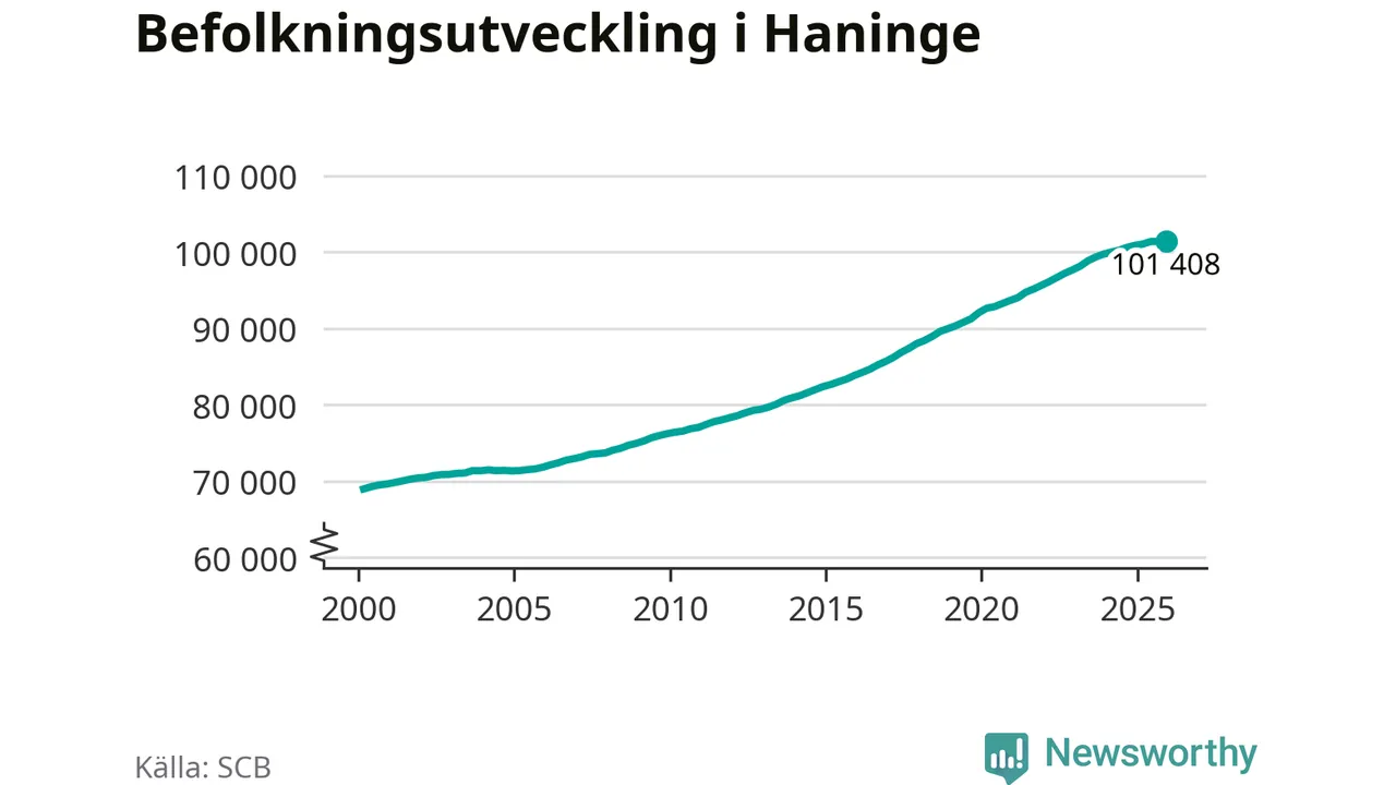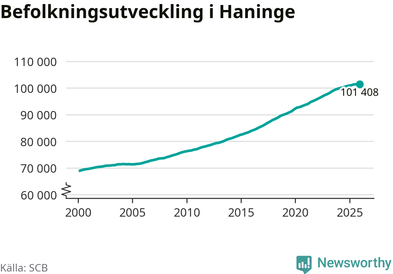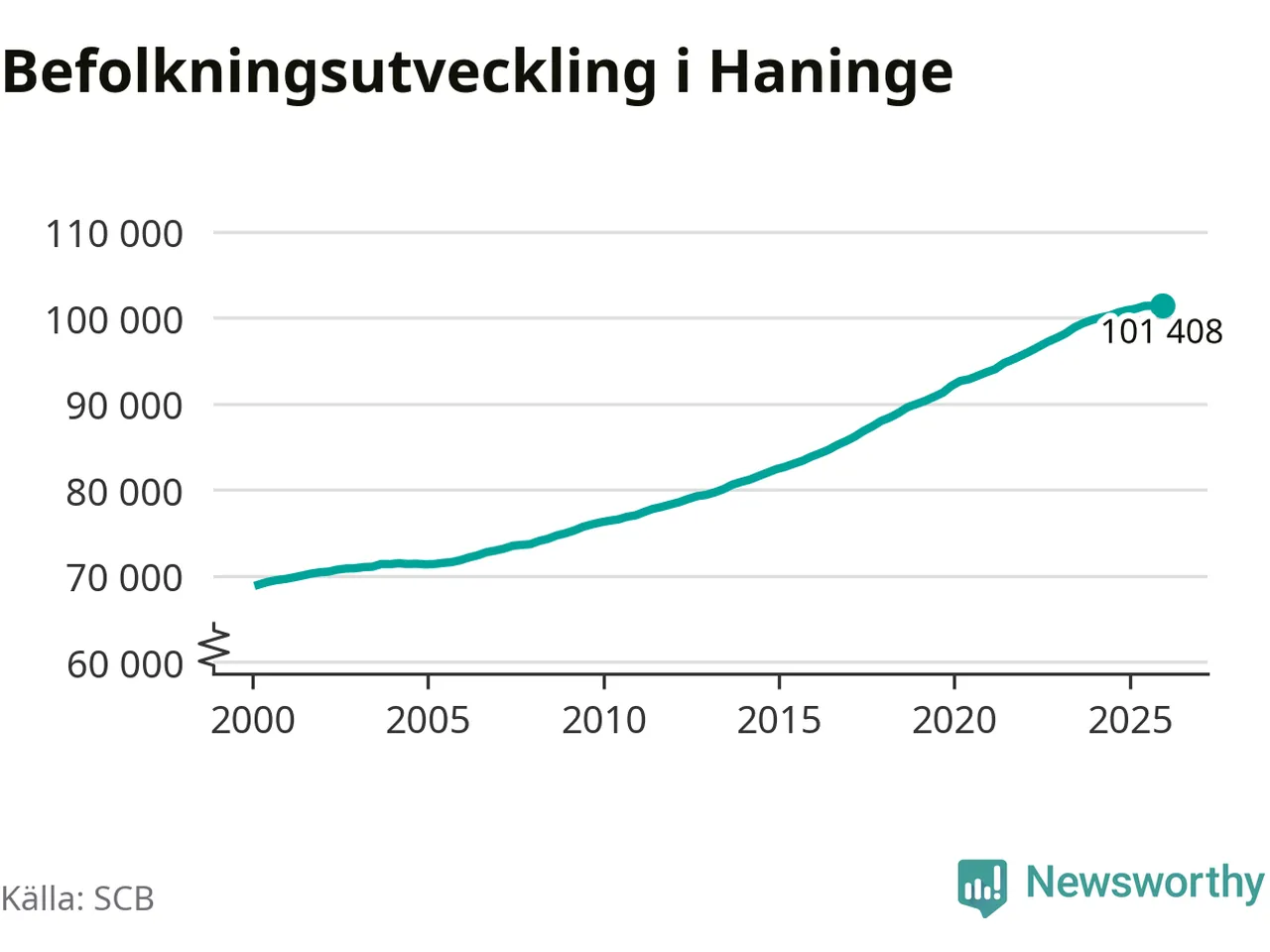 Befolkningen minskade i Haninge kommun under det fjärde kvartalet 2025. Den 31 december bodde enligt SCB:s senaste siffror 101 408 personer i kommunen, vilket är 19 färre än i slutet av tredje kvartalet.