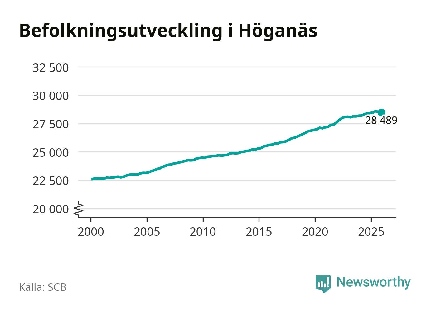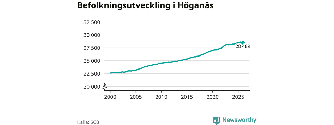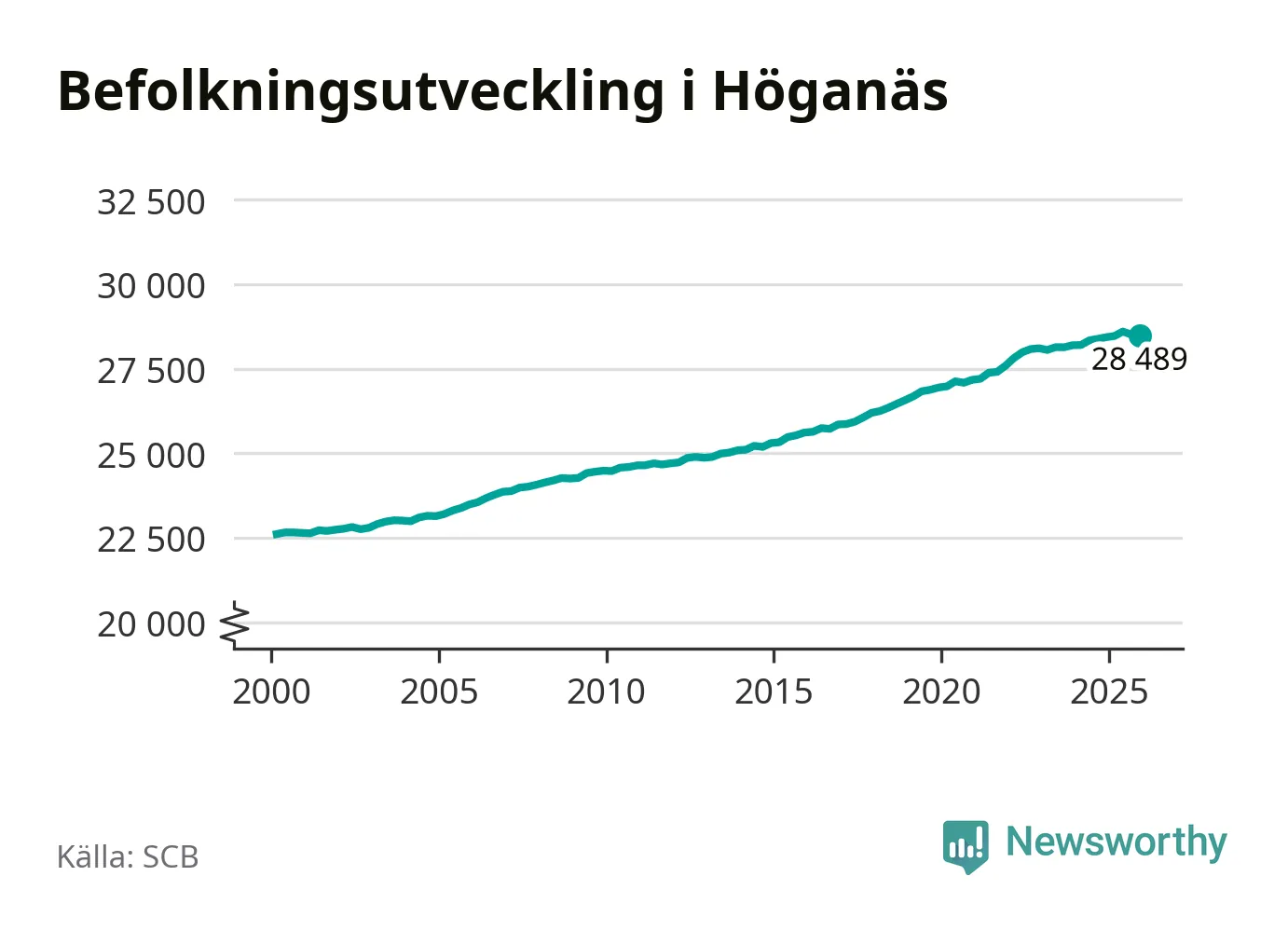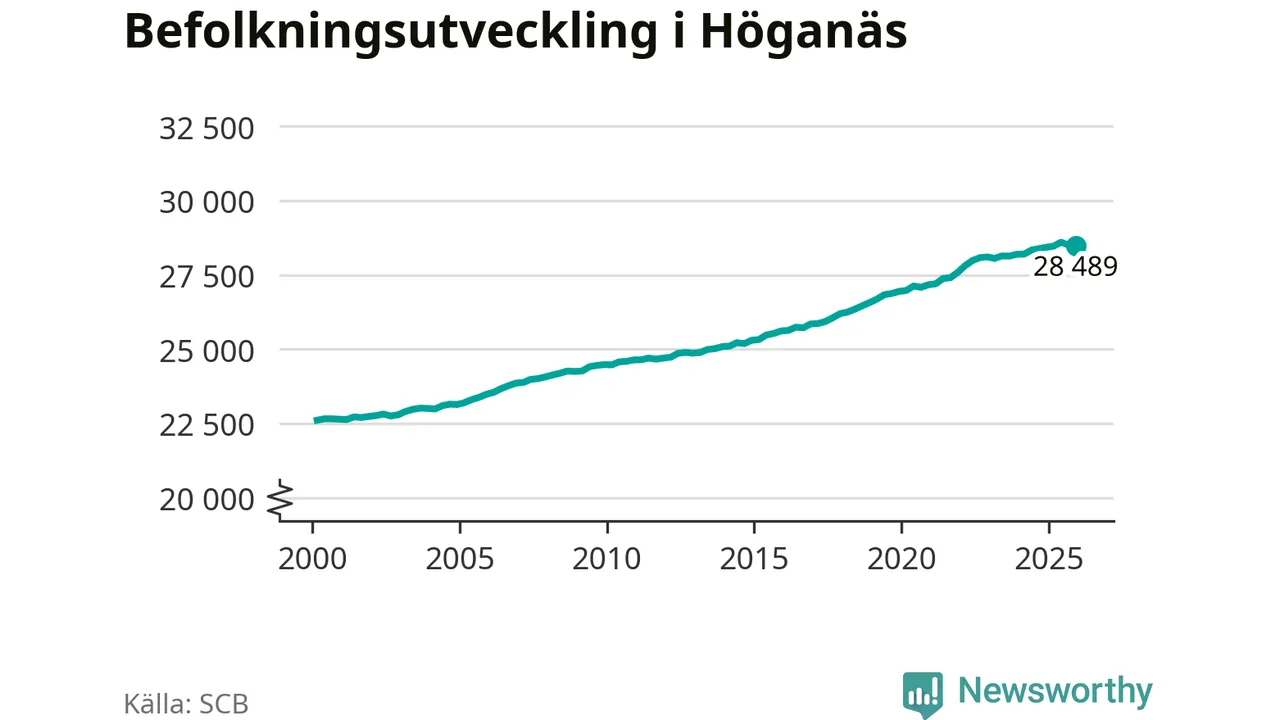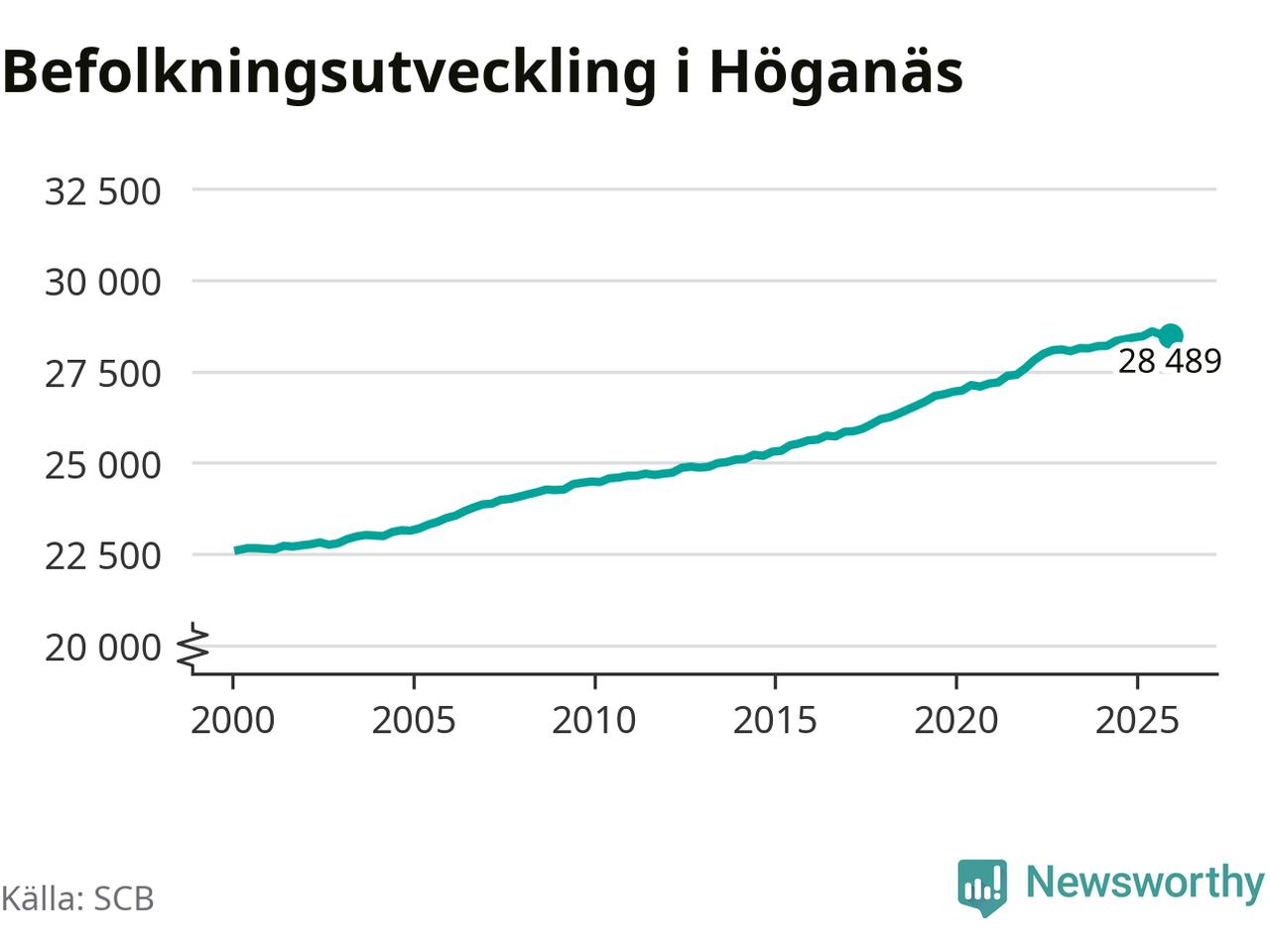 Befolkningen minskade i Höganäs kommun under det fjärde kvartalet 2025. Den 31 december bodde enligt SCB:s senaste siffror 28 489 personer i kommunen, vilket är 20 färre än i slutet av tredje kvartalet.